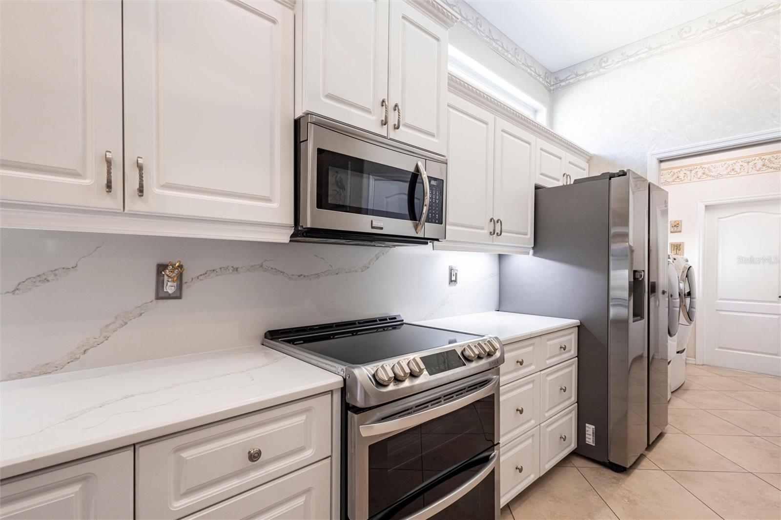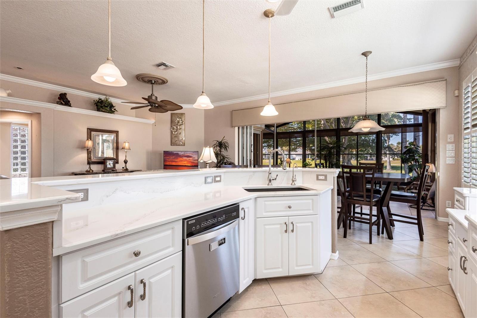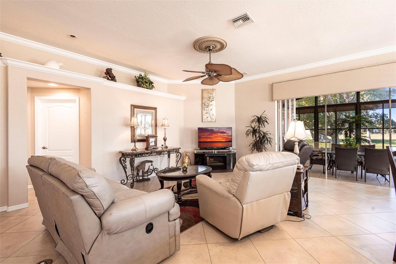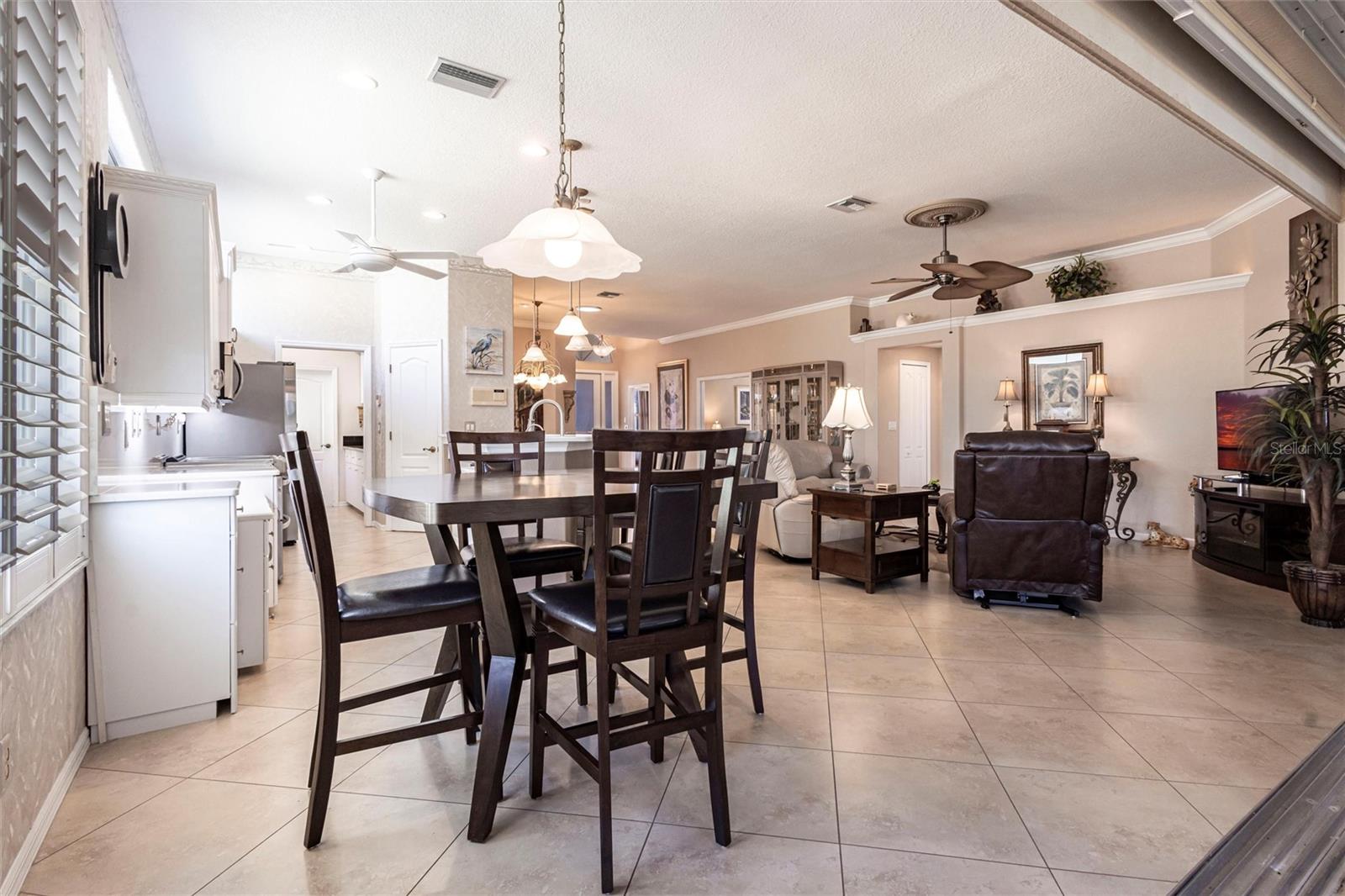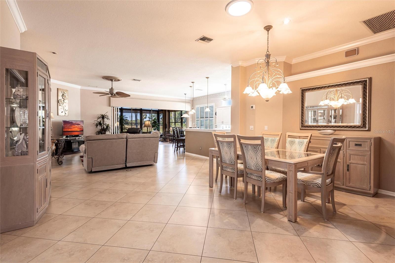 SEMINOLE LAKES:Gorgeous Furnished Golf Course Home with Spa & All Seasons RoomThis meticulously maintained 3-bedroom, 2-bath home is perfectly positioned with expansive views of the 14th Fairway and offers the ultimate in Florida living. Featuring a new tile roof (2025), accordion hurricane shutters, Bahama shutters, and a stamped concrete driveway, this property is as durable as it is beautiful.Inside, you'll find an open floor plan with volume ceilings accented by elegant crown molding, wood and tile flooring throughout, and thoughtfully designed spaces. The kitchen boasts quartz countertops, stainless steel appliances, a butler's pantry, and plantation shutters. The spacious primary suite includes his and hers custom walk-in closets and a luxurious bath with separate vanities, a garden tub, and a walk-in shower.Enjoy the comfort of the All Seasons Room complete with a hot tub, wet bar, and mini-split A/C system--ideal for relaxing or entertaining year-round. Pocket sliders open to the enclosed lanai, blending indoor and outdoor living effortlessly. Additional features include a HALO whole house water system...no maintenance, interior laundry room with utility sink, built-in garage cabinets, and an epoxy-finished garage floor.This beautifully furnished home is located in a semi-private, guard-gated golf course community with amenities such as tennis, pickleball, a community pool, and scenic nature surroundings--all with low monthly fees. Conveniently close to shopping, dining, and easy access to US 41 and I-75.Move-in ready and waiting for you to enjoy the Florida lifestyle at its best!