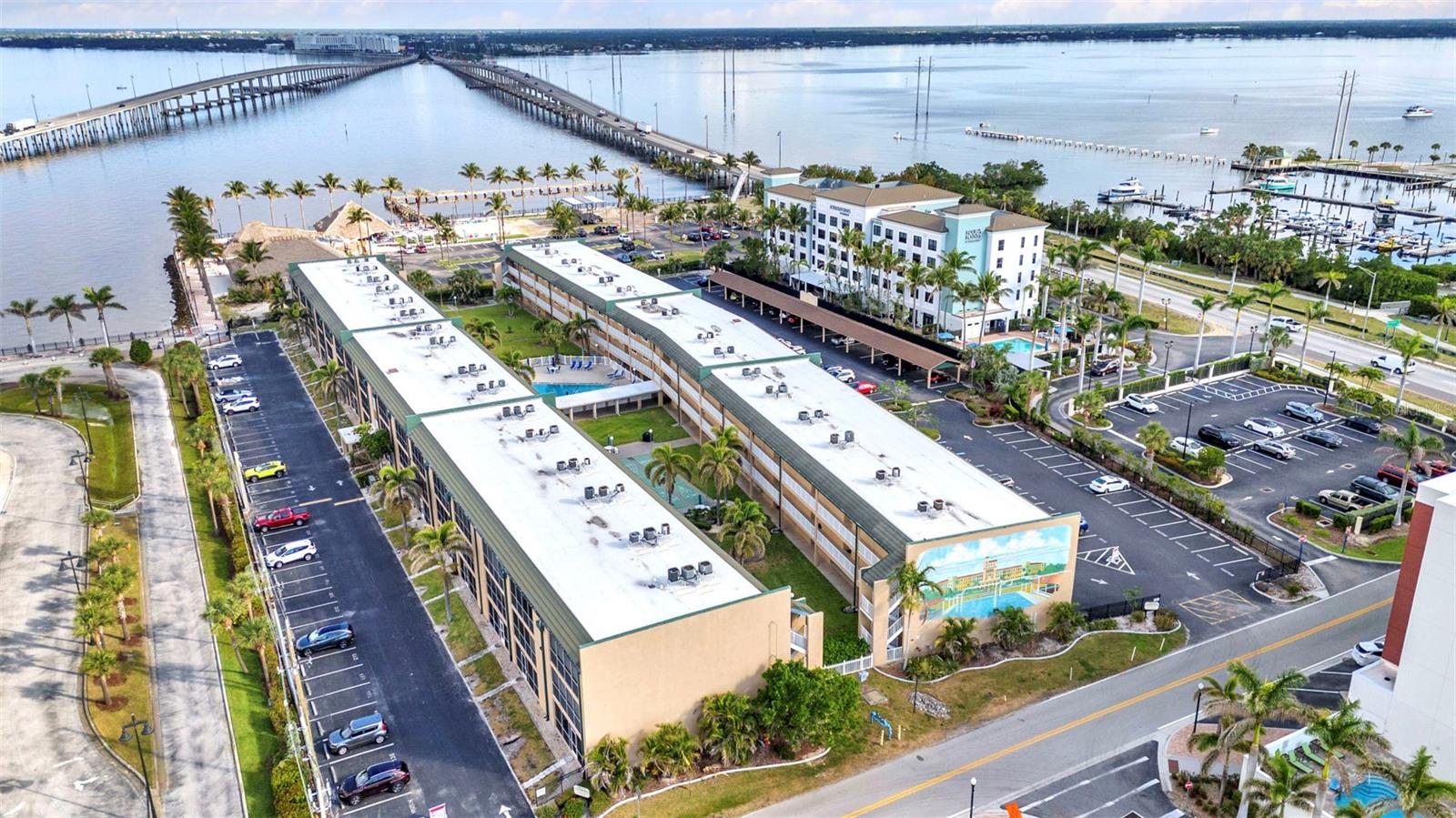 PRIME DOWNTOWN PUNTA GORDA LOCATION, TURN-KEY FURNISHED, AND First-floor living MAKING LIFE easy! The parking spot is just steps away from the lanai door. It's so easy to come and go; there's no need for elevators or stairs. It's great for bringing in shopping!Best walkable condo location in all of Punta Gorda! Directly on the Harbor Walk, which connects two beautiful parks. Walk to downtown restaurants, coffee shops, boutiques, salons, festivals, Farmer's Market, live music, Tiki Bar, fishing, and the Punta Gorda Historic District. Charlevoi Condominium is a 55+ community with social activities year-round, a fitness room, library, beautiful heated pool, and shuffleboard. May rent out the unit min. 6 months, after two years of ownership!This turnkey, fully furnished unit is tiled throughout. It is a two-bedroom, two-bathroom unit with lots of closet space! One of the closets is a desk area! The primary bedroom has a walk-in shower, a walk-in closet, a regular closet, and a large linen closet. The second bedroom has a tub/shower combo and a closet. Soft Florida colors are throughout.Large living space, with an office closet and a large storage closet. Lanai has sliding impact windows for storm protection and an additional storage closet. 2022 new AC and water heater2025 new refrigerator, dishwasher, microwave, kitchen sink, and faucet.This condo has not FLOODED!*No pets allowed.Whether for snowbirds or full-time occupancy, you can't beat a first-floor unit in the heart of lovely Punta Gorda! Easy access to Hwy 41 and I-75, along with minutes to the airport, Fishermen's Village, where shopping and dining are plentiful! Medical facilities, shops, golf, boating, walking along the Harbor Walk or riding your bike thru Punta Gorda, this condo is a wonderful location close to everything!