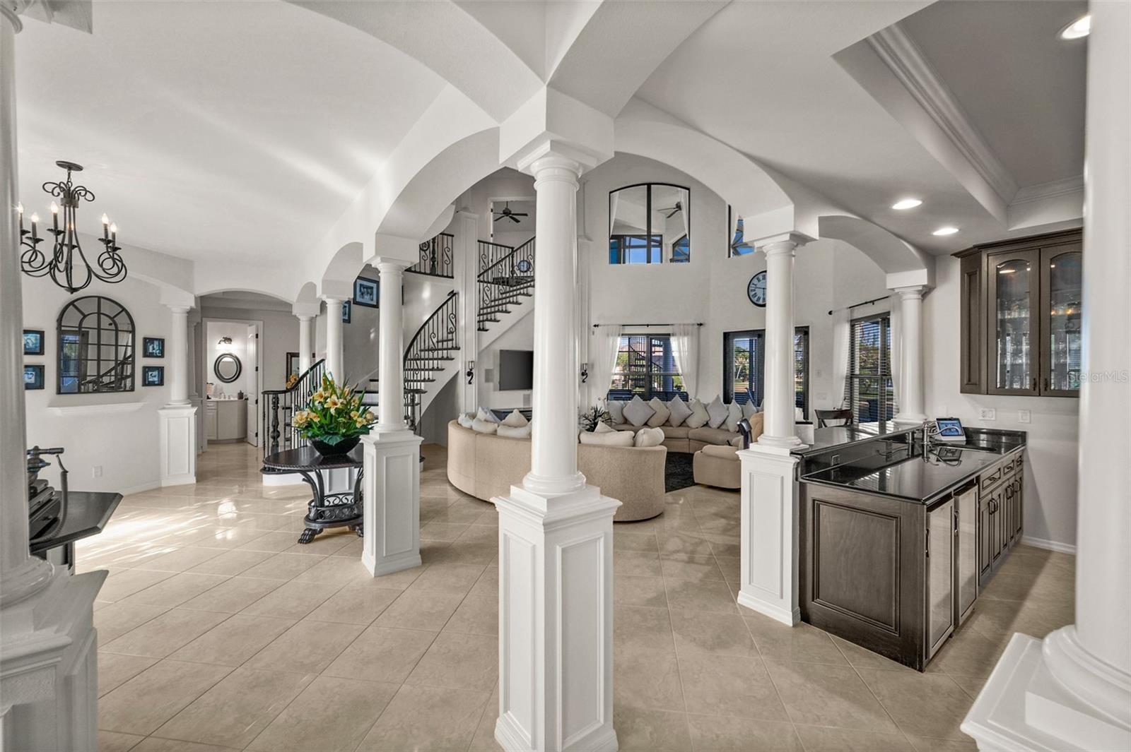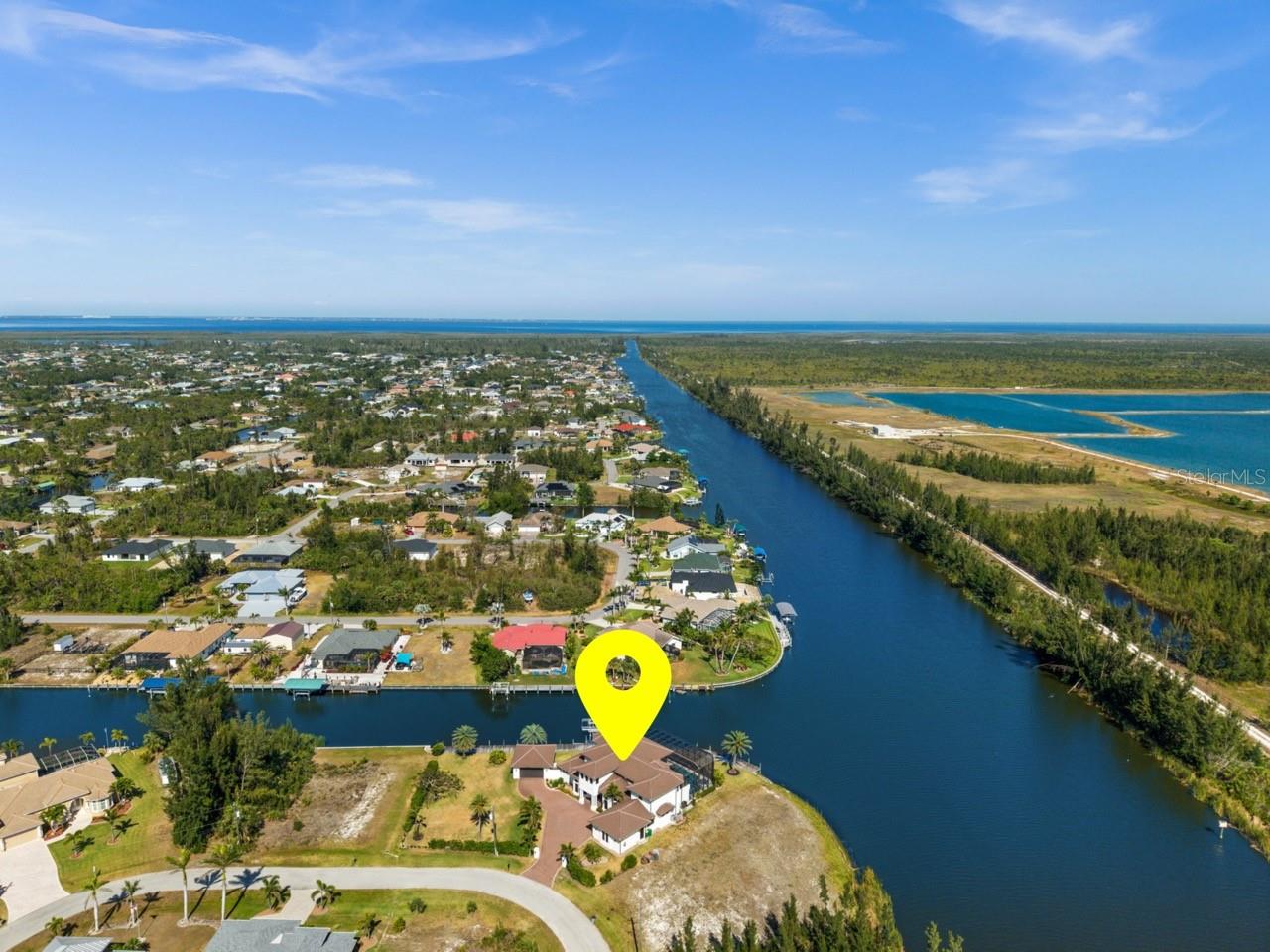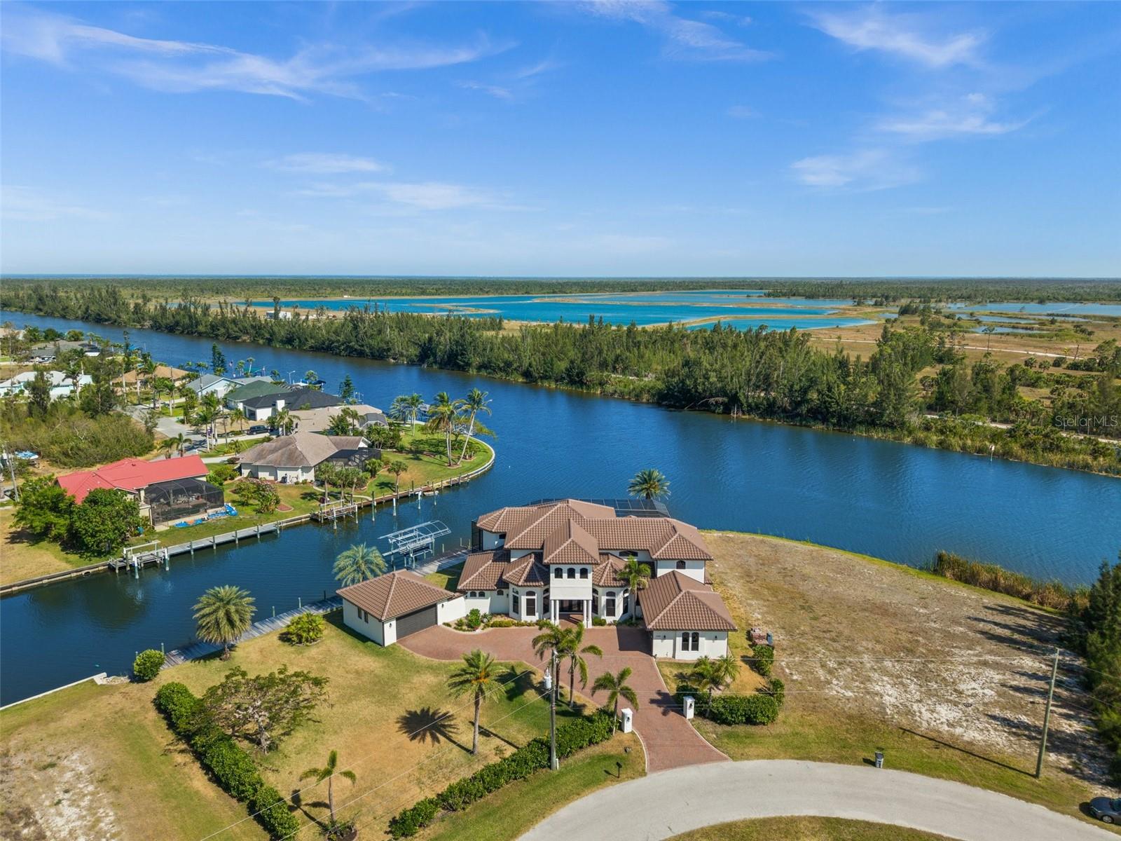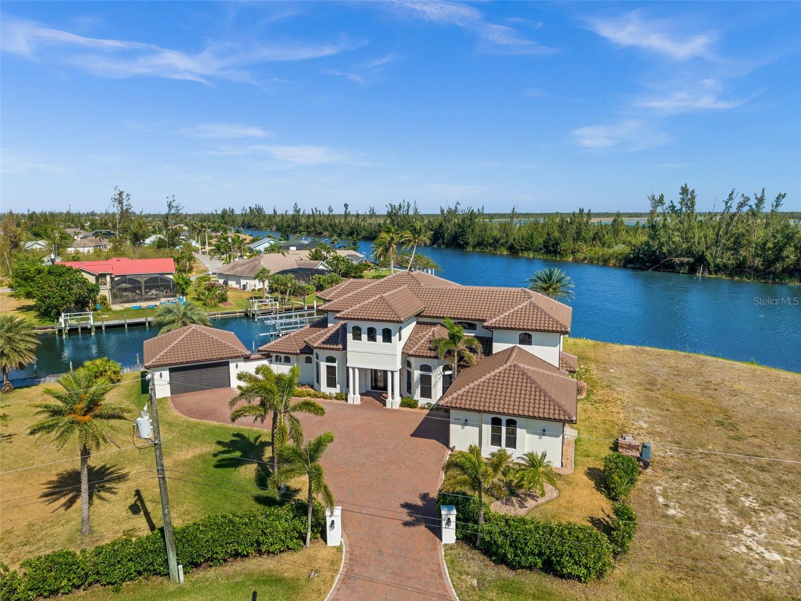 Live the Luxury Coastal lifestyle with this STUNNING SAILBOAT ACCESS 4 Bedroom, 4.5 Bathroom, 2 Car attached Garage & a 2 Car detached garage, TWO-STORY, Pool home with a Den, Family & Bonus rooms. Situated on a DOUBLE TIP Lot with 255ft of water frontage, a Wood dock & 16,000-lb boat lift, South Gulf Cove. Boasting over 5,200 square feet of living space, this home is bathed in natural light from expansive windows and offers BEAUTIFUL water views throughout, blending comfort, elegance, and scenic beauty. The living room impresses with soaring tray ceilings and breathtaking views, seamlessly connected to a formal dining room with a dry bar, ideal for entertaining. The GOURMET kitchen is outfitted with sleek, all-stainless steel appliances--including a built-in oven & convection oven/microwave-- with granite countertops, a stylish tile backsplash, and a spacious center island. A wet bar with a wine cooler, a breakfast bar and ample cabinetry enhance the kitchen's functionality. Just off the kitchen, a cozy dinette offers picturesque water views, while the family room provides a welcoming space for relaxation or gatherings. The main level includes a second master suite with French doors to the lanai, a walk-in closet and an en-suite bathroom with a dual-sink vanity, spa bath, and walk-in shower. A comfortable guest bedroom provides additional accommodations, while a flexible bonus room can be used as a second home office, media or music room, or extra bedroom to suit your needs. On the second floor, you will find a private and elevated living experience, beginning with a well-appointed guest bedroom featuring a built-in closet. A dedicated home office overlooks serene water views, creating an inspiring and peaceful workspace. The crown jewel of this level is the primary master suite, a true retreat with dual walk-in closets, a dedicated makeup vanity, and elegant French doors that open to a private balcony. The en-suite bathroom is designed for relaxation, showcasing a dual-sink vanity, a spa bath, a spacious walk-in shower, and a second set of French doors leading to a balcony with views of the pool below. Adjacent to the master suite balcony is the Florida room, a bright and inviting space designed for year-round enjoyment, featuring stunning water views and a mini-split A/C system for personalized climate control. Expansive windows flood the room with natural light, while a spiral staircase provides direct access to the lanai, seamlessly blending indoor and outdoor living. Step into your private outdoor oasis, with a large screened lanai designed for elevated coastal living. Entertain in style with an outdoor kitchen, complemented by a convenient half bathroom and an outdoor shower. Unwind in the heated saltwater pool and spa, w/ 2025 heater, all framed by serene canal views that offer beauty and tranquility. A true boater's dream--this custom 8' x 255' dock is a waterfront showpiece, built for luxury waterfront living, equipped with water and electricity, this expansive dock includes a 16,000 lb. boat lift with a cover. 2024 TILE ROOF - IMPACT WINDOWS & DOORS - FURNITURE NEGOTIABLE - see feature sheet for more features! South Gulf Cove is a deed-restricted neighborhood with an optional HOA that offers members a clubhouse, waterfront park with playground, and private boat ramp. Conveniently located close to local shopping & boutiques, fine & casual dining, LIVE entertainment, and AWARD-WINNING BEACHES!! ADJACENT LOT AVAILABLE FOR PURCHASE