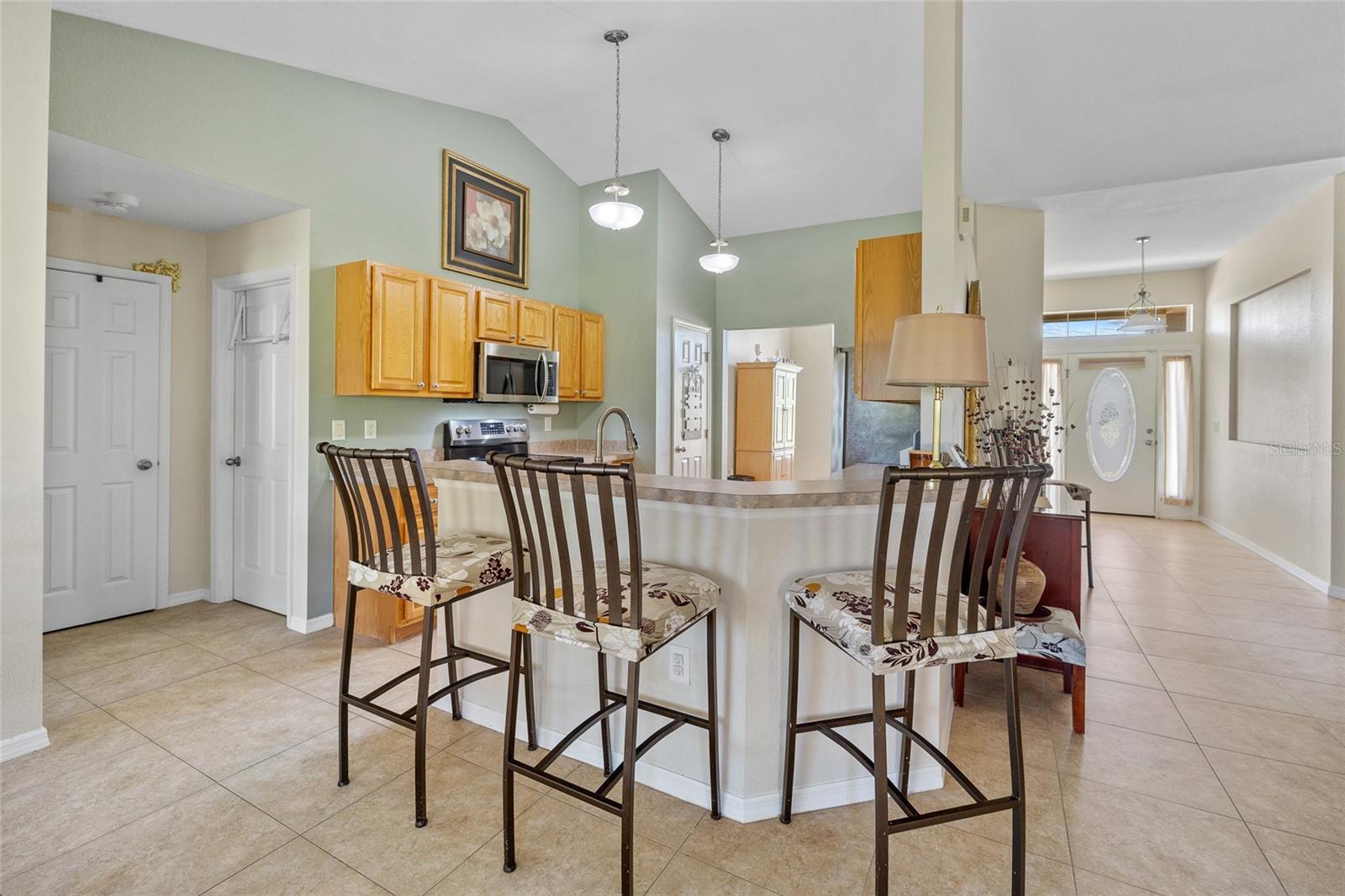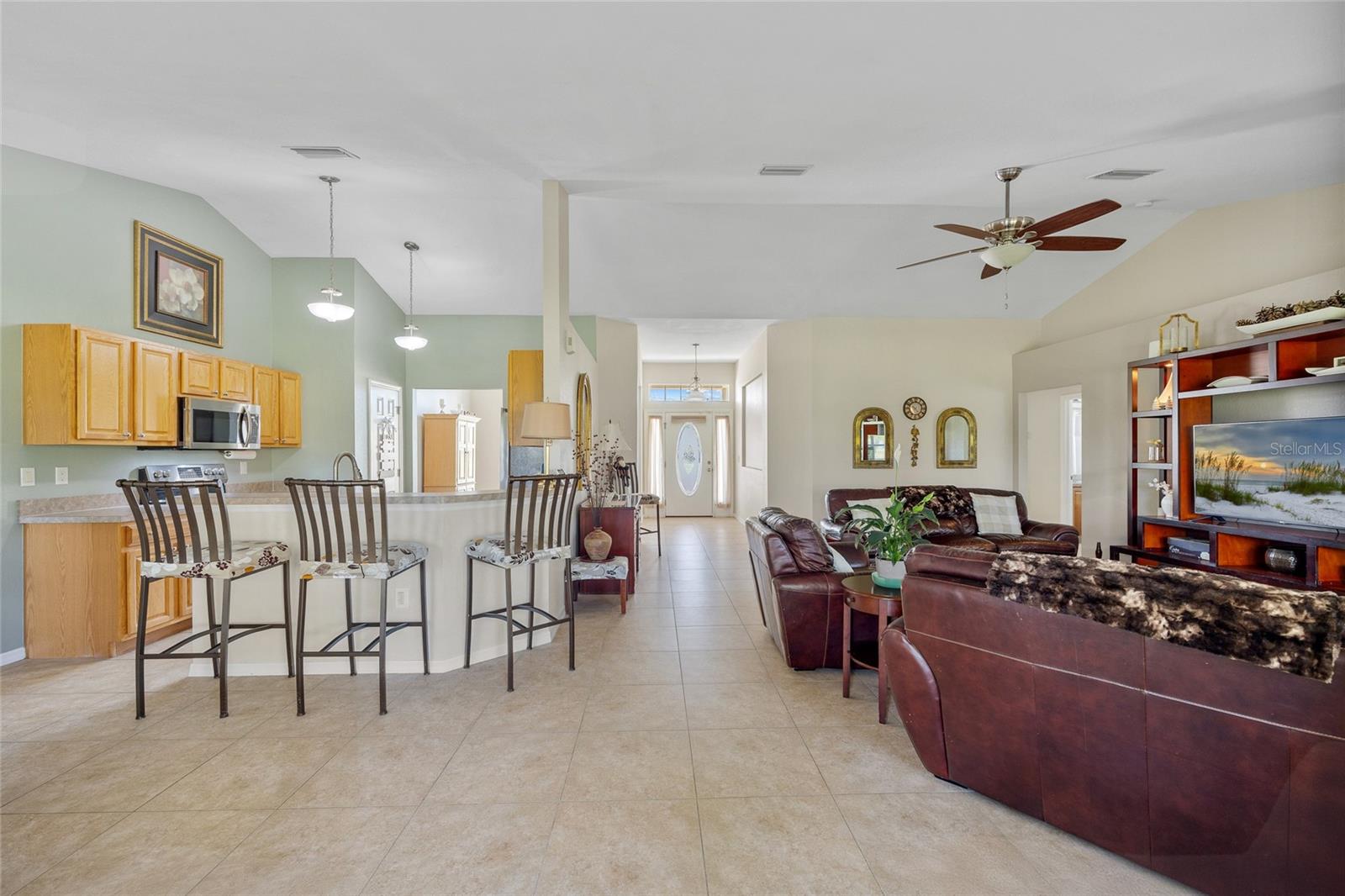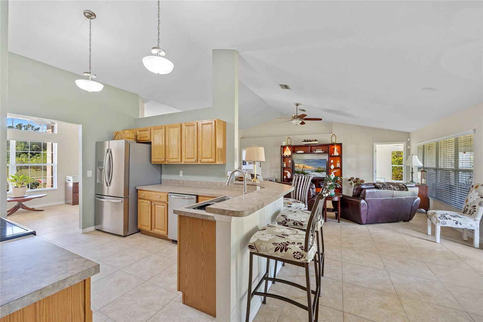 DEEP CREEK! MOVE-IN-READY 4 bedroom plus den, 2 bath, 2-car garage home is nestled in highly sought-after deed-restricted community with county water and sewer. Inviting open floor plan features over 2,145 square feet of living area, high ceilings, neutral dcor and tile flooring throughout the main living area. The kitchen offers wood cabinetry, stainless appliances, closet pantry and breakfast bar. Both casual and formal dining areas provide great space for family gatherings. The split floor plan ensures ultimate privacy for guests. The primary bedroom features access to lanai, natural light from two windows, his and hers walk-in closets and private bath with dual sinks, garden bath and walk-in shower plus 3 additional bedrooms share a full bath. Step outside to the outdoor entertaining area, which includes a covered screened lanai that overlooks greenbelt for added privacy. Plenty of room for a pool with southeastern exposure to enjoy beautiful sunrises. Additional features include newer roof, hot water heater and appliances, inside laundry room, accordion hurricane shutters, landscaped exterior, big backyard with greenbelt views and room for a pool. Meticulously maintained with pride in ownership. Great location in a friendly neighborhood conveniently located close to I-75, restaurants, shopping, schools, parks, golf and just a short drive to downtown historic Punta Gorda, known for its world-class fishing and boating, community events and entertainment. Don't miss this opportunity! Schedule your private showing today!