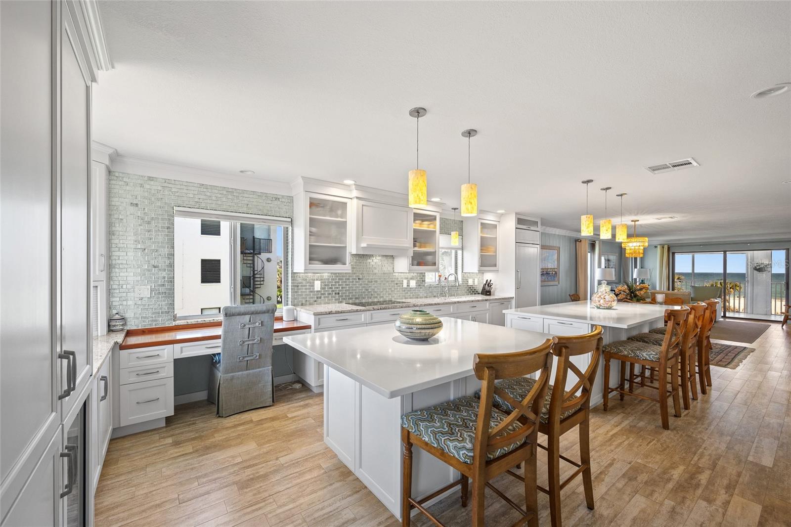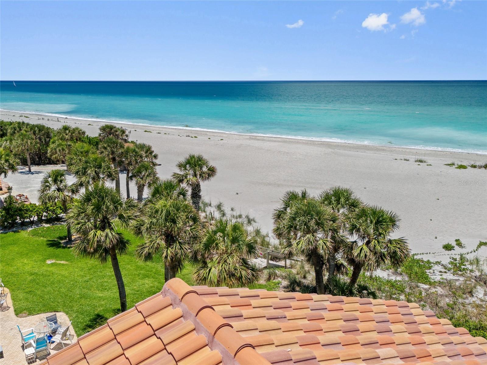 RARE FIND! STUNNING BEACHFRONT 3 BEDROOM, 3 BATH, 1 CAR GARAGE TOWNHOME ON VENICE ISLAND! Just steps to the beach plus enjoy breathtaking Southwest Florida sunsets from two west-facing lanais. This beautiful home features 2 levels and 2,156 square feet of living space that has been meticulously updated to blend modern luxury with ultimate views! The open floor plan is accentuated by contemporary lighting and decor featuring newer light fixtures, crown molding, white cabinetry, exquisite tile backsplash and granite countertops. The gourmet kitchen is a dream with two large center islands perfect for entertaining. Gather in the family room with its amazing water views or retreat to the generous primary suite upstairs, which offers lanai access, great room, large walk-in closet, and luxurious bath with dual sinks and tiled walk-in shower. The split floor plan ensures privacy with two additional bedrooms each with their own en-suite full bath perfect for hosting guests. Step outside to either lanai where you can enjoy the lush landscaping and breathtaking beach views. Additional features include a laundry closet, porcelain tile on main floor, spiral staircase, hurricane shutters, exceptionally managed association plus no structural damage from recent storms. Fantastic location minutes from downtown Venice with fine dining, shopping, entertainment plus much more. Enjoy biking, fishing, boating and strolling on the beach for sharks teeth! Experience luxury living at its finest and schedule your private showing today!