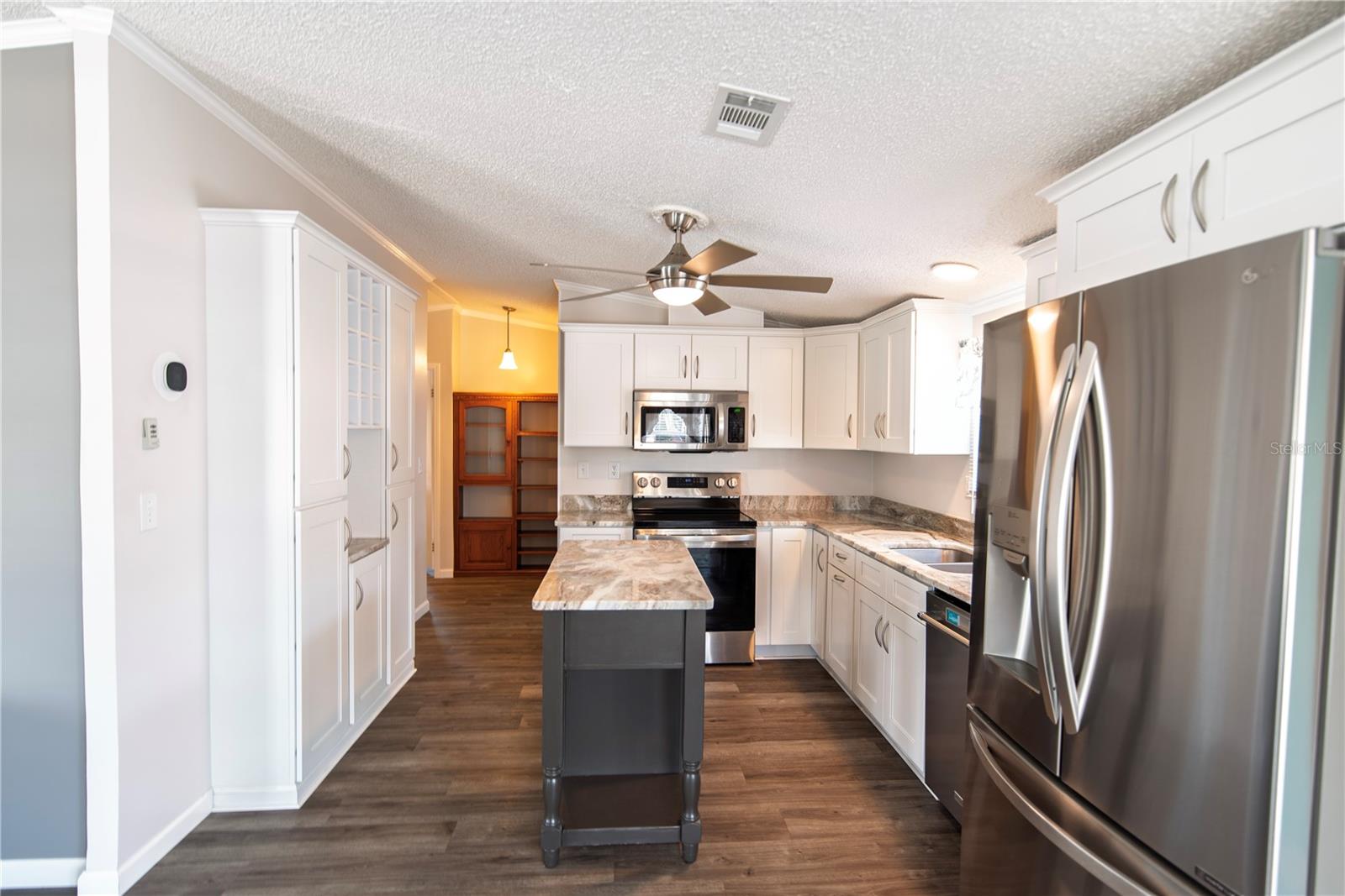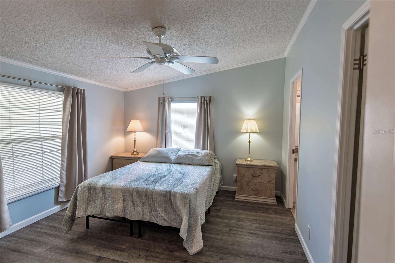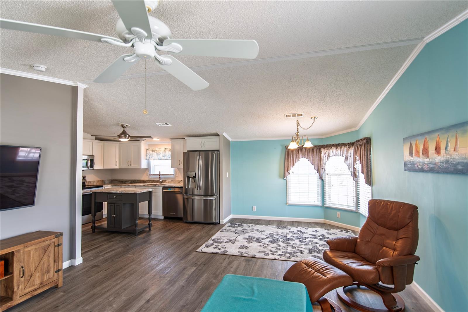Welcome to your dream home in the desirable 55+ Windmill Village community! This charming 2005 General Manufactured home offers 1,056 sq. ft. of modern comfort, featuring 2 bedrooms and 2 bathrooms. The open-concept layout seamlessly blends the living room, dining room, and kitchen, showcasing luxury vinyl plank flooring and elegant crown molding throughout the living area. The updated kitchen boasts newer stainless steel appliances, marble countertops, wood cabinets, a convenient island with storage, and a cabinet pantry. The primary bedroom includes a spacious walk-in closet, and ceiling fans throughout ensure year-round comfort. Recent upgrades include a new roof (2023), vapor barrier (2021), air conditioner (2021), hot water heater (2021), and an 11x12 storage shed (2021), making this move-in-ready home a perfect blend of style and functionality. This active lifestyle community features two private marinas, boat ramp, trailer storage yard, horseshoe pits, shuffleboard, bocce ball, billiards, indoor pickleball, a large community center and many clubs catering to your hobby interests. The Pavilion by the heated pool offers an area for holding gatherings. Punta Gorda was voted "#1 Best Small Place to Live" by Money Magazine and Forbes. Purchase price does not include $18,285 for Buy-In Share and Bond, which is refunded when you sell. Schedule your showing today to see this beautiful home! This is your paradise!