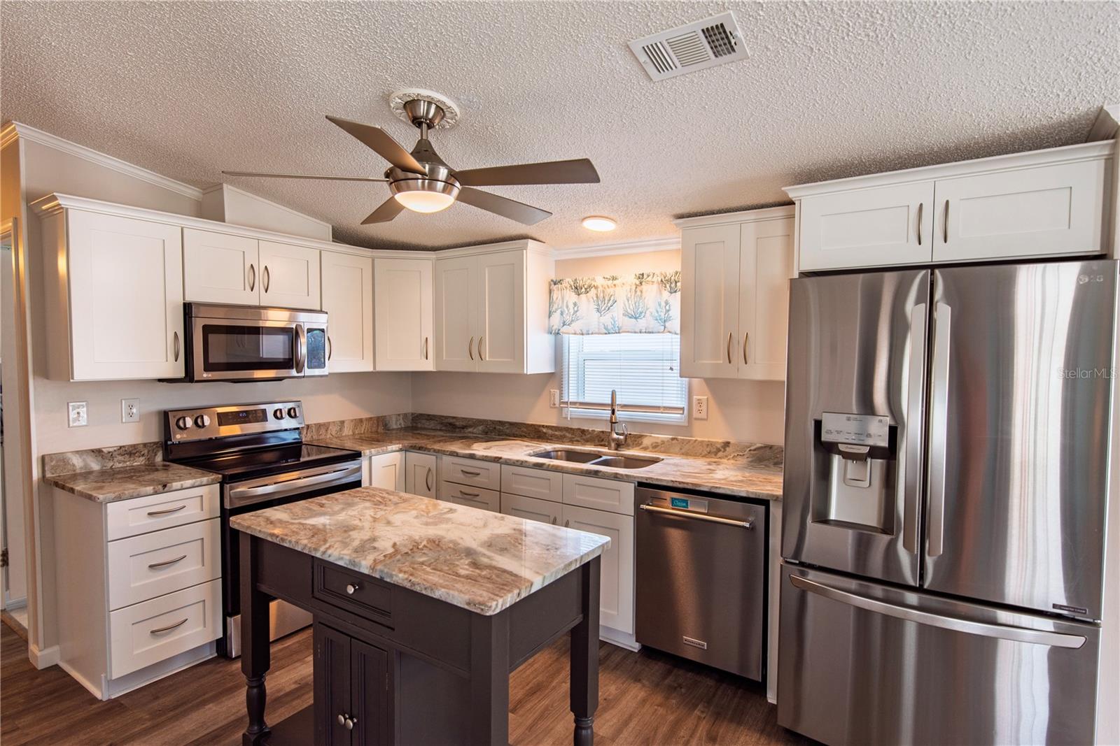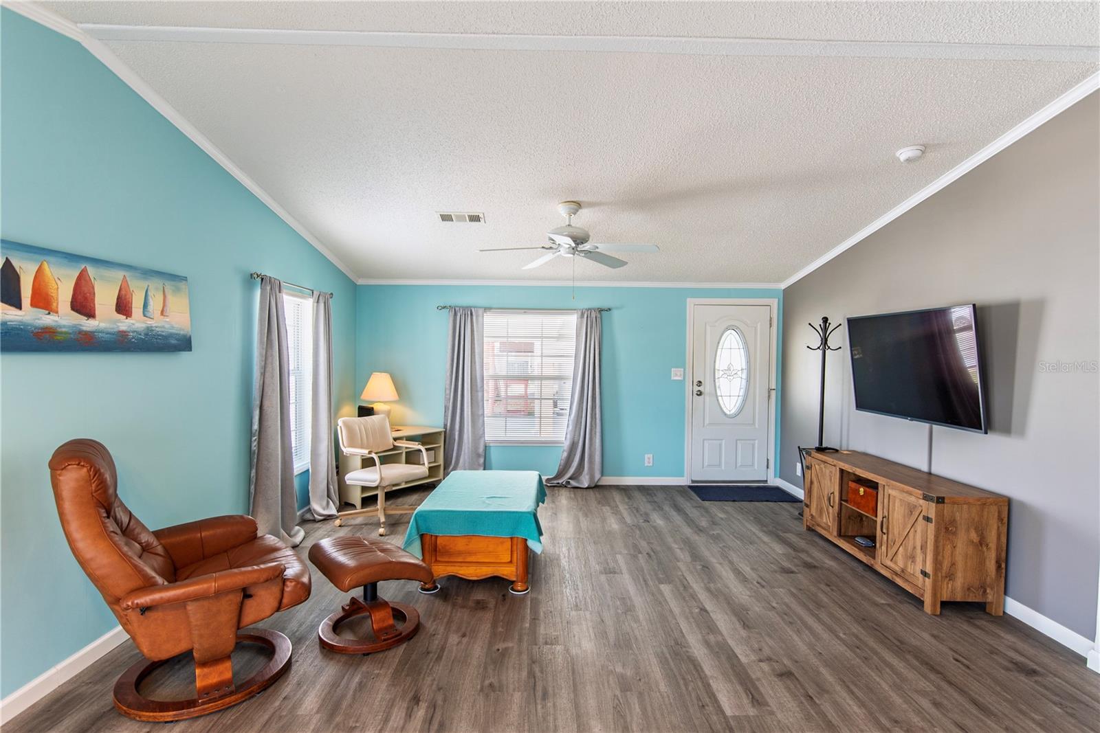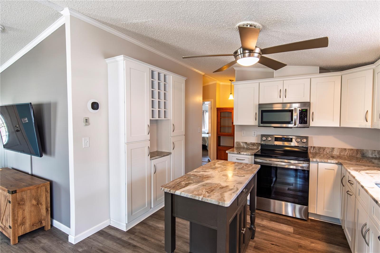 Welcome to your dream home in the desirable 55+ Windmill Village community! This charming 2005 General Manufactured home offers 1,056 sq. ft. of modern comfort, featuring 2 bedrooms and 2 bathrooms. The open-concept layout seamlessly blends the living room, dining room, and kitchen, showcasing luxury vinyl plank flooring and elegant crown molding throughout the living area. The updated kitchen boasts newer stainless steel appliances, marble countertops, wood cabinets, a convenient island with storage, and a cabinet pantry. The primary bedroom includes a spacious walk-in closet, and ceiling fans throughout ensure year-round comfort. Recent upgrades include a new roof (2023), vapor barrier (2021), air conditioner (2021), hot water heater (2021), and an 11x12 storage shed (2021), making this move-in-ready home a perfect blend of style and functionality. This active lifestyle community features two private marinas, boat ramp, trailer storage yard, horseshoe pits, shuffleboard, bocce ball, billiards, indoor pickleball, a large community center and many clubs catering to your hobby interests. The Pavilion by the heated pool offers an area for holding gatherings. Punta Gorda was voted "#1 Best Small Place to Live" by Money Magazine and Forbes. Purchase price does not include $18,285 for Buy-In Share and Bond, which is refunded when you sell. Schedule your showing today to see this beautiful home! This is your paradise!