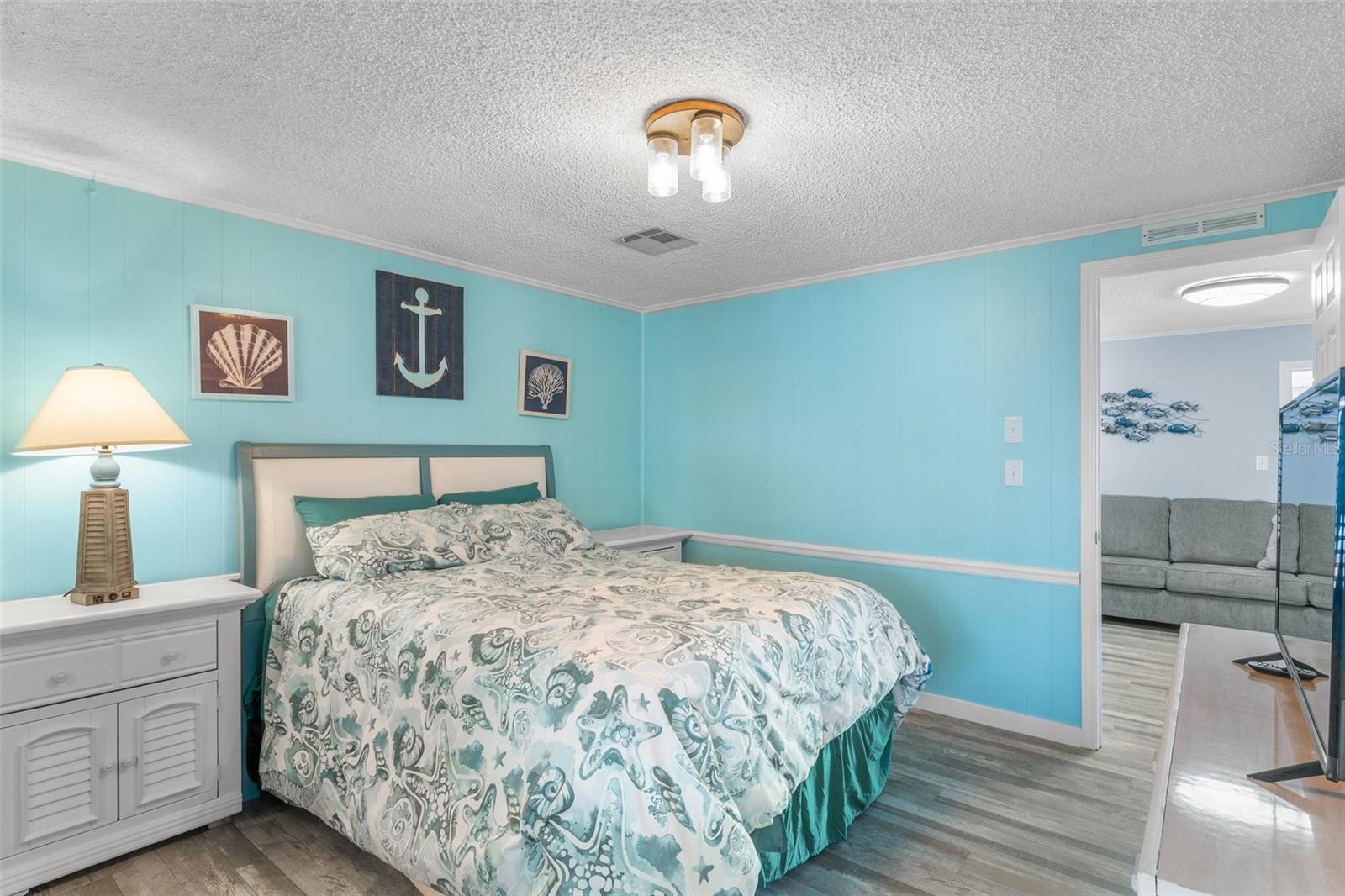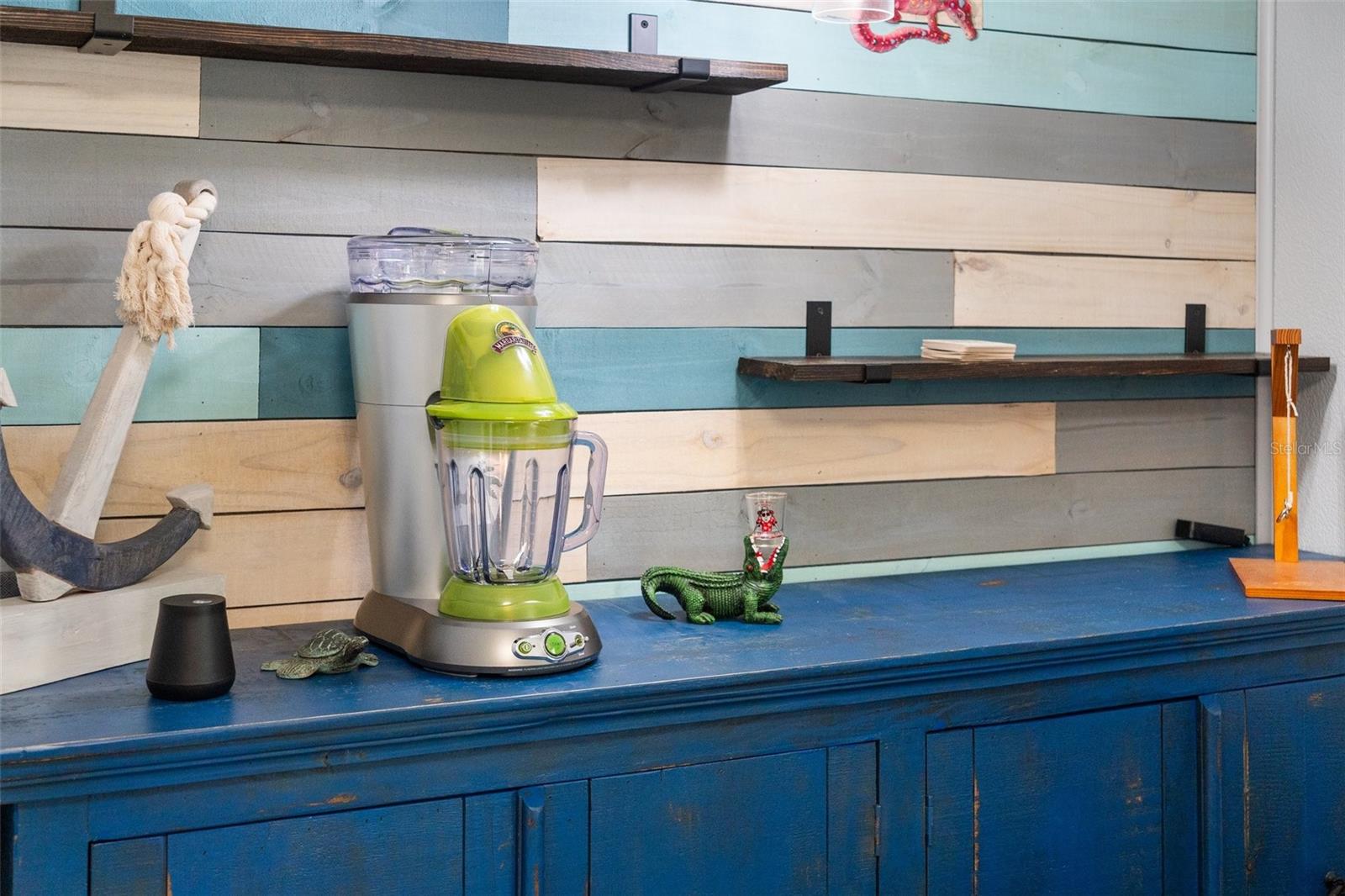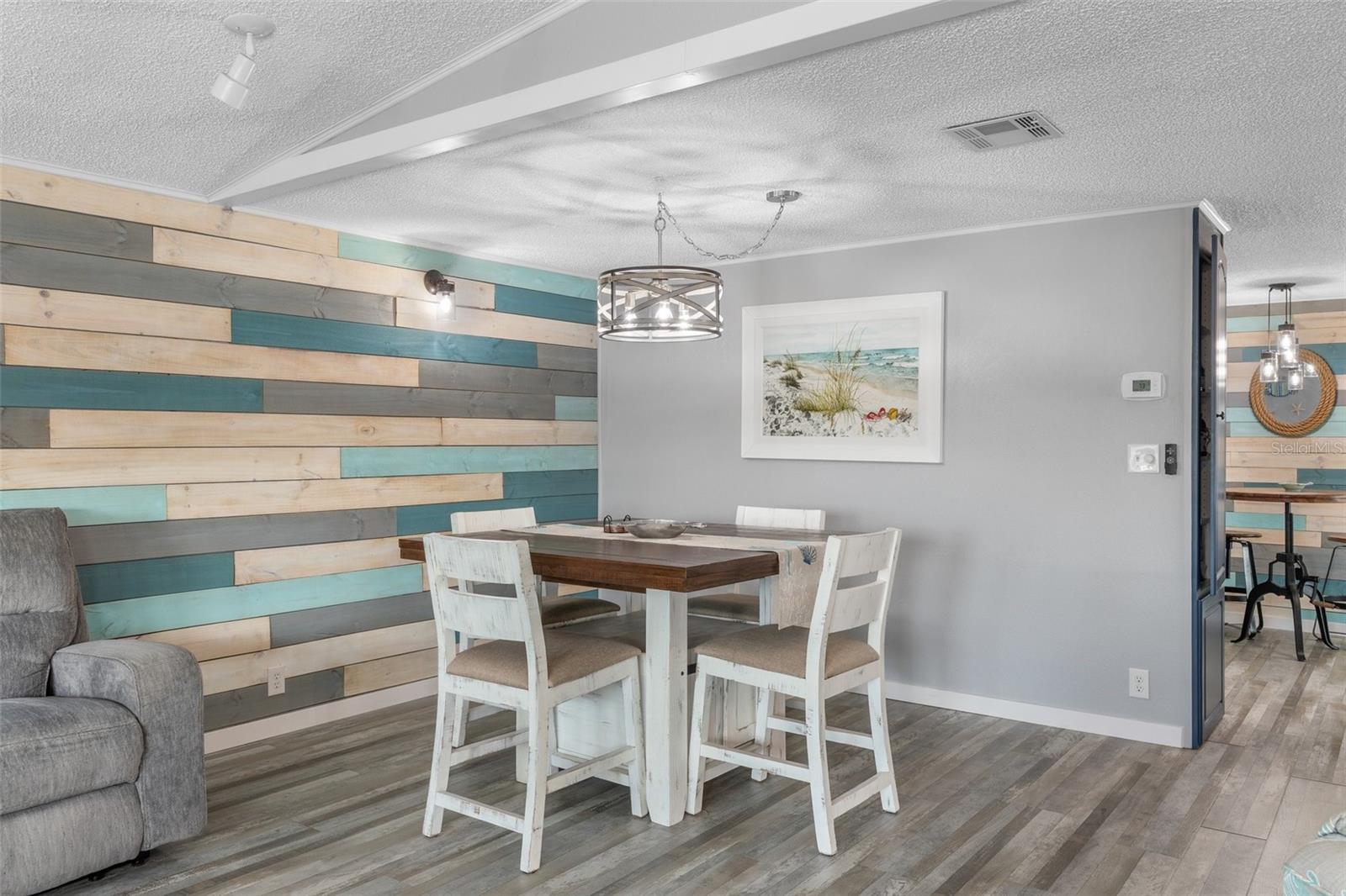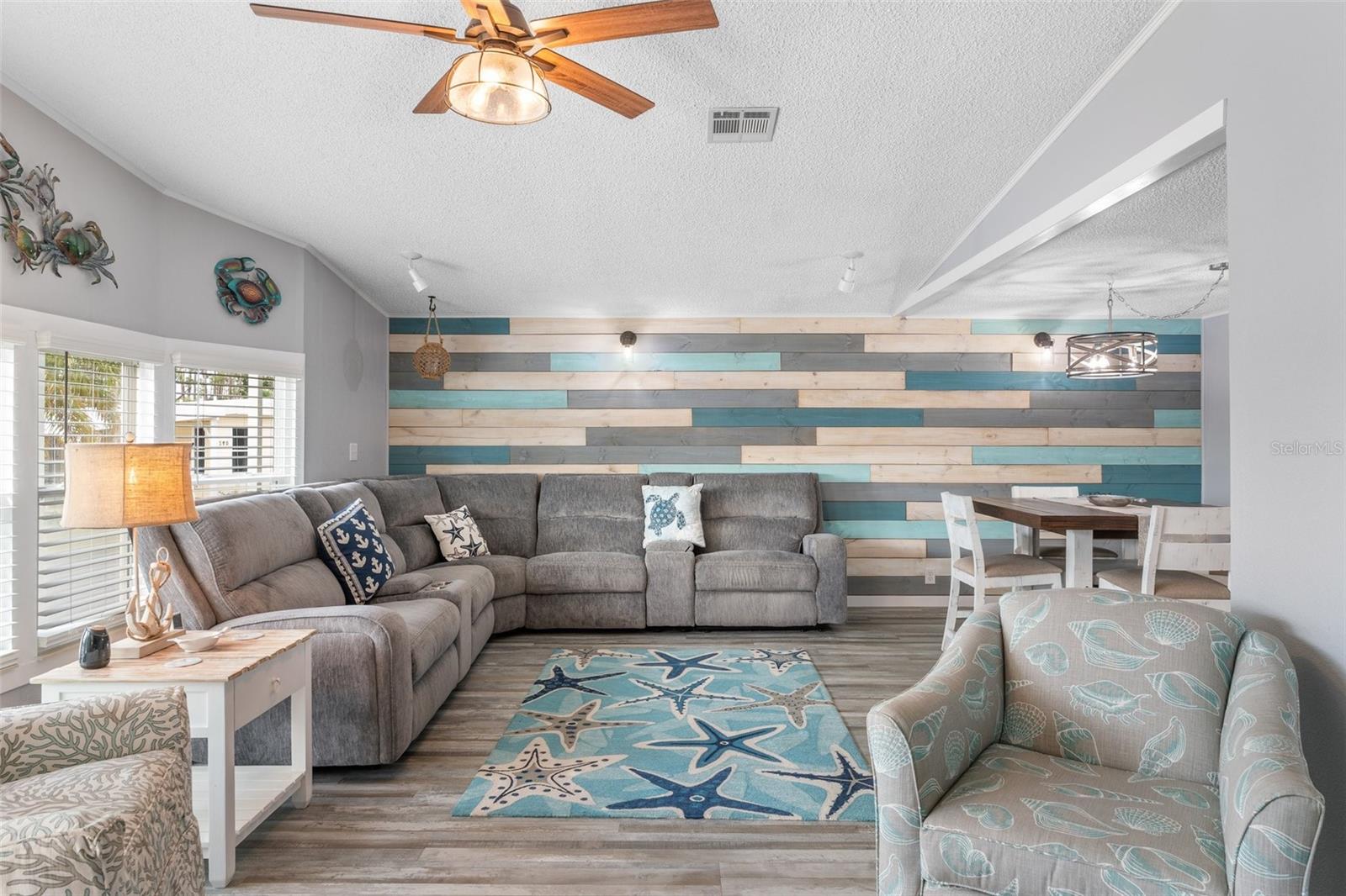 Welcome to Lazy River Village! One of the premiere 55+ waterfront manufactured park in all of Sarasota and Charlotte counties! Lazy River is located on the banks of the beautiful Myakka River. This 2 bed/2 bath home is a REAL STANDOUT. The open kitchen features GORGEOUS QUARTZ counters and solid wood cabinets to provide plenty of cooking and storage space, as well as an upgraded tile backsplash. The star of the show is a STUNNING blue island with built-in eating area. Custom details abound with a hand-painted SKYLIGHT above the island and a hand-painted panel over the refrigerator. In the dining area, wood-panel walls are unique and inviting, and the built-in bar is perfect for coffee or drinks. Head through the double doors to access the large, bright sunroom, which is perfect for relaxing on your own OR hosting company. The sun room has been upgraded with HURRICANE-RESISTANT WINDOWS & DOORS, rated to be compliant with building codes in Miami-Dade! The beachy color theme used throughout the home immerses you in that quintessential "Florida" feeling, with chic, easy-to-maintain laminate flooring and charming overhead lights. The primary bedroom has direct access to the primary bathroom, along with a walk-in closet. You'll feel like you're in your very own PERSONAL SPA with this OUTSTANDING, CUSTOM-TILED walk-in shower! This bathroom offers the epitome of spa-like living with dual sinks, a built-in shower bench, and not one, not two, but THREE shower heads-two overhead, and a detachable one near the bench! Niches provide room for your toiletries. NEW subfloor, NEW floor, NEW vapor barrier. The unique characteristics and ideal location of this home make it the perfect seasonal place to enjoy Florida's coveted gorgeous winters and a perfect year-round home for those who love all 4 seasons of Florida. If you enjoy an abundance of activities, you will have plenty to choose from in Lazy River Village: Pickleball, tennis, bike clubs, card clubs, and pontoon boating. They even have a professional woodworking shop. A low monthly fee of $276 includes all the amenities. One of the things that makes Lazy River Village so great is its proximity to...well...everything! Be prepared to enjoy Florida's wildlife at its finest, both inside the Lazy River Village complex and at abundant state parks and nature preserves. Shopping and dining surround you in all directions. The spring training homes of both the Atlanta Braves & the Tampa Bay Rays are just a minutes away. The world-renowned Gulf of Mexico beaches are all within 30 minutes or less! 1) Englewood beach, 2) Casperson Beach (GREAT for shelling), 3) Venice Beach (shark tooth capital of the world), 4) Brohard Paw Park, 5) Nokomis beach, 6) the island gem of southwest Florida: Boca Grande... And finally: 7) Siesta Key in Sarasota has been ranked multiple times as the number one beach in the nation and is a mere 35 minutes away. Lazy River Village offers a lifestyle that every retiree dreams of. You have the quaint downtowns of Venice and Punta Gorda--both cities are often ranked as Top 10 destinations in the country for retirement. Another local favorite, Englewood, is a cozy, fun beach town on the Gulf of Mexico.The residents of Lazy River Village agree: Lazy River is a community that offers it all. Don't miss your chance to see this unique home!