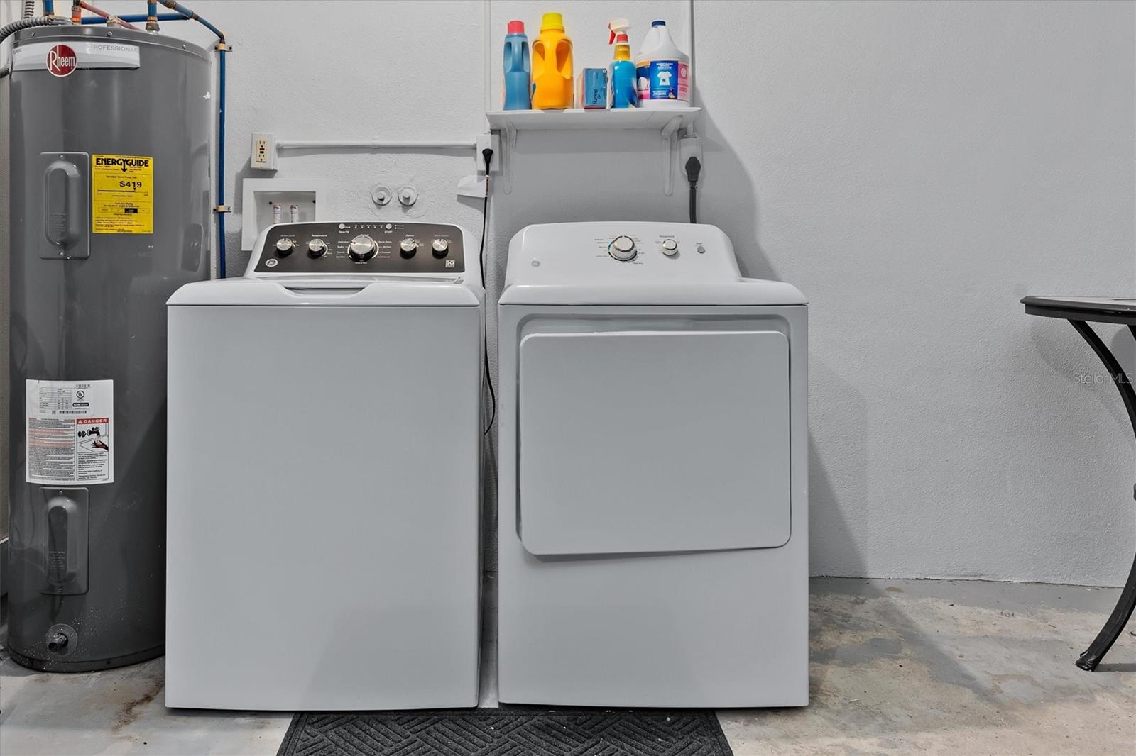 Appliances: Dishwasher, Disposal, Dryer, Electric Water Heater, Microwave, Range, Refrigerator, Washer