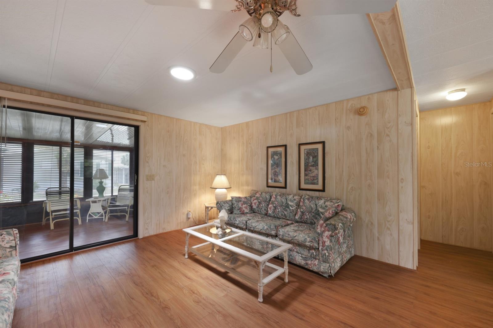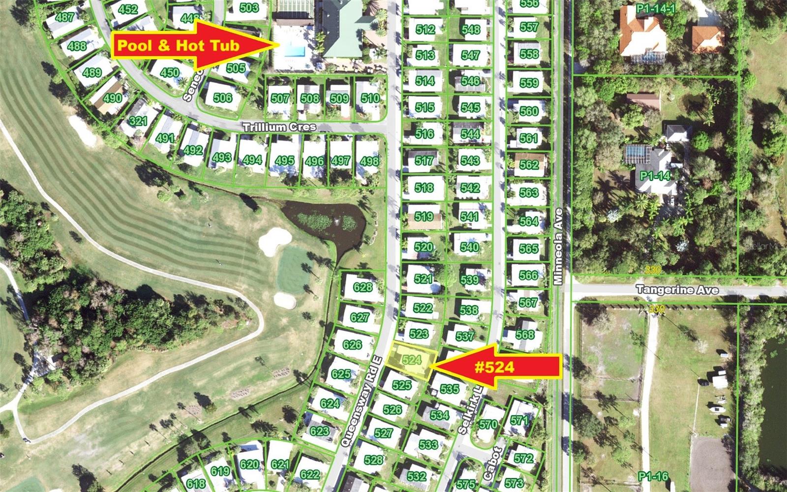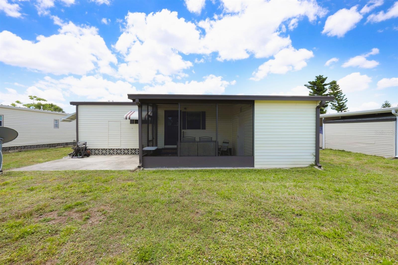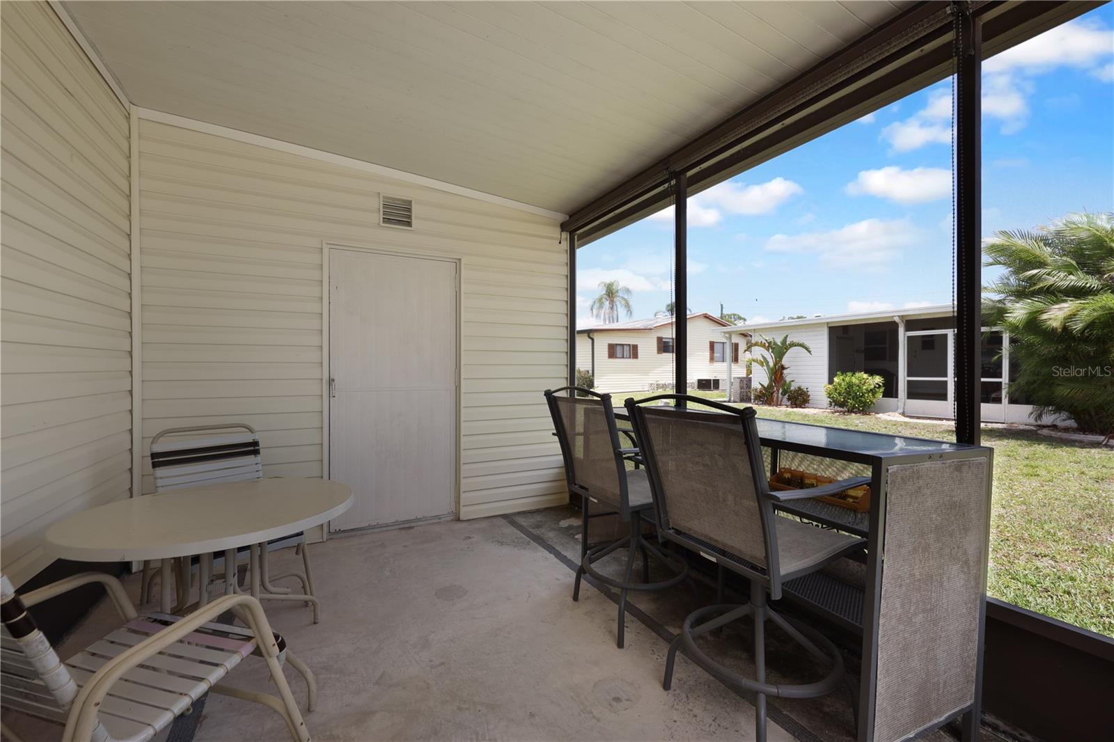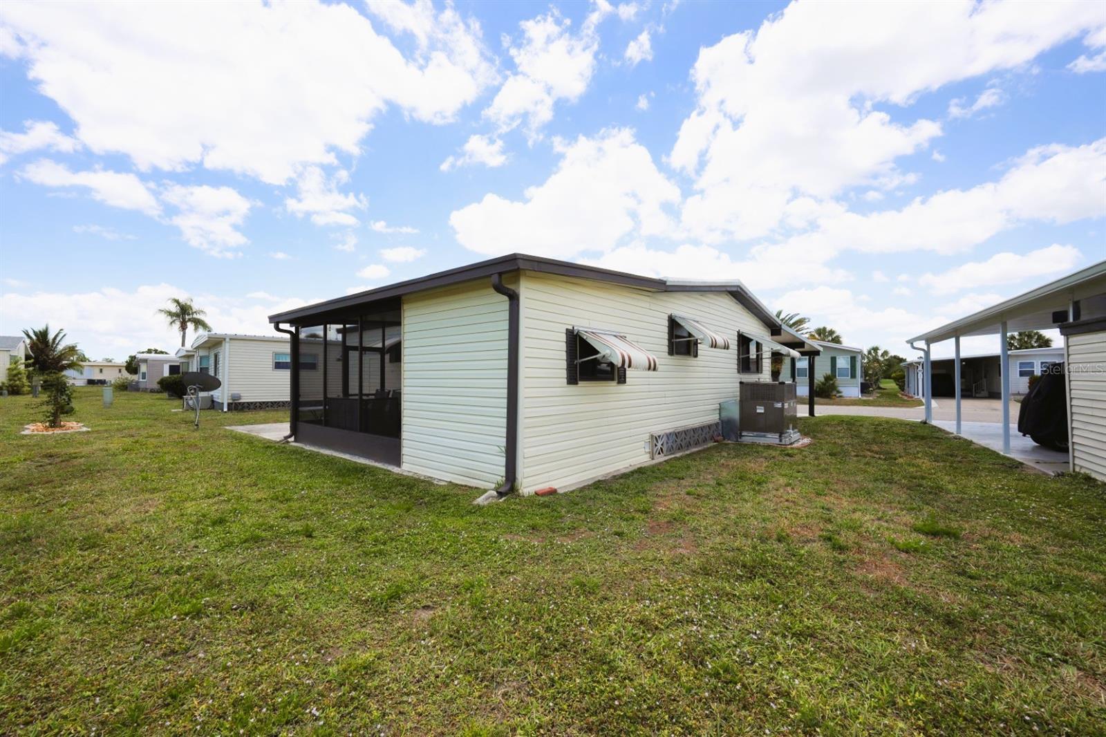 Welcome to 524 Queensway Rd East in the award winning 55+ golfing community of Maple Leaf Golf and Country Club. This 2 bedroom, 2 bathroom 1984 home may be just what you are looking for. This home is being sold furnished as shown. Upon entering the home through the spacious 176sq ft front Lanai, you enter the living room followed by the dining room with built in cabinets followed by the kitchen that is not too big or too small. The split bedroom floor plan is perfect for entertaining overnights guests with the primary bedroom suite on one side of the home and the guest bedroom on the other. No carpet, luxury vinyl plank for easy maintenance. Through the back door of the home, you'll have two more outdoor spaces, a 140sq ft screened lanai, 140sq ft concrete open air patio and an 80sq foot storage shed that doubles as your laundry. AC replaced in 2024. AMS metal roof-over installed 2023. Water heater replaced in 2007. Windows in front lanai replaced in 2014. Carport replaced in 2023. **Be sure to check out the 3-D virtual tour and walk through video links**. Maple Leaf is a great social golfing community where the activities and amenities are endless! With a resort lifestyle including over 75 plus clubs and activities AND 4 heated swimming pools, 5 tennis courts, 4 pickleball courts, 2 hot tubs, 2 shuffleboard court centers, Bocce ball, lawn bowling, billiards, horseshoe pits, corn hole, 2 restaurants, Tiki hut and Tiki bar, fitness center, woodworking shop, computer club, remote control sailboat racing and so much more. It's all about the lifestyle in Maple Leaf, let us show you how fabulous it truly is.