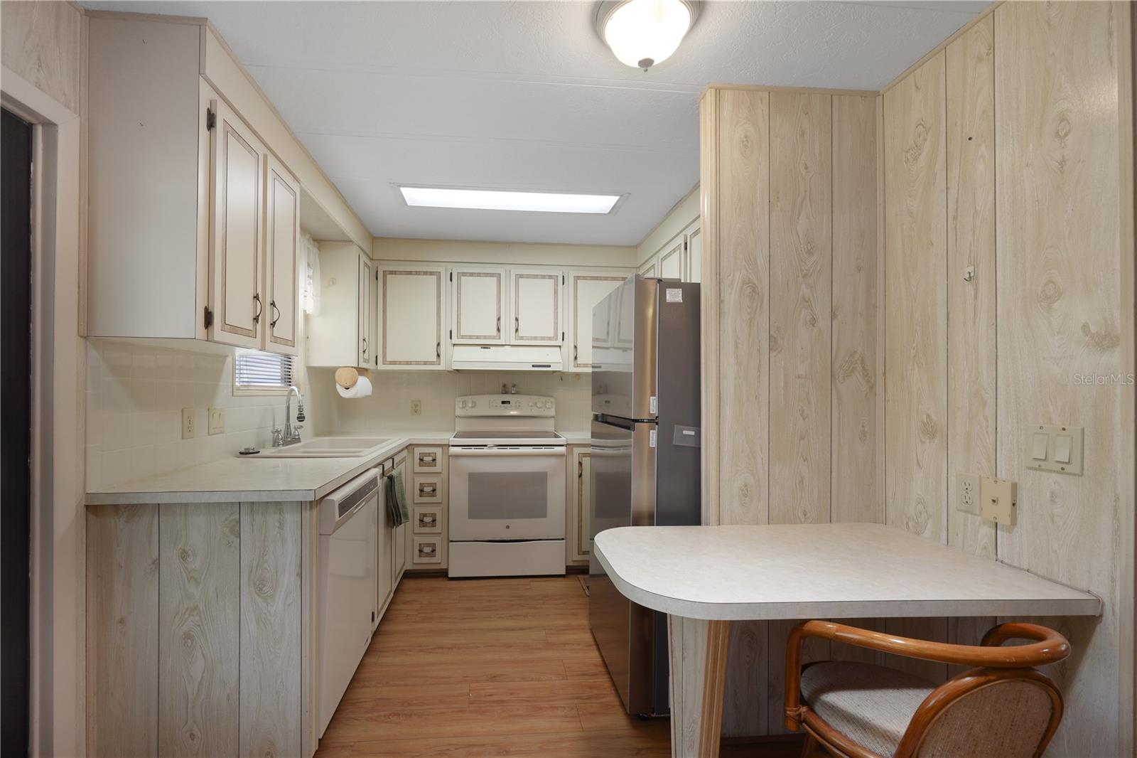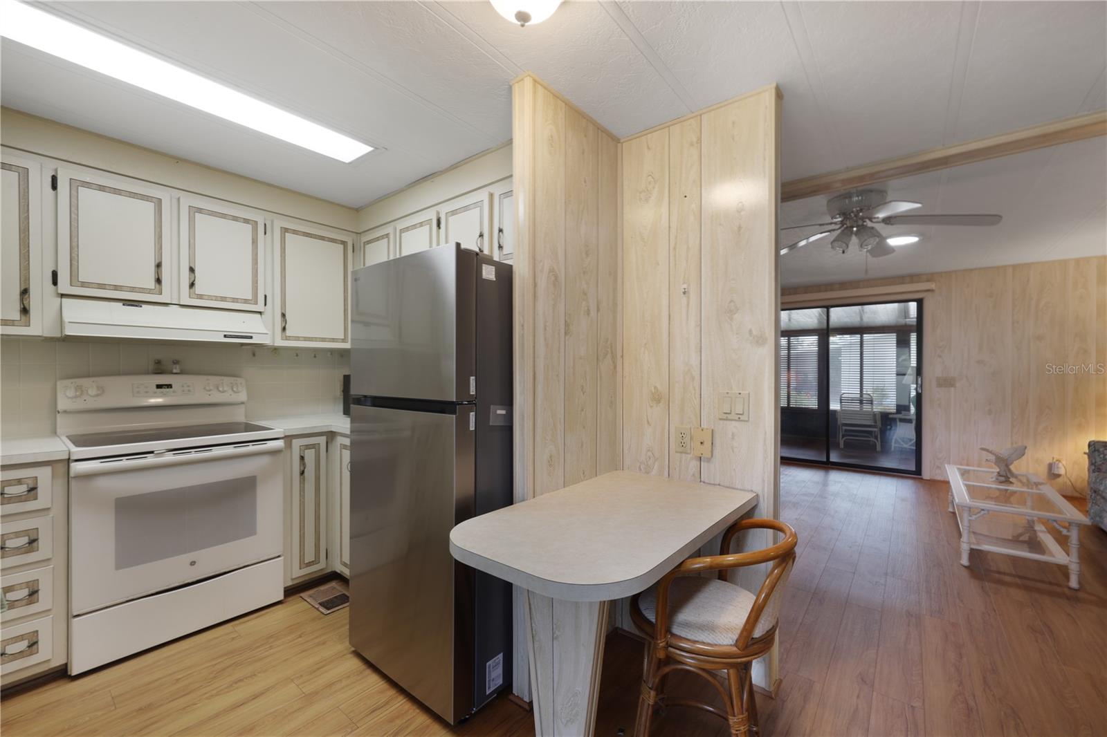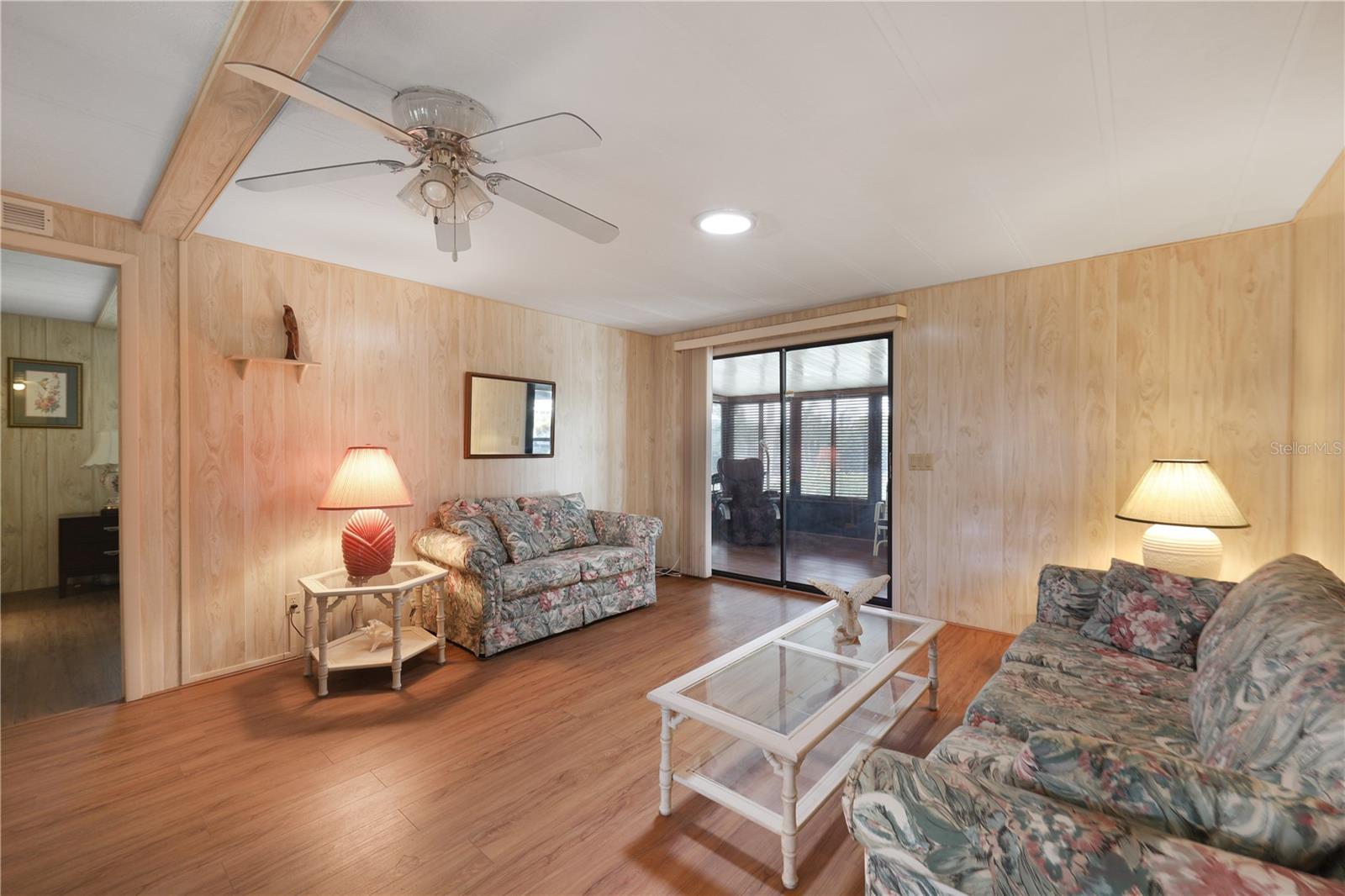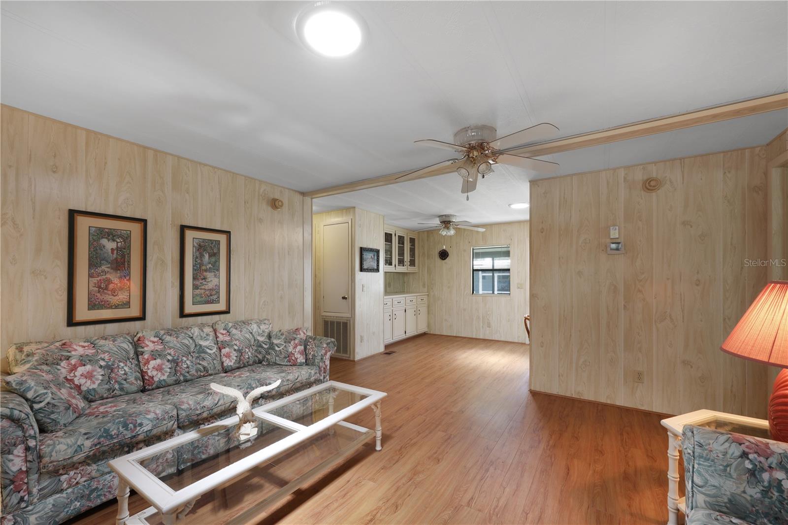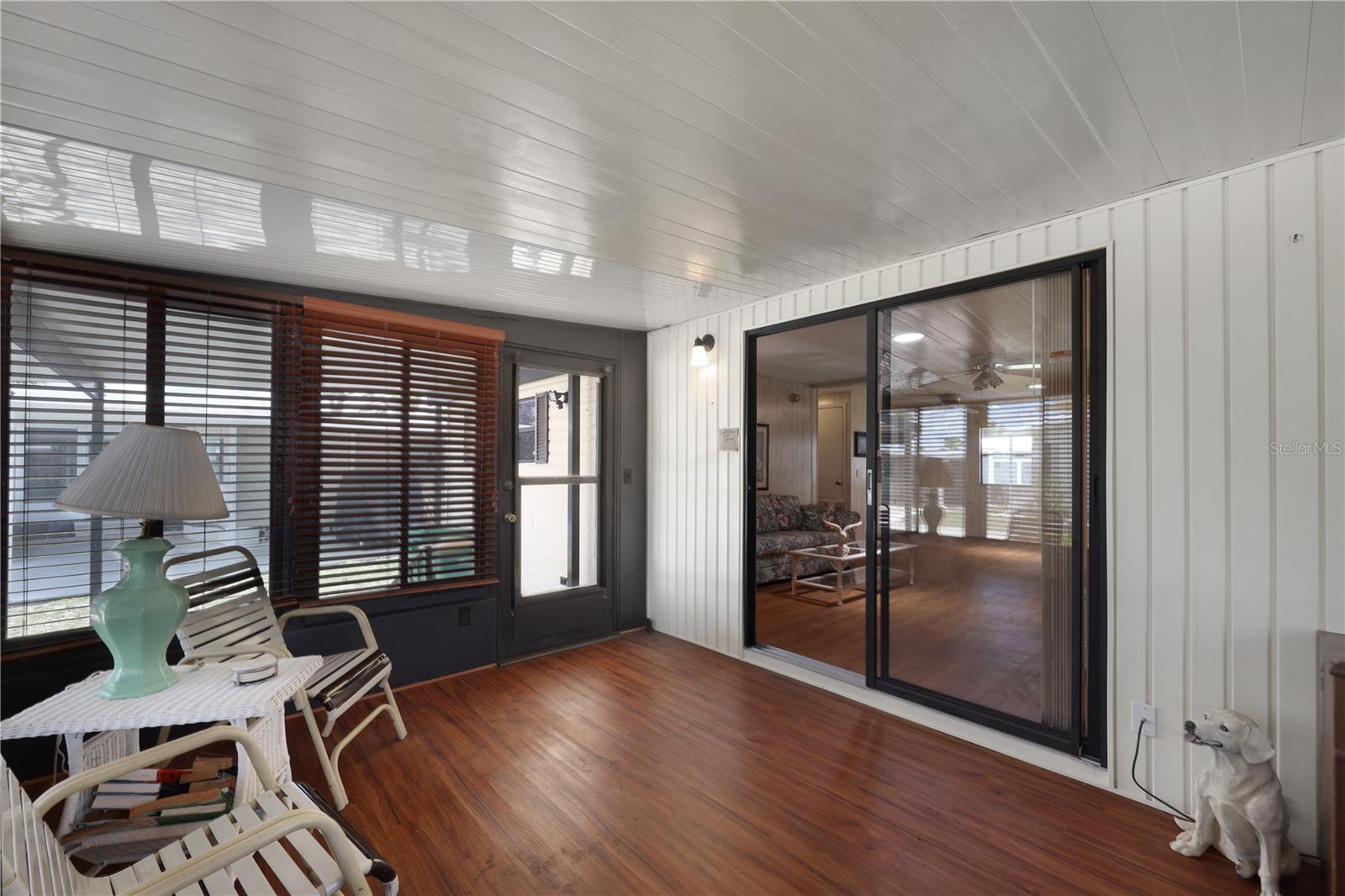 Welcome to 524 Queensway Rd East in the award winning 55+ golfing community of Maple Leaf Golf and Country Club. This 2 bedroom, 2 bathroom 1984 home may be just what you are looking for. This home is being sold furnished as shown. Upon entering the home through the spacious 176sq ft front Lanai, you enter the living room followed by the dining room with built in cabinets followed by the kitchen that is not too big or too small. The split bedroom floor plan is perfect for entertaining overnights guests with the primary bedroom suite on one side of the home and the guest bedroom on the other. No carpet, luxury vinyl plank for easy maintenance. Through the back door of the home, you'll have two more outdoor spaces, a 140sq ft screened lanai, 140sq ft concrete open air patio and an 80sq foot storage shed that doubles as your laundry. AC replaced in 2024. AMS metal roof-over installed 2023. Water heater replaced in 2007. Windows in front lanai replaced in 2014. Carport replaced in 2023. **Be sure to check out the 3-D virtual tour and walk through video links**. Maple Leaf is a great social golfing community where the activities and amenities are endless! With a resort lifestyle including over 75 plus clubs and activities AND 4 heated swimming pools, 5 tennis courts, 4 pickleball courts, 2 hot tubs, 2 shuffleboard court centers, Bocce ball, lawn bowling, billiards, horseshoe pits, corn hole, 2 restaurants, Tiki hut and Tiki bar, fitness center, woodworking shop, computer club, remote control sailboat racing and so much more. It's all about the lifestyle in Maple Leaf, let us show you how fabulous it truly is.