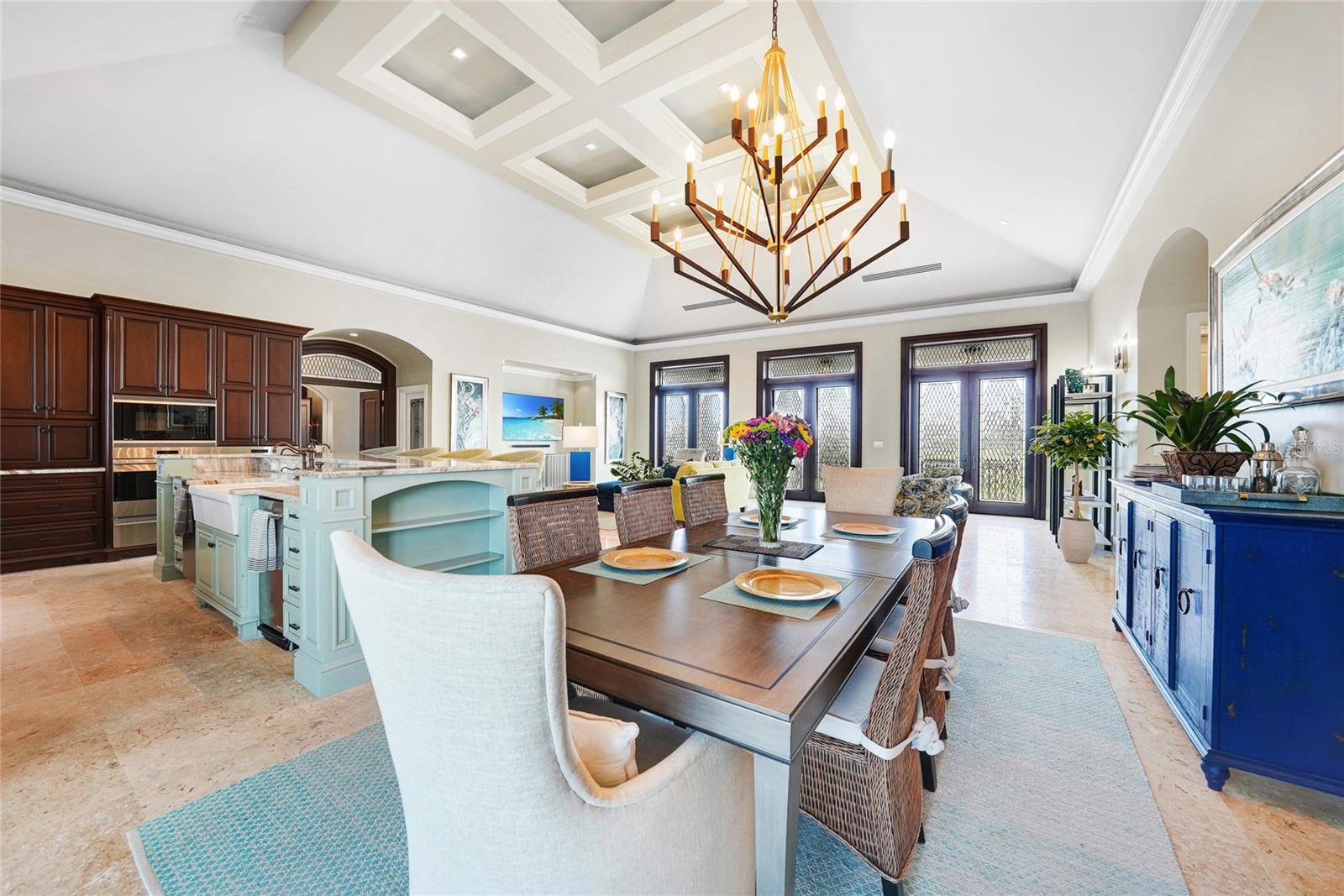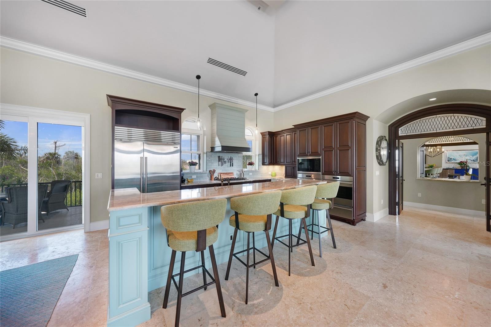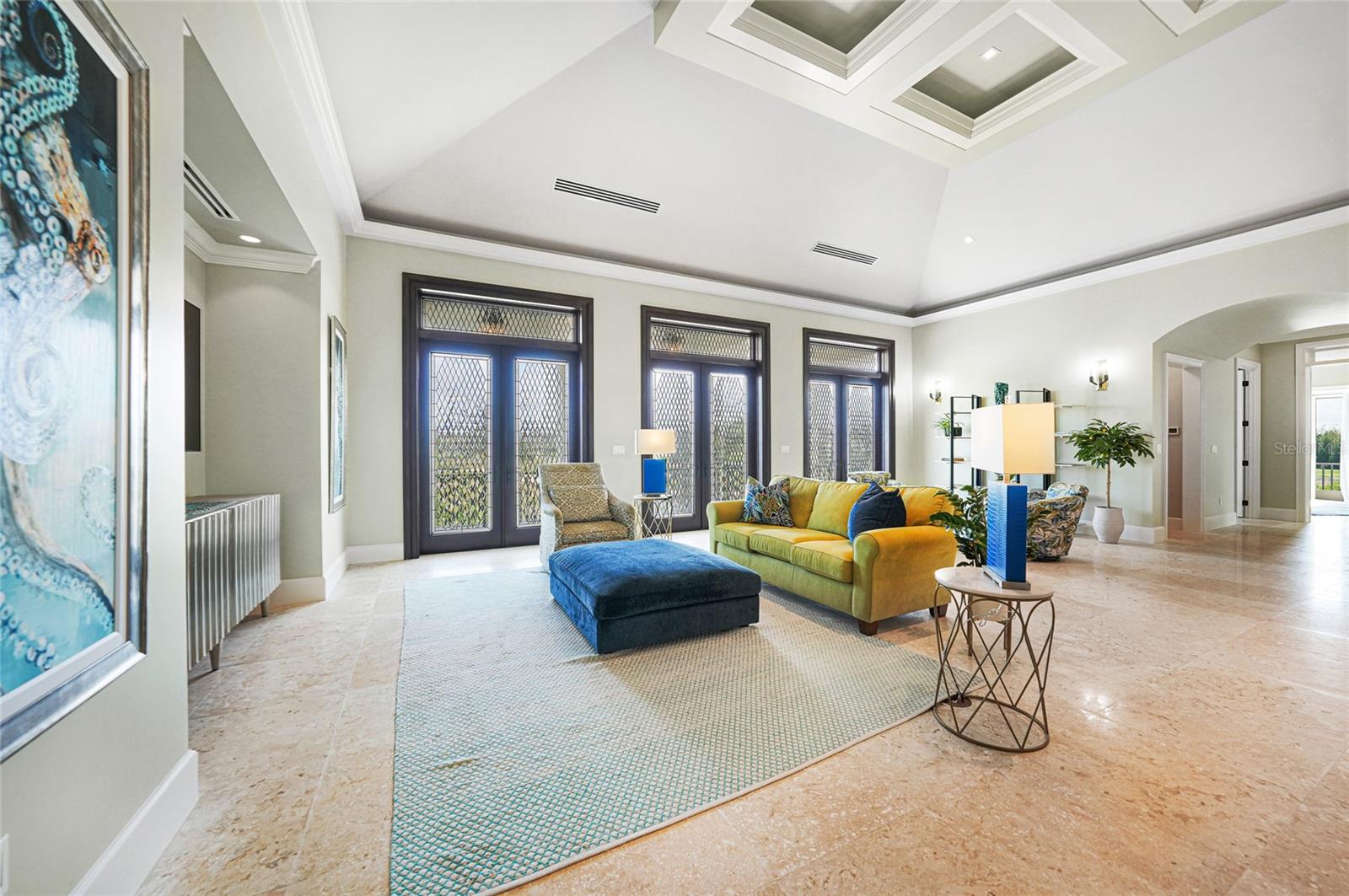 Experience the pinnacle of coastal luxury in this extraordinary waterfront residence, perfectly situated on two manicured lots within the prestigious, gated community of Lemon Bay Golf Club. Built in 2017 and thoughtfully updated with high-end upgrades, new interior and exterior paint, and enhanced features throughout, this home offers a rare combination of elegance, functionality, and resort-style living. Spanning over 4,460 square feet under air, this 3-bedroom, 3.5-bathroom masterpiece features a 6-car garage divided between east and west wings, a private elevator, and impeccable craftsmanship in every detail. The home's stately curb appeal includes a tri-colored paver driveway, lush landscaping, and a grand double staircase leading to an impressive front balcony. At the heart of the home, a chef's kitchen is outfitted with rich cabinetry, granite countertops, designer tile backsplash, a gas cooktop, and premium WOLF appliances. A large center island anchors the space, while an adjacent built-in bar enhances functionality for entertaining. With seamless access to two fully equipped outdoor kitchens and multiple balconies, the home is perfectly designed for indoor-outdoor living. A unique architectural breezeway leads to the private indoor/outdoor pool and pool house. This serene retreat is enclosed by arched screened windows to allow natural coastal breezes and features new lighting, updated pool equipment, elegant paver decking, and a coffered ceiling with fans. Whether hosting guests or enjoying a quiet afternoon, this resort-style space offers year-round comfort and style. For boating enthusiasts, a newly constructed private dock provides quick access to Lemon Bay and Stump Pass. Equipped with a 20,000 lb boat lift and a 3,000 lb jet ski lift, the dock offers an ideal setup for both serious boaters and recreational water lovers. The expansive primary suite serves as a luxurious retreat with wraparound balconies, tray ceilings, an electric fireplace, and a custom dressing area with a built-in vanity. The spa-like ensuite bath features a soaking tub, glass-enclosed shower with designer tile, dual vanities, and a private water closet. Each guest bedroom is ensuite and includes custom closets and high-end finishes.Additional highlights of this exceptional home include a brand-new security camera system, pre-stressed concrete floors throughout (extending to the balconies), impact windows and doors, a durable metal roof, a home gym/flex room, custom millwork and ceiling treatments, an EV charger, and a 60 kW whole-house generator. The professionally landscaped grounds are enhanced with irrigation and Lutron smart lighting systems. Set within one of Florida's most exclusive golf communities, this waterfront estate presents an unparalleled opportunity for those seeking refined living, unmatched privacy, and effortless access to coastal adventure