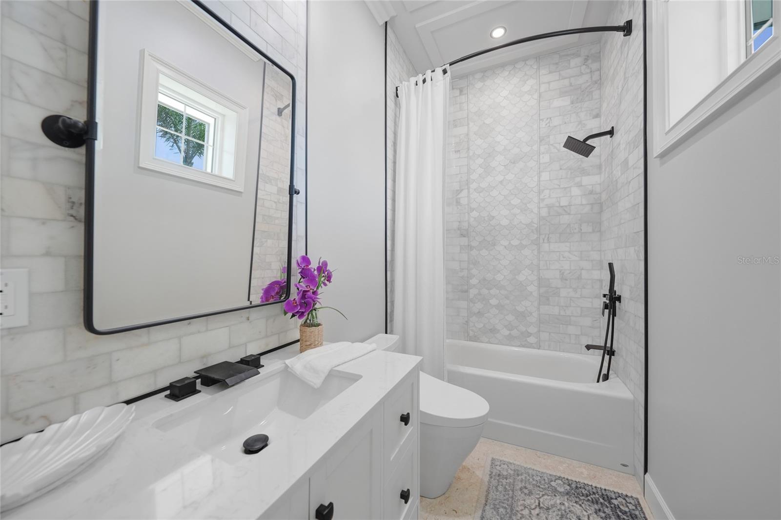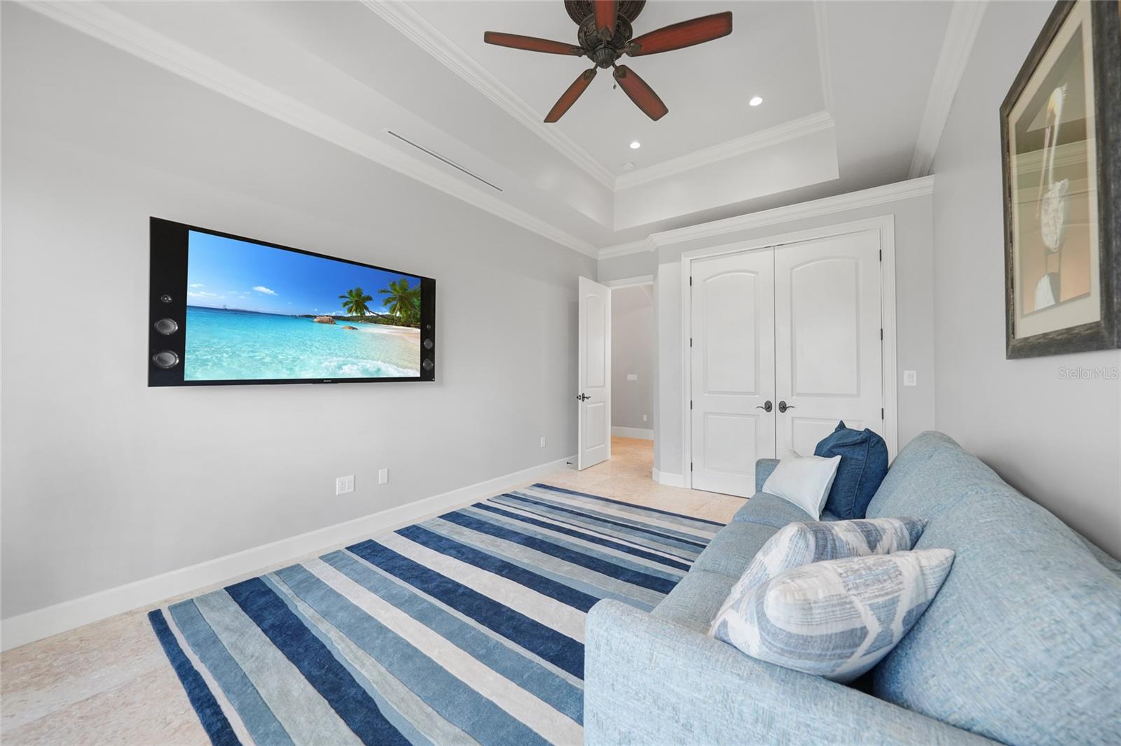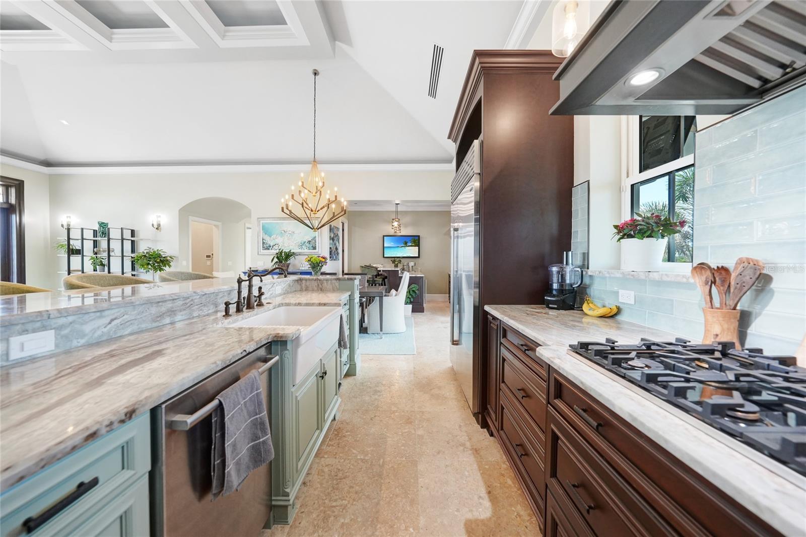 Experience the pinnacle of coastal luxury in this extraordinary waterfront residence, perfectly situated on two manicured lots within the prestigious, gated community of Lemon Bay Golf Club. Built in 2017 and thoughtfully updated with high-end upgrades, new interior and exterior paint, and enhanced features throughout, this home offers a rare combination of elegance, functionality, and resort-style living. Spanning over 4,460 square feet under air, this 3-bedroom, 3.5-bathroom masterpiece features a 6-car garage divided between east and west wings, a private elevator, and impeccable craftsmanship in every detail. The home's stately curb appeal includes a tri-colored paver driveway, lush landscaping, and a grand double staircase leading to an impressive front balcony. At the heart of the home, a chef's kitchen is outfitted with rich cabinetry, granite countertops, designer tile backsplash, a gas cooktop, and premium WOLF appliances. A large center island anchors the space, while an adjacent built-in bar enhances functionality for entertaining. With seamless access to two fully equipped outdoor kitchens and multiple balconies, the home is perfectly designed for indoor-outdoor living. A unique architectural breezeway leads to the private indoor/outdoor pool and pool house. This serene retreat is enclosed by arched screened windows to allow natural coastal breezes and features new lighting, updated pool equipment, elegant paver decking, and a coffered ceiling with fans. Whether hosting guests or enjoying a quiet afternoon, this resort-style space offers year-round comfort and style. For boating enthusiasts, a newly constructed private dock provides quick access to Lemon Bay and Stump Pass. Equipped with a 20,000 lb boat lift and a 3,000 lb jet ski lift, the dock offers an ideal setup for both serious boaters and recreational water lovers. The expansive primary suite serves as a luxurious retreat with wraparound balconies, tray ceilings, an electric fireplace, and a custom dressing area with a built-in vanity. The spa-like ensuite bath features a soaking tub, glass-enclosed shower with designer tile, dual vanities, and a private water closet. Each guest bedroom is ensuite and includes custom closets and high-end finishes.Additional highlights of this exceptional home include a brand-new security camera system, pre-stressed concrete floors throughout (extending to the balconies), impact windows and doors, a durable metal roof, a home gym/flex room, custom millwork and ceiling treatments, an EV charger, and a 60 kW whole-house generator. The professionally landscaped grounds are enhanced with irrigation and Lutron smart lighting systems. Set within one of Florida's most exclusive golf communities, this waterfront estate presents an unparalleled opportunity for those seeking refined living, unmatched privacy, and effortless access to coastal adventure