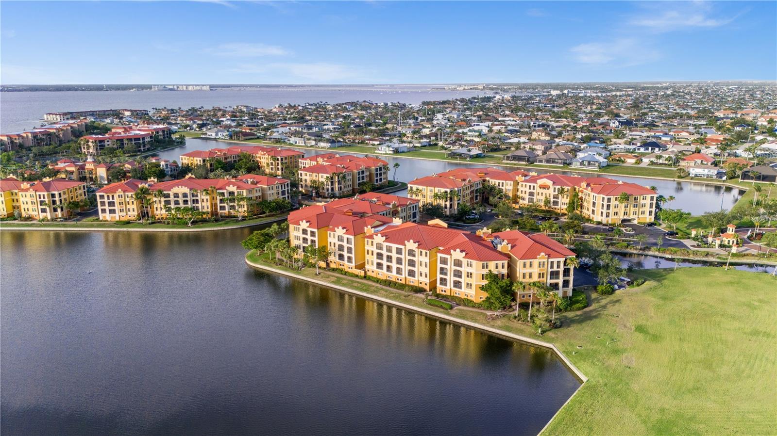 Experience Stunning Waterfront Views and Breathtaking Sunsets in this Impeccably Maintained 2-Bedroom + Den Condo!Welcome to your dream home! This beautifully maintained 2-bedroom + office/den, 2.5-bathroom condo offers 2,106 square feet of thoughtfully designed living space. With sought-after west-facing waterfront views, you'll enjoy spectacular sunsets and a tranquil ambiance every evening.This residence is offered turnkey furnished, including an enclosed garage and a large screened balcony equipped with StormSmart Hurricane Protection Screens. A new metal roof was installed in 2024, ensuring peace of mind for years to come.Inside, the open floor plan features a spacious living area, split-bedroom layout for privacy, and abundant natural light. The kitchen boasts solid surface countertops, ample cabinetry, stainless steel appliances, and a large pantry--perfect for both everyday living and entertaining. The primary suite includes a generously sized en suite bath, walk-in closets, and serene water views. The den offers enough space for a pull-out couch--ideal for guests or a flexible workspace.Additional highlights:Blinds and window treatments includedStylishly furnished and move-in readyCondo fees include: cable TV, security, sewer, trash, and water.Community amenities include:Luxury resort-style pool and separate lap poolTennis courtsClubhouse with fitness center and full-service spaGrilling areas, walking paths, water features, and pondsVivante is a gated, active community offering a variety of social events and activities. Conveniently located near Ponce De Leon Park, Fishermen's Village, downtown Punta Gorda, Publix, and Punta Gorda Airport.This property is ideal as a primary residence, seasonal home, or investment property.Don't miss your chance to own this stunning waterfront retreat!
