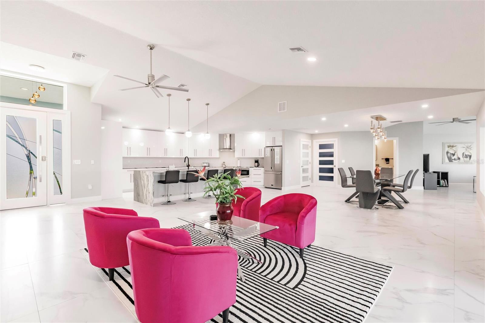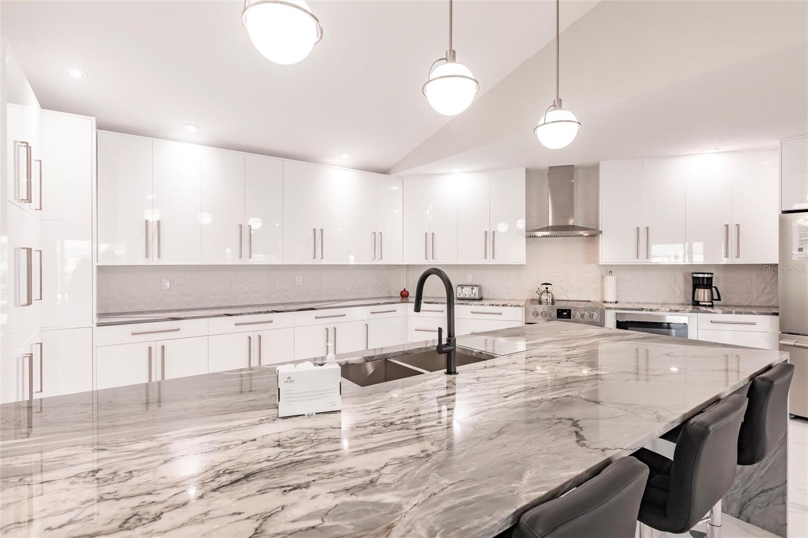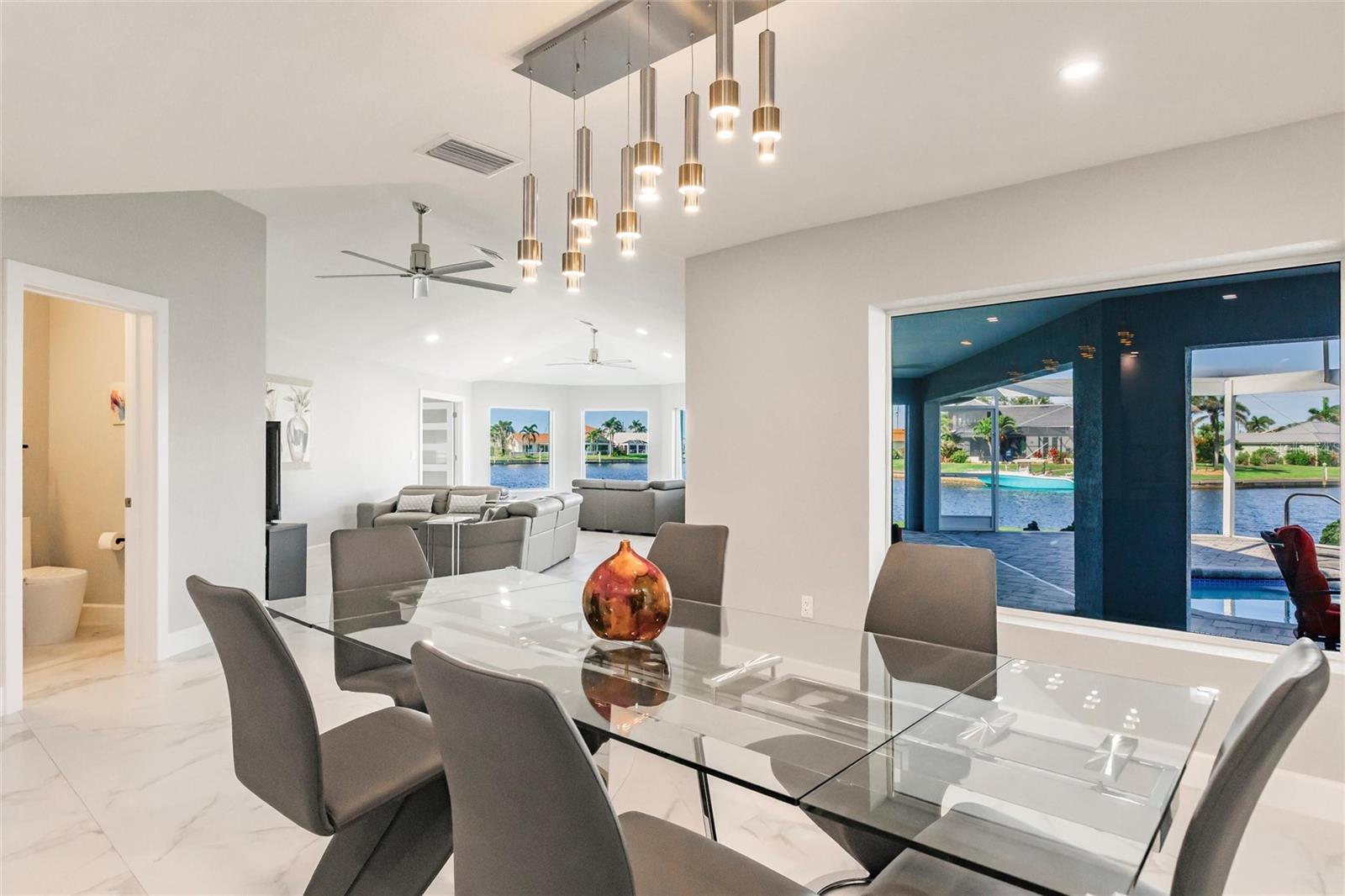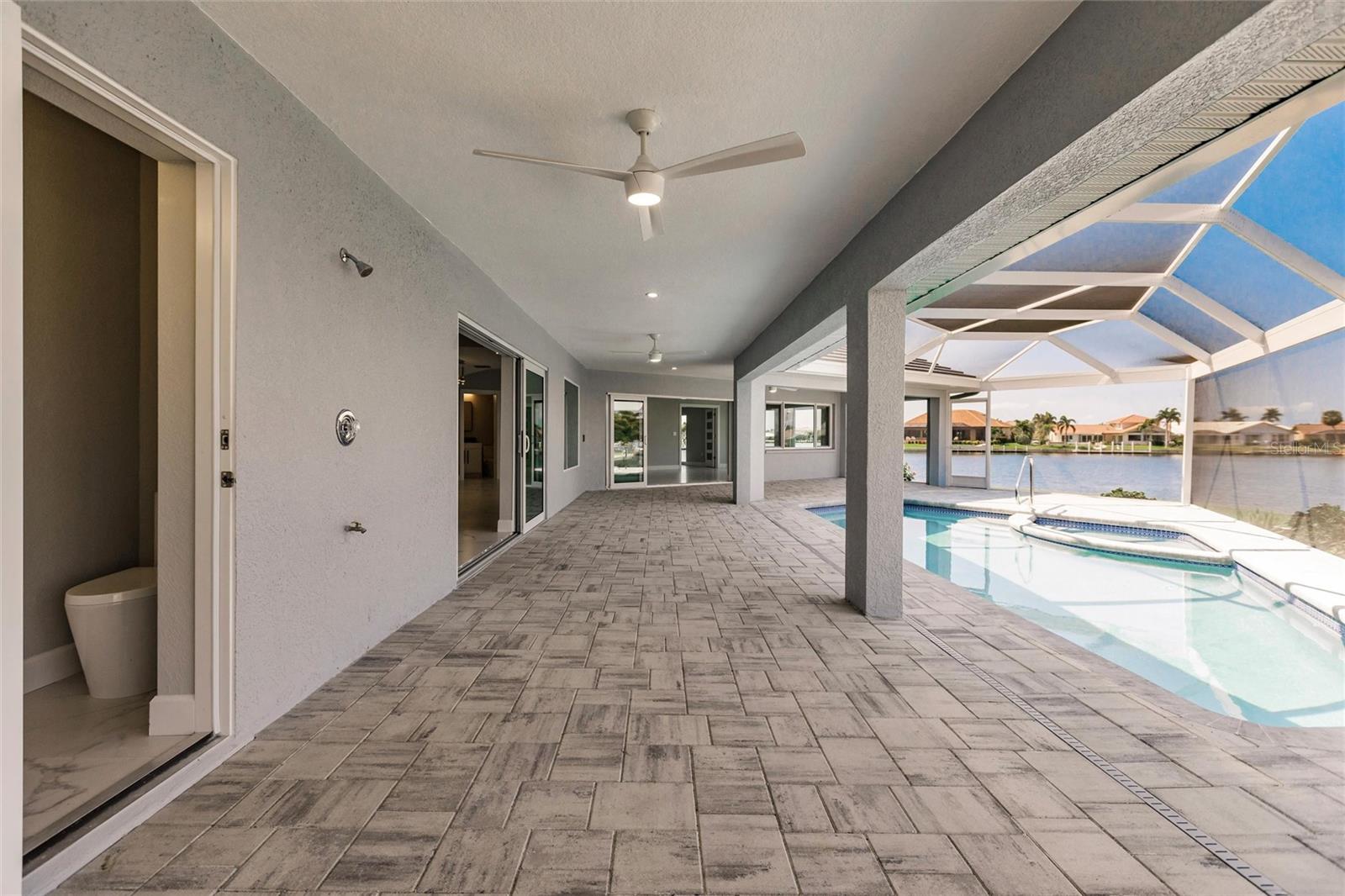 Welcome to your turn-key 2024 Renovated Waterfront Oasis, where every detail whispers of luxury and relaxation. Nestled just 5 MINUTES away from the bustling harbor, this haven boasts 175 feet of serene SAILBOAT waterfront, offering a front-row seat to a paradise that is exclusively yours to enjoy. Venezia makes for the perfect ready Airbnb. IMPACT WINDOWS AND DOORS offer peace of mind year-round. Lasting up to 50 years, the newly installed CONCRETE ROOF offers additional protection for a homeowner! Stepping inside this NEWLY PAINTED & RE-STUCCOED sanctuary, you are greeted by 2,911 square feet of meticulously crafted living space. With 3 large bedrooms and 2 full baths, along with 2 half baths, there's room for everyone to unwind in comfort. Porcelain tile floors gleam throughout the home, leading you to a gorgeous living area adorned with large picture windows and sliding glass doors that frame the breathtaking views of your waterfront property. Entertaining is effortless and enjoyable for all. The gourmet kitchen is adorned with high gloss, solid wood European cabinets that softly close, brushed nickel cabinet pulls, a spacious walk-in pantry with cabinetry, and sleek Fulgor Milano Sophia appliances, including an induction range that beckons the inner chef within you. Admire the beautiful water view from the heated poolside oasis, where a resurfaced heated swimming pool with spa awaits, enclosed by a pool cage with no see um screen for uninterrupted enjoyment! As we retreat to the master suite, a deck invites you to sip your morning coffee while soaking in the surroundings. With a view that relaxes, further pamper yourself in the large ensuite bath, featuring Ratel toilets, Kohler sinks, and a Halo water filtration system. A concrete dock with an 18,000 lb. lift awaits the avid boater, ensuring total access to the water below. This property also has a front-row seat to the yearly festive Christmas Boat Parade that has become a staple in this community. Indulge in the finer things in life at this turn-key waterfront retreat, where every amenity has been thoughtfully curated for your utmost enjoyment. Welcome home to luxury living, where every day feels like a vacation.