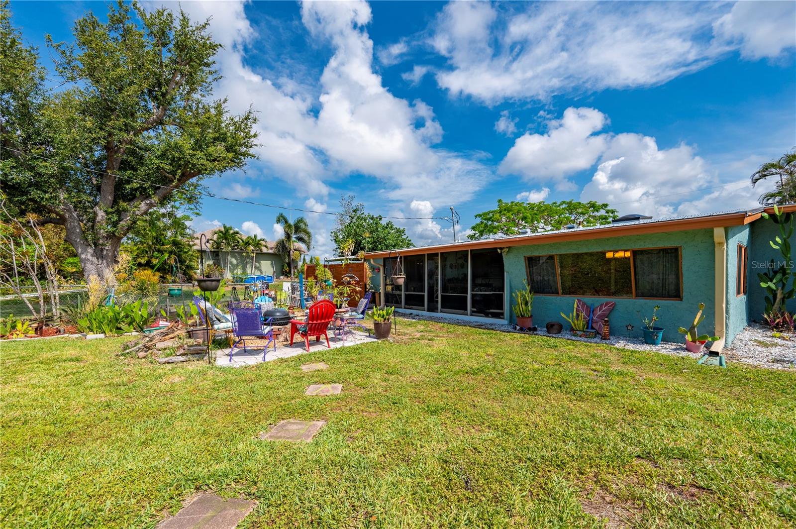 This is a must see!!! From the Covered Front Porch that runs along the front of the home to stepping inside to find a warm and Welcoming interior you will fall in Love, Featuring a split-bedroom floor plan, open Living spaces, and plenty of natural light. Enter the Primary suite thru the French Doors to the private en-suite bathroom with dual sinks, walk in Custom Tile and Stone Shower, while two additional bedrooms and Guest Bath provide ample room for family, guests, or a home office. The kitchen is well-equipped for everyday living or entertaining and offers direct access to the Dining and Living areas. Enjoy peaceful mornings or evening relaxation on the Screened patio, overlooking the fenced backyard--perfect for pets, play, or gardening. Outside, the expansive yard with the open-air Patio areas offers endless possibilities. Situated on an oversized Lot this Beautiful and utterly Unique Home has been lovingly maintained and offers Privacy, Serenity, and true Florida living, New Metal Roof 2023, plus there is a attached two(2) car garage, Circle drive along with a Carport allows for additional covered parking or an Ideal spot to give you more space to entertain, there is also a nice storage shed, which will provide space for your lawn equipment and collectables, all this on .33 of an Acre. You will be just a short drive to everything, Concerts, Craft and Boat shows, Special community events, along with miles of waterfront walkways, Punta Gorda's Pickleplex with numerous pickle ball courts. A nice quiet community near local waterways and beaches, dining, shopping, Tennis and Golf courses make this property ideal for the Florida lifestyle. Also, easy access to public waterfront parks with bike and walking trails and picnic areas, and boat ramps providing access to the Peace and Myakka Rivers, beautiful Charlotte Harbor, and the Gulf of Mexico. We Invite you to come take a look and picture living in this Beautiful Home.