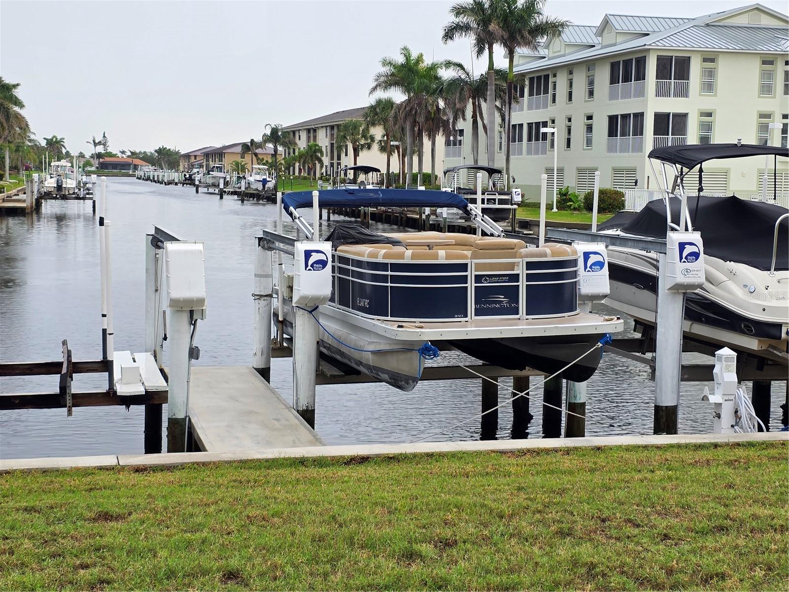 WOW - Don't Miss This Waterfront Gem!This beautifully maintained 2-bedroom, 2-bath ground-floor condo offers breathtaking long canal views from every room. Step out your back door to your assigned dock and lift, and be in open water within minutes - a boater's dream! Inside, the condo is bright, airy, and among the nicest units in the complex. It features a new A/C compressor and air handler system scheduled for installation in July - giving you peace of mind for years to come. Enjoy walkable access to Fisherman's Village, where dining, shopping, and entertainment await. Whether you're looking for a year-round home or a seasonal escape, this waterfront retreat is the one you've been waiting for!