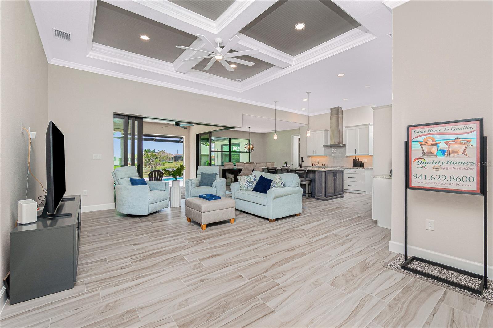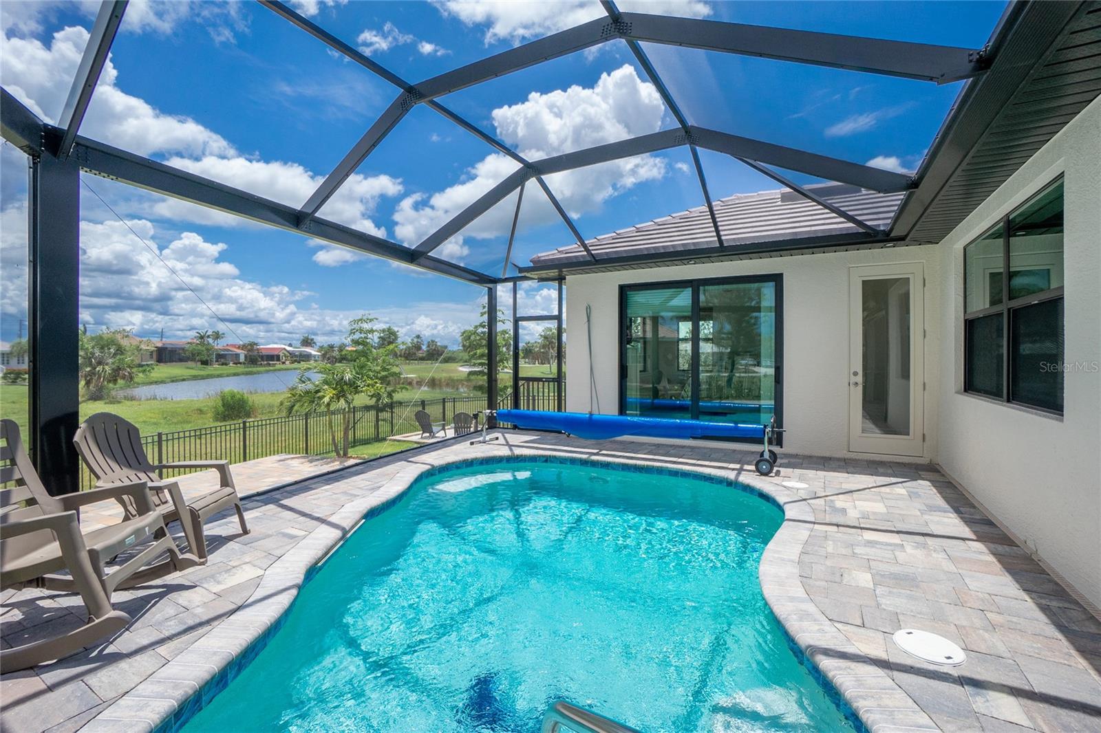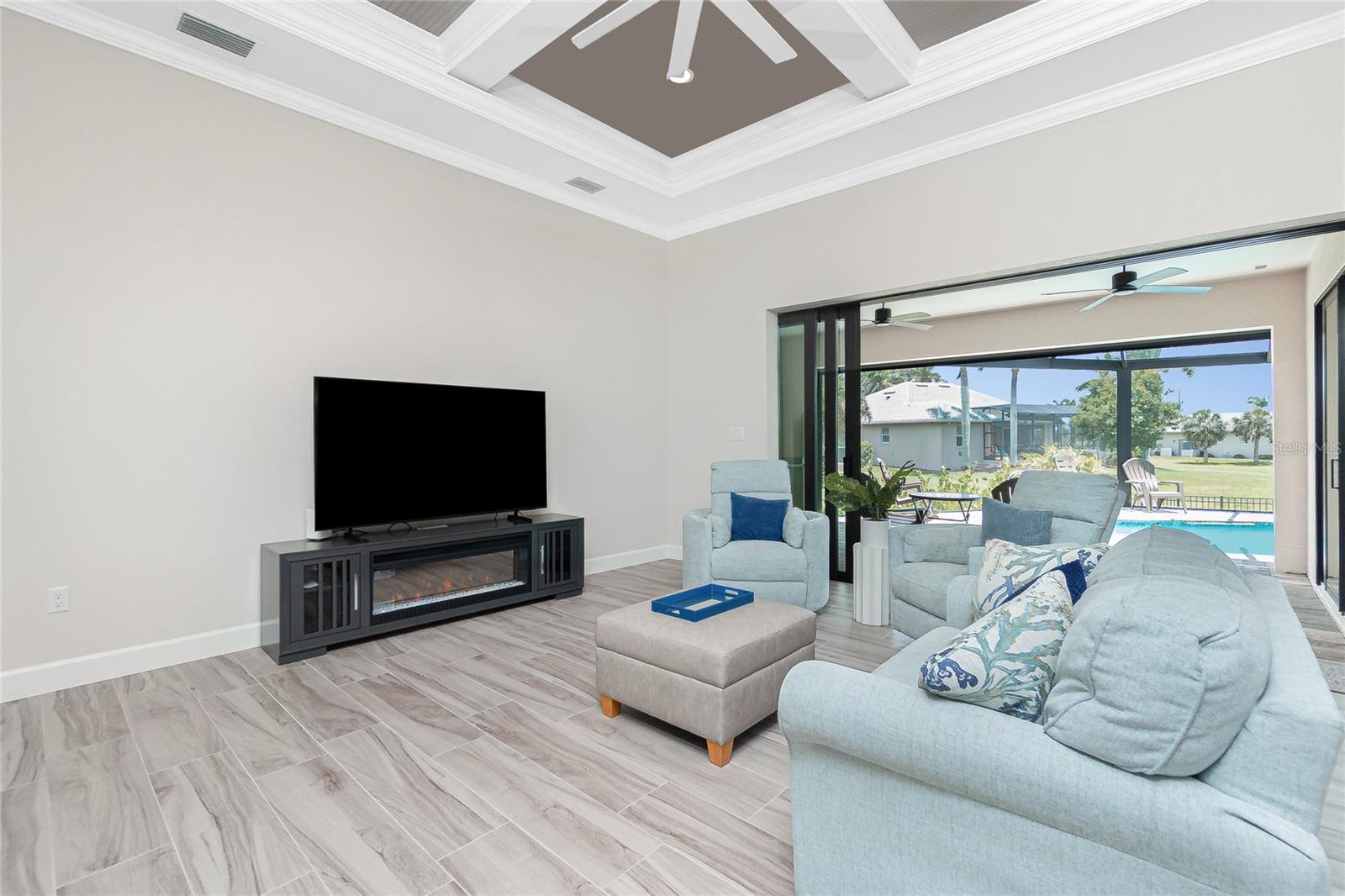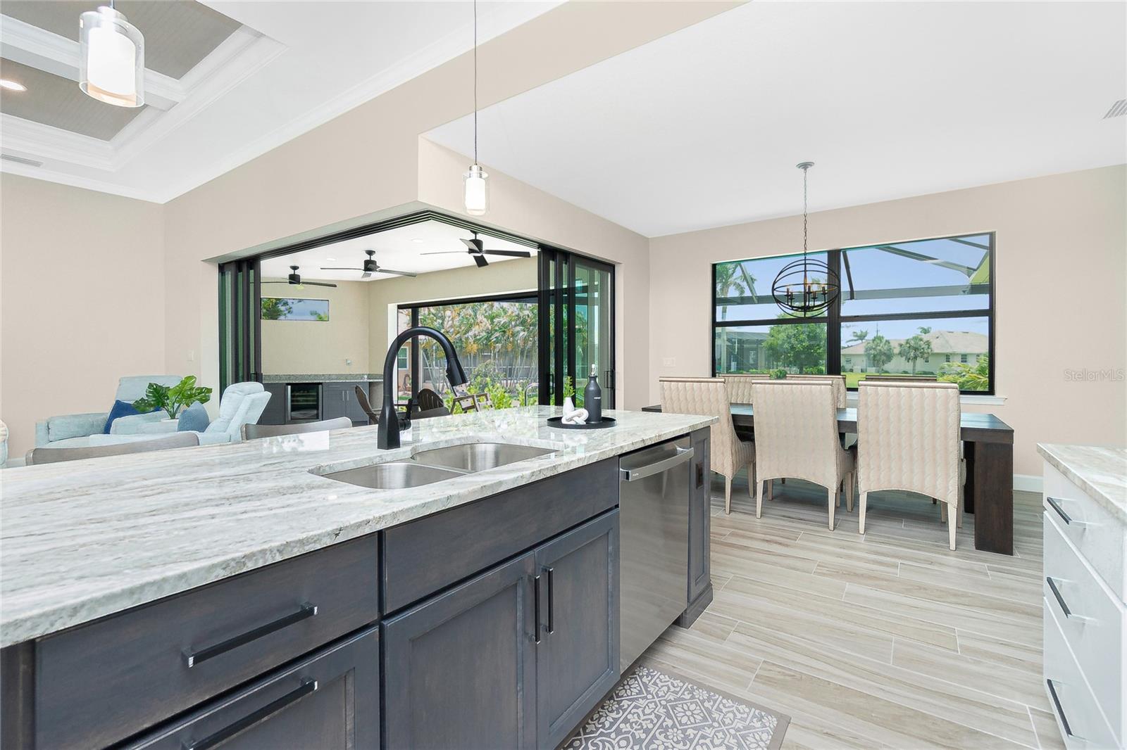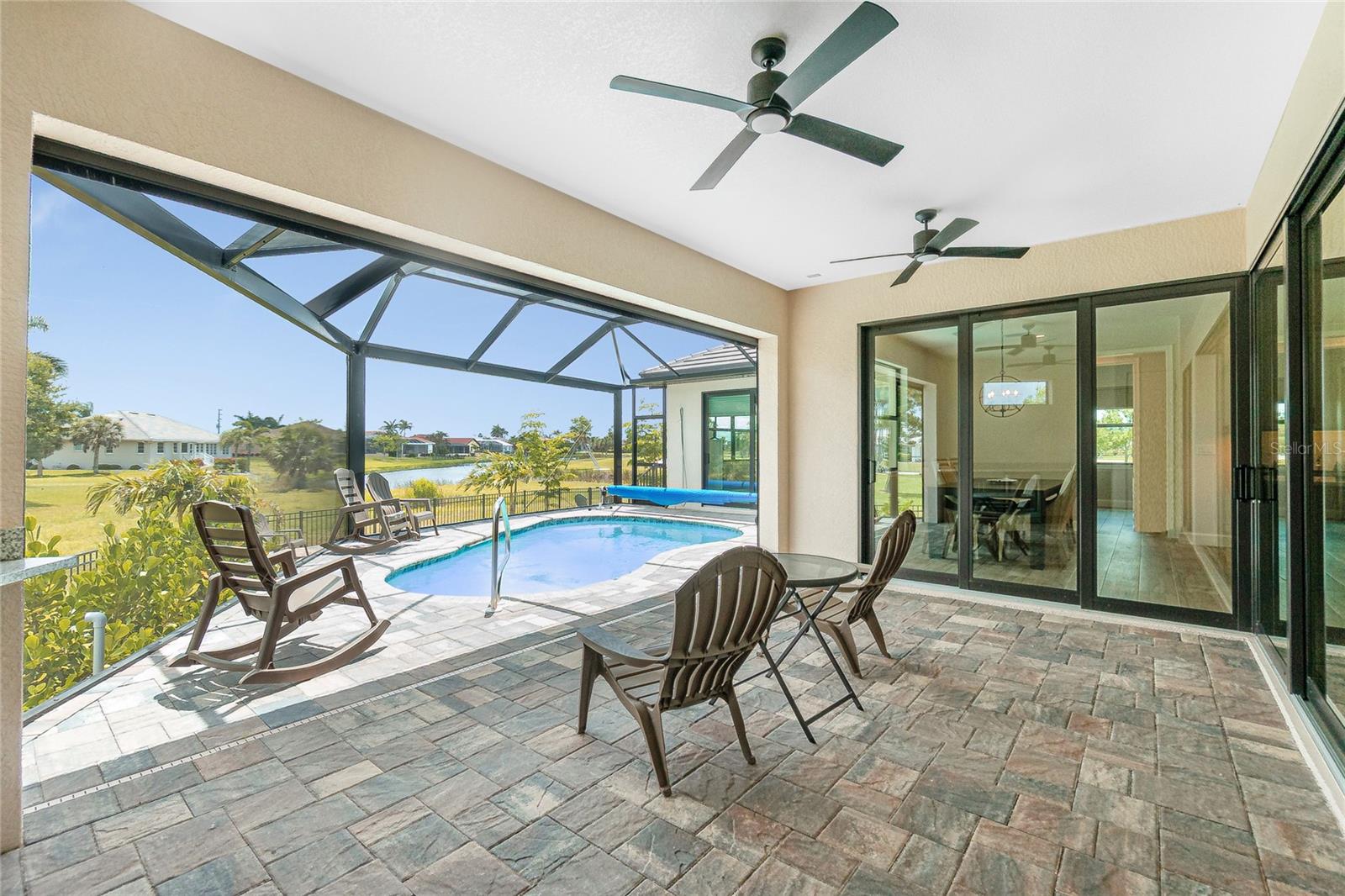 Luxury Golf Course Living with Lake Views on Twin Isles Country Club.Nestled in an unparalleled setting of tranquility and sophistication, this stunning home is a masterpiece of design and luxury living. Situated on an oversized lot, the property offers sweeping views of manicured greens and a shimmering lake that creates an ambiance of serene beauty.Step into this elegant residence as you are greeted by an open-concept layout, seamlessly blending indoor and outdoor living, with zero corner sliding glass doors. Expansive windows bathe the home in natural light. Fine details abound, from soaring coffered ceilings and custom millwork, to a chef-inspired kitchen outfitted with top-of-the-line appliances, granite countertops, a spacious island and butler pantry, perfect for entertaining. The owner's suite is a private retreat, a spa-like en suite bathroom, a large walk-in shower with rain shower head, floor to ceiling tile and sitting bench. Dual sinks with plenty of storage along with a separate makeup vanity. Dual walk-in closets with custom built-in dressers and wood shelving. With a split plan, the additional bedrooms ensure comfort and privacy for family and guests alike.Bonus office/den with beautiful double doors for privacy along with a half bathThe outdoor living area is equally impressive, featuring a covered lanai overlooking the salt water-heated pool, with picture window screening. The outdoor kitchen is ideal for entertaining. Fenced in backyard with lush landscaping, an additional large paver patio and custom-built sandbox. Imagine starting your day with coffee overlooking the tranquil lake or unwinding at sunset.Oversized garage with overhead storage. Garage floors are epoxy painted.This Home is on a 7-course stem wall, which meets the new FEMA requirements. Impact windows, except for the lanai. The lanai is protected with a Kevlar Hurricane Screen, which can be operated electronically or manually. Radiant Barrier insulation helps reduce your energy costs. This home is not just a residence; it is a lifestyle. Perfectly positioned for golfers and nature enthusiasts, and with amenities that cater to modern luxury, this property invites you to experience a life of unparalleled elegance and ease.Imagine starting your day with coffee overlooking the tranquil lake or unwinding at sunset. Don't miss this rare opportunity to own a piece of paradise on the golf course with mesmerizing views. It is conveniently located to Downtown Punta Gorda and all of its restaurants, shopping with world class fishing and boating. 10 minutes to Punta Gorda airport, the HUB for Allegiant Air.