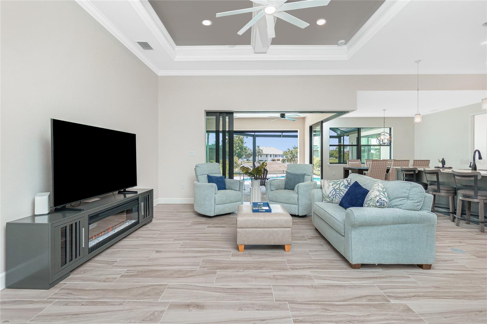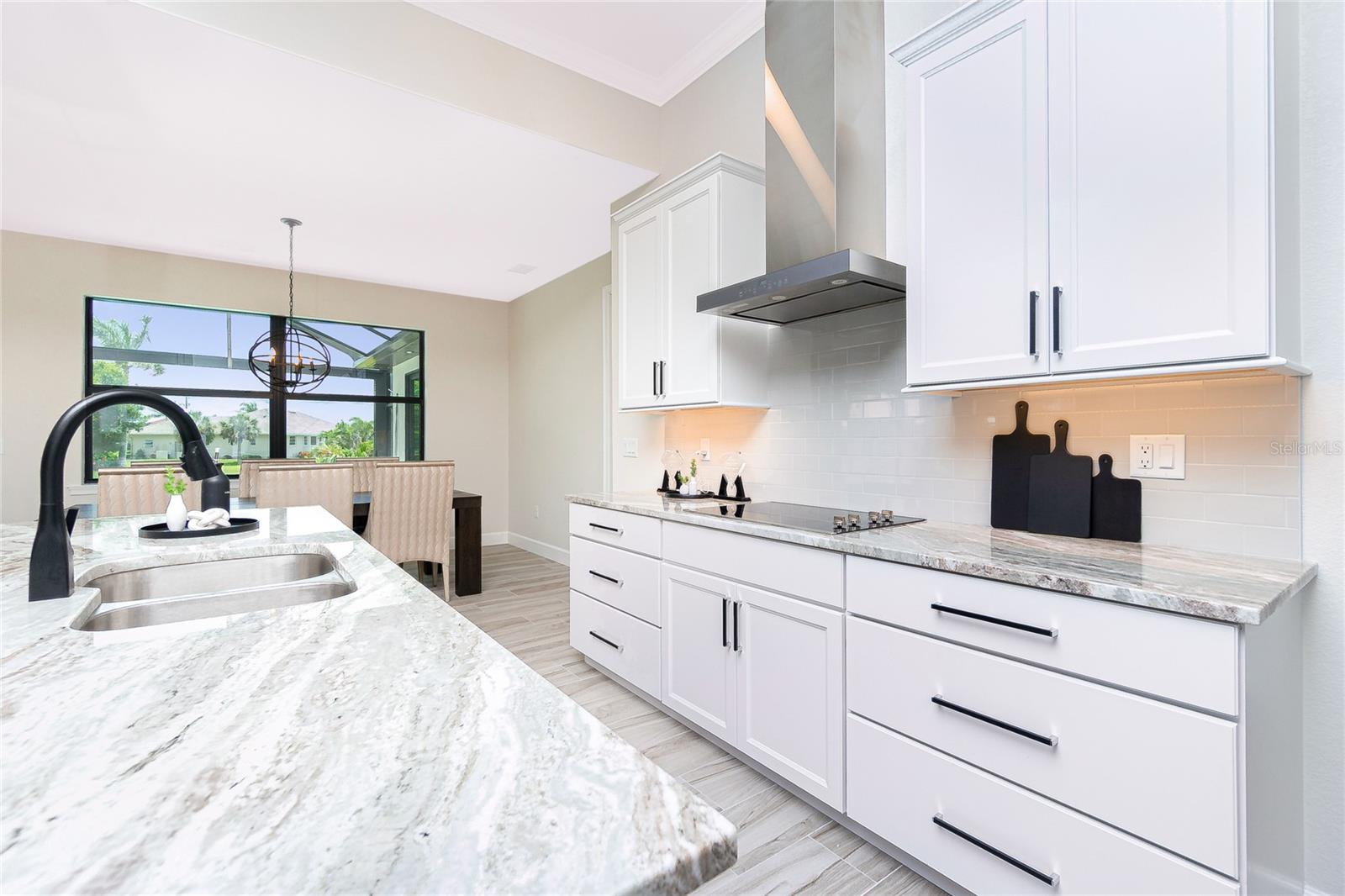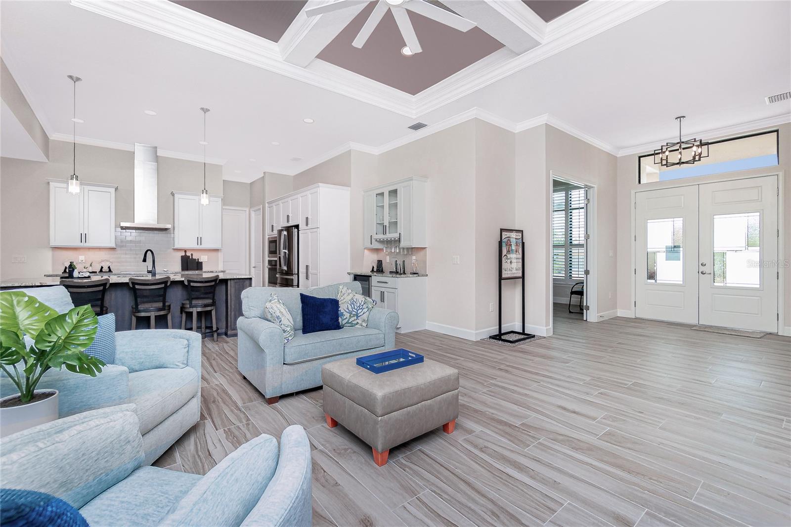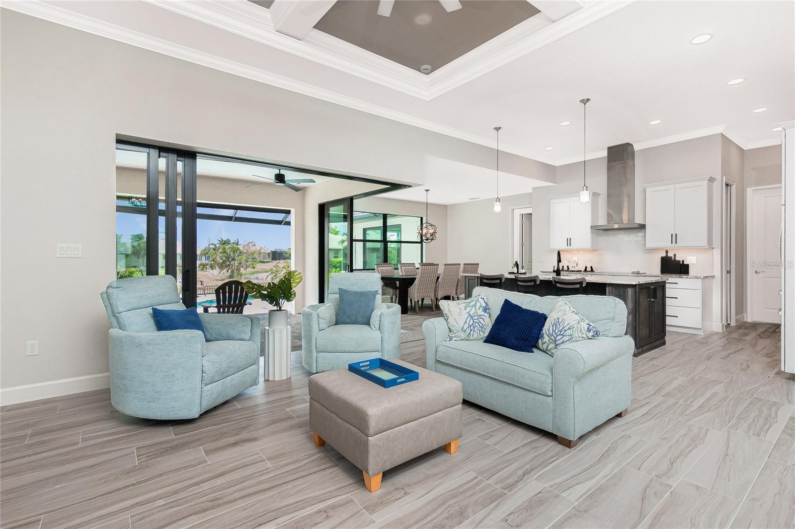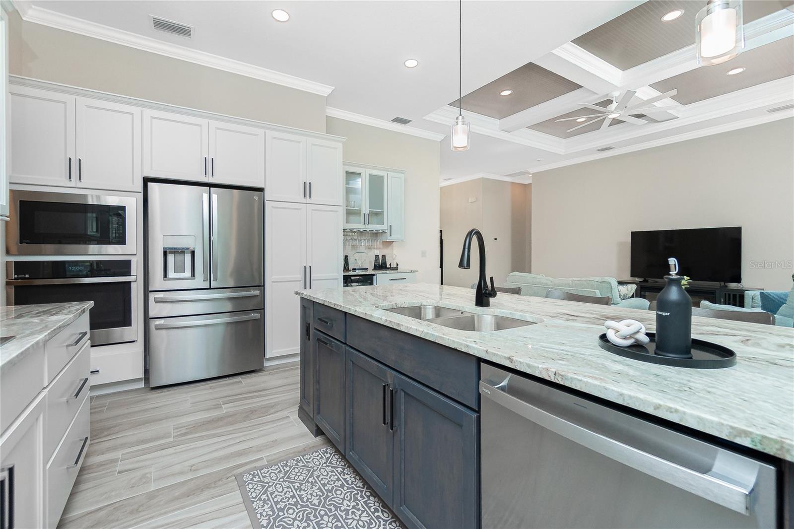 Luxury Golf Course Living with Lake Views on Twin Isles Country Club.Nestled in an unparalleled setting of tranquility and sophistication, this stunning home is a masterpiece of design and luxury living. Situated on an oversized lot, the property offers sweeping views of manicured greens and a shimmering lake that creates an ambiance of serene beauty.Step into this elegant residence as you are greeted by an open-concept layout, seamlessly blending indoor and outdoor living, with zero corner sliding glass doors. Expansive windows bathe the home in natural light. Fine details abound, from soaring coffered ceilings and custom millwork, to a chef-inspired kitchen outfitted with top-of-the-line appliances, granite countertops, a spacious island and butler pantry, perfect for entertaining. The owner's suite is a private retreat, a spa-like en suite bathroom, a large walk-in shower with rain shower head, floor to ceiling tile and sitting bench. Dual sinks with plenty of storage along with a separate makeup vanity. Dual walk-in closets with custom built-in dressers and wood shelving. With a split plan, the additional bedrooms ensure comfort and privacy for family and guests alike.Bonus office/den with beautiful double doors for privacy along with a half bathThe outdoor living area is equally impressive, featuring a covered lanai overlooking the salt water-heated pool, with picture window screening. The outdoor kitchen is ideal for entertaining. Fenced in backyard with lush landscaping, an additional large paver patio and custom-built sandbox. Imagine starting your day with coffee overlooking the tranquil lake or unwinding at sunset.Oversized garage with overhead storage. Garage floors are epoxy painted.This Home is on a 7-course stem wall, which meets the new FEMA requirements. Impact windows, except for the lanai. The lanai is protected with a Kevlar Hurricane Screen, which can be operated electronically or manually. Radiant Barrier insulation helps reduce your energy costs. This home is not just a residence; it is a lifestyle. Perfectly positioned for golfers and nature enthusiasts, and with amenities that cater to modern luxury, this property invites you to experience a life of unparalleled elegance and ease.Imagine starting your day with coffee overlooking the tranquil lake or unwinding at sunset. Don't miss this rare opportunity to own a piece of paradise on the golf course with mesmerizing views. It is conveniently located to Downtown Punta Gorda and all of its restaurants, shopping with world class fishing and boating. 10 minutes to Punta Gorda airport, the HUB for Allegiant Air.