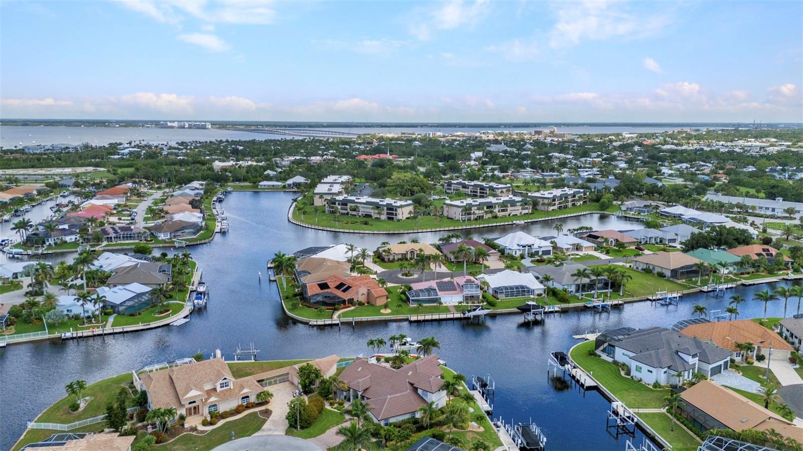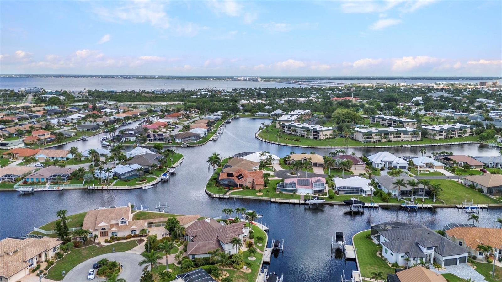 Experience the ultimate Florida waterfront lifestyle at this luxurious Punta Gorda Isles estate. Situated on a premier tip lot with 150 feet of intersecting canal frontage, two docks with boat lifts, and just 13 minutes under the Marion Street bridge to Charlotte Harbor. This is the perfect playground for boating, fishing, and outdoor living. Spanning over 2,900 square feet, this custom home features 3 bedrooms, 3 baths, a versatile loft with two balconies, soaring vaulted ceilings, plantation shutters, and designer fixtures throughout. Recent upgrades include a brand-new roof, two new water heaters, new balcony decking, boundary survey, and elevation certificate -- all move-in ready. Enter your private resort with a saltwater pool and spa, stunning upgraded decking, and panoramic balconies. The spacious primary suite offers ultimate comfort, while the chef's kitchen, large den, and bonus room provide endless possibilities for relaxation and entertainment. An oversized garage and a private guest wing with water views complete this exceptional offering.For peace of mind the home boasts roll down and accordion shutters.Located close to Fisherman's Village and Downtown Punta Gorda, this home delivers prime boating, fishing, and outdoor adventures -- all in a waterfront location where sellers report no history of flooding. Live the waterfront dream in your new personal resort home.