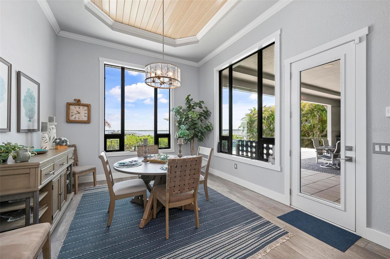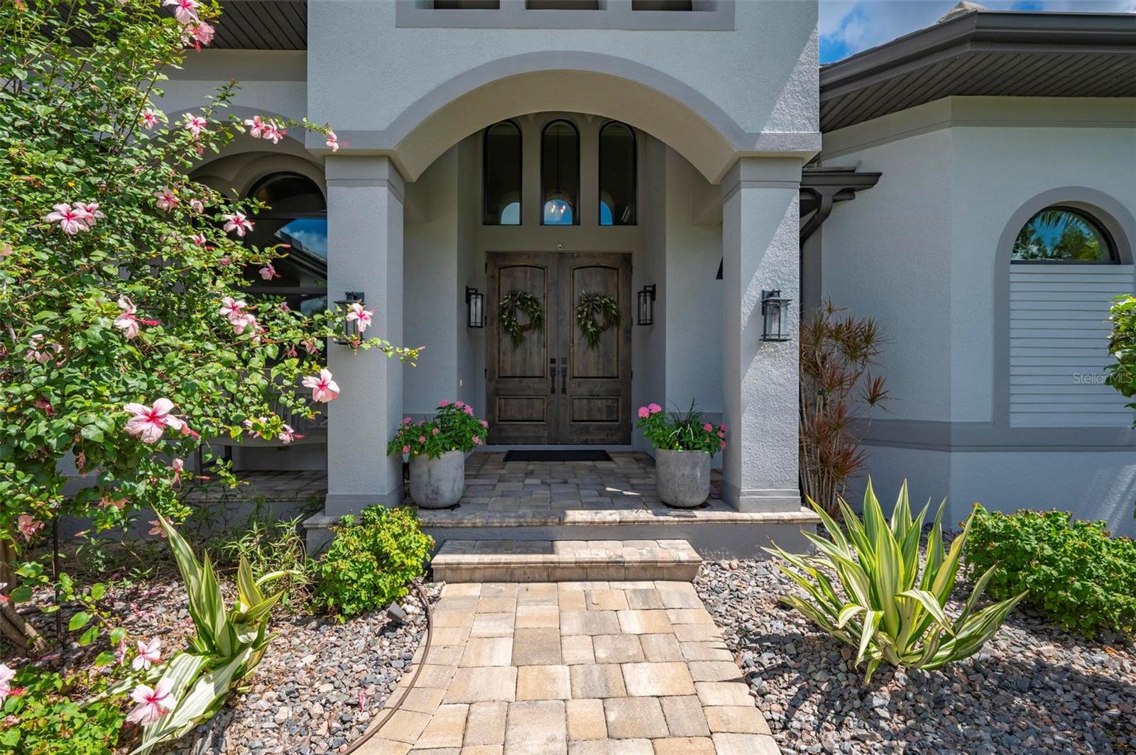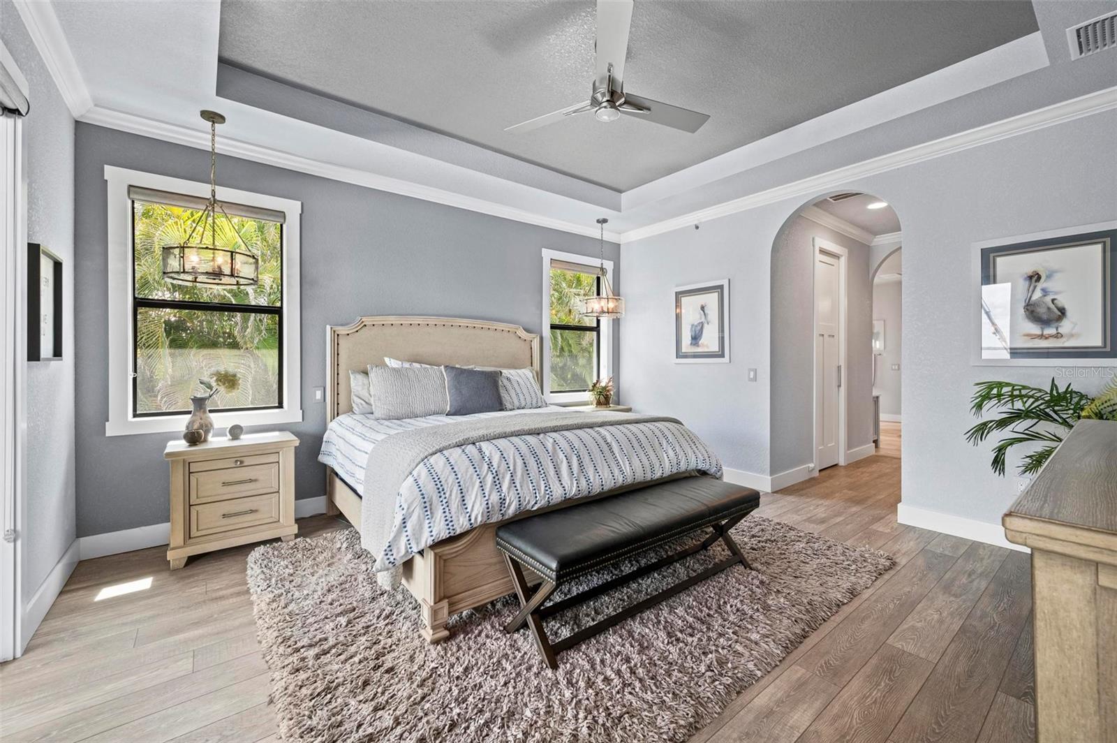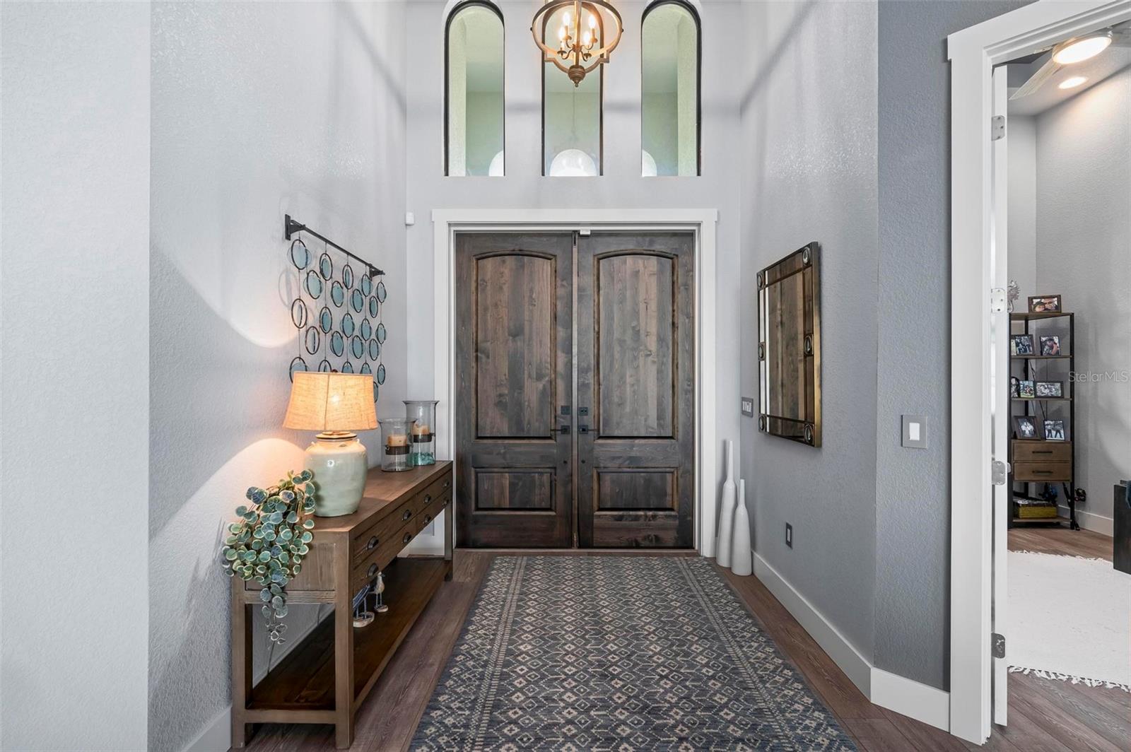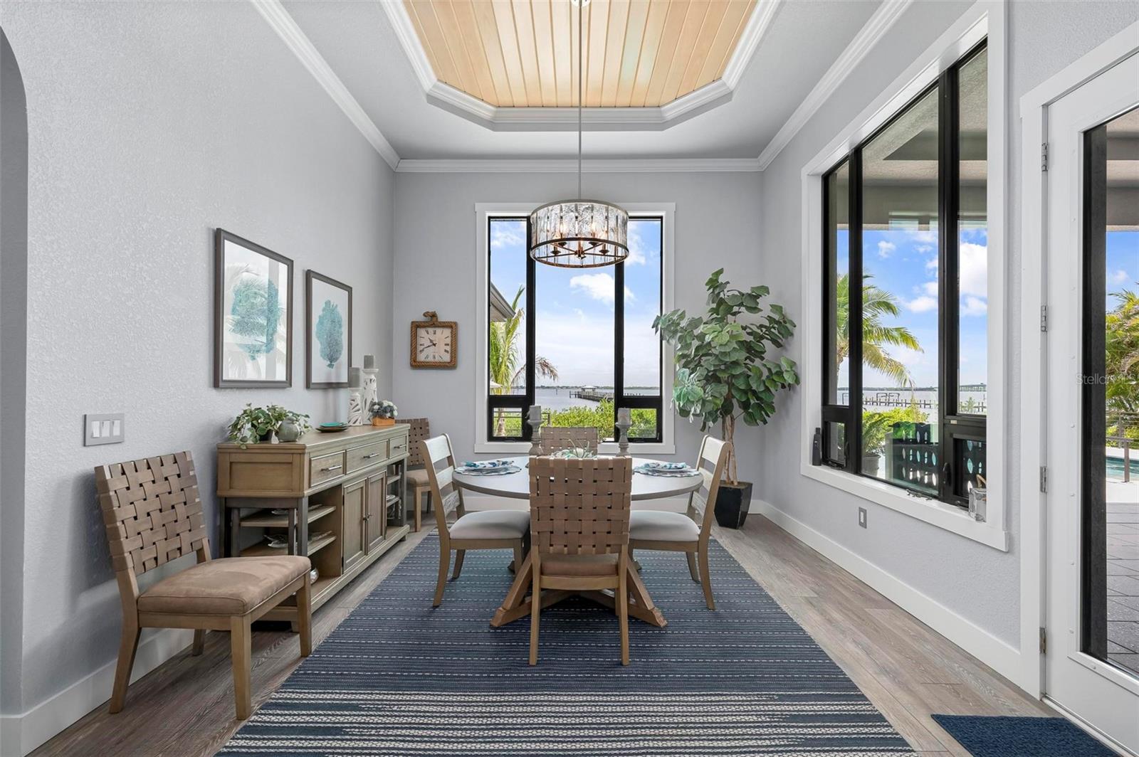 Stunning custom designed, gulf access pool home with unobstructed waterfront views of Charlotte Harbor on a large 1 acre lot. This gorgeous 2019 built home boast 3 bedrooms + den, 3.5 baths and an oversized 3 car garage. As you arrive, the winding concrete circular driveway welcomes you to a raised entry with custom 10ft doors. Step inside and your eyes will be immediately drawn to the expansive water view of Charlotte Harbor. Interior features include 14ft coffered ceiling in the great room with full pocket sliders to the huge 35x15 covered lanai with outdoor kitchen, outdoor shower, infinity edge pool and attached hot tub placed perfectly to view the open water. The kitchen offers high quality cabinets with quartz counter tops, center island, cook top, oven and microwave. The Primary Bedroom boasts open water views, double walk in closets and a dream 19x15 en suite with double vanities and roman style shower. Guest bedroom 2 also has open water views and an en suite that doubles as the pool bath. The large indoor laundry room has attached 16x11 bonus/craft room. The large 33ft wide and 23ft deep 3 car garage provides ample space for large SUV's or workshop. For boating access to Charlotte Harbor and the Gulf there is a deeded 600ft dock extending out into the Peace River.
