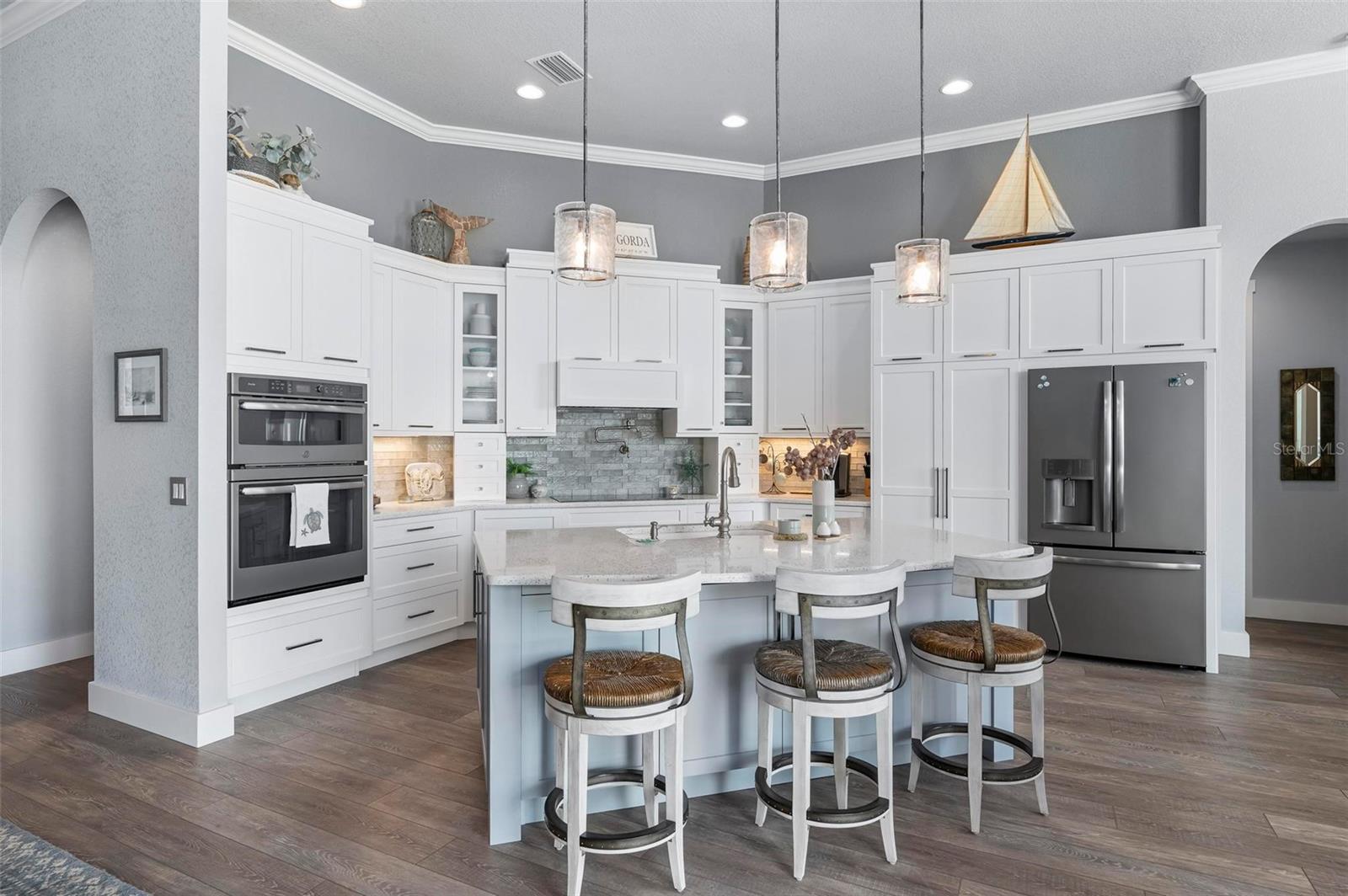 Appliances: Bar Fridge, Built-In Oven, Convection Oven, Cooktop, Dishwasher, Disposal, Dryer, Exhaust Fan, Gas Water Heater, Microwave, Range, Refrigerator, Washer, Wine Refrigerator