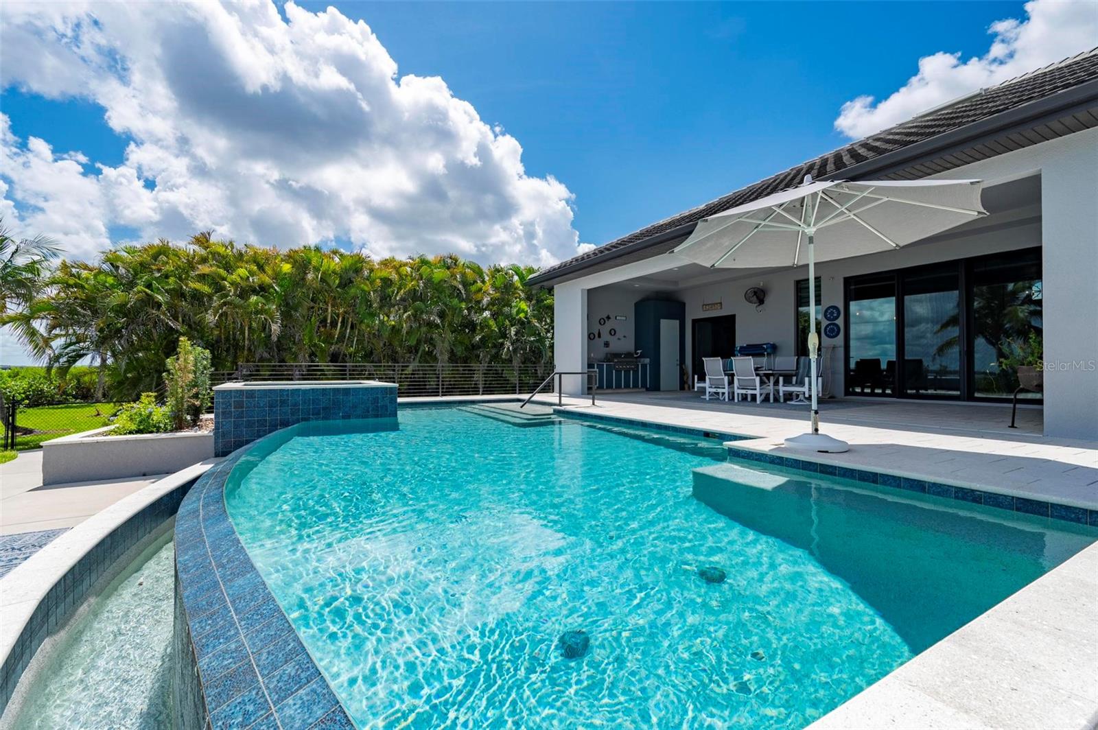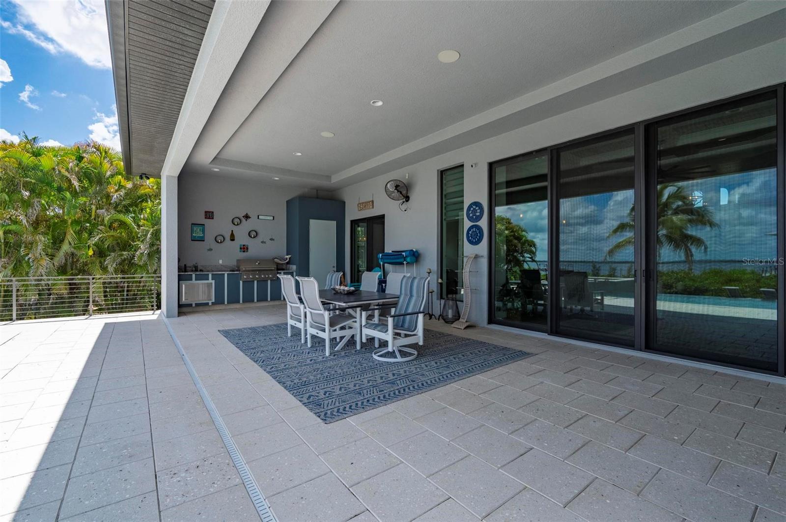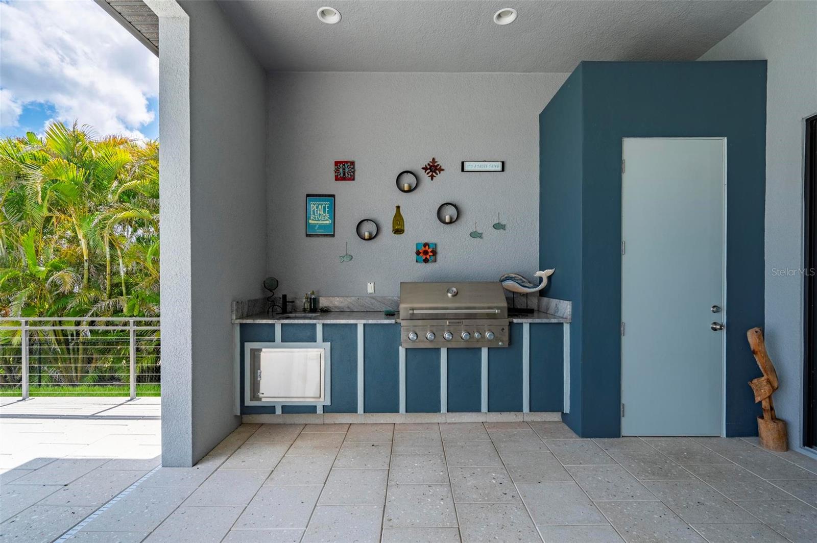 Exterior: Outdoor Kitchen, Outdoor Shower, Rain Gutters, Sliding Doors