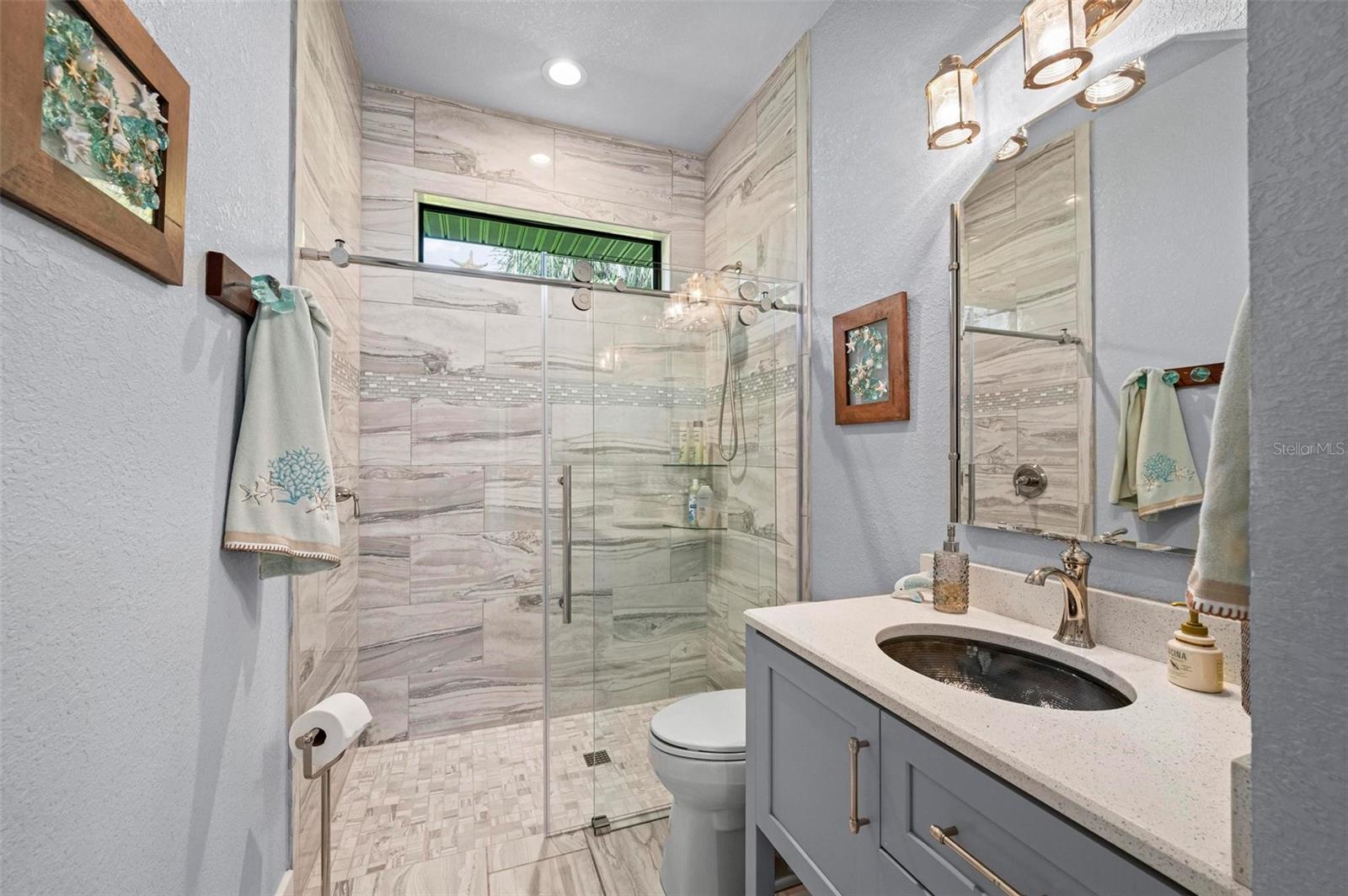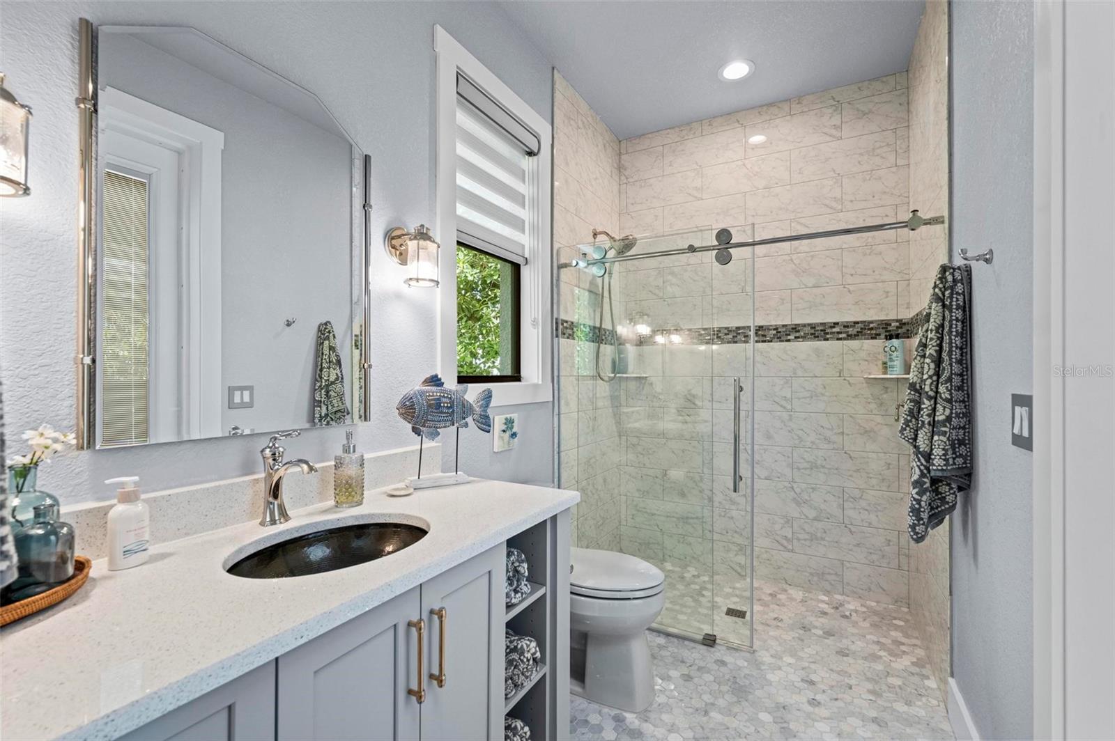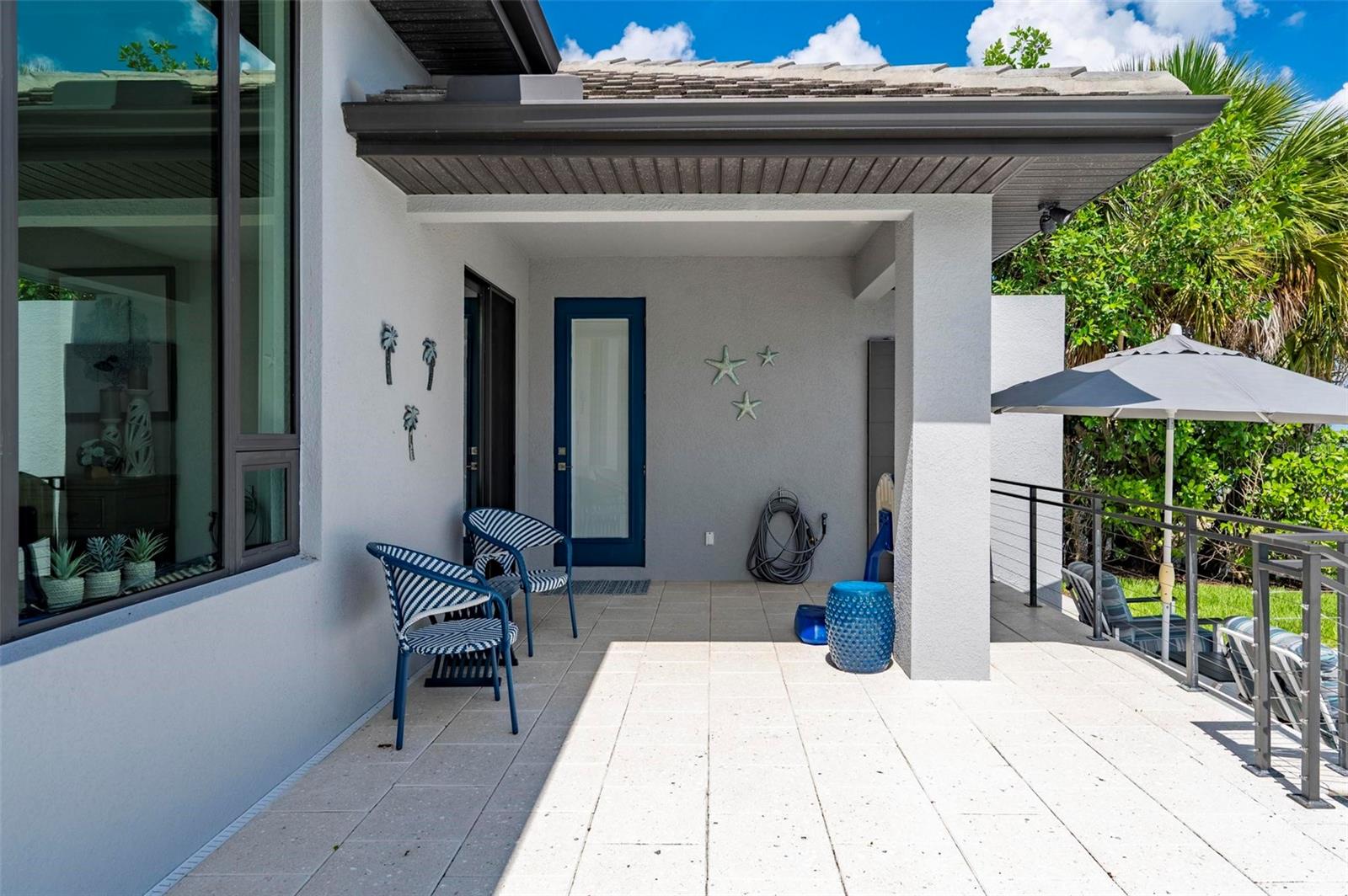 Exterior: Outdoor Kitchen, Outdoor Shower, Rain Gutters, Sliding Doors