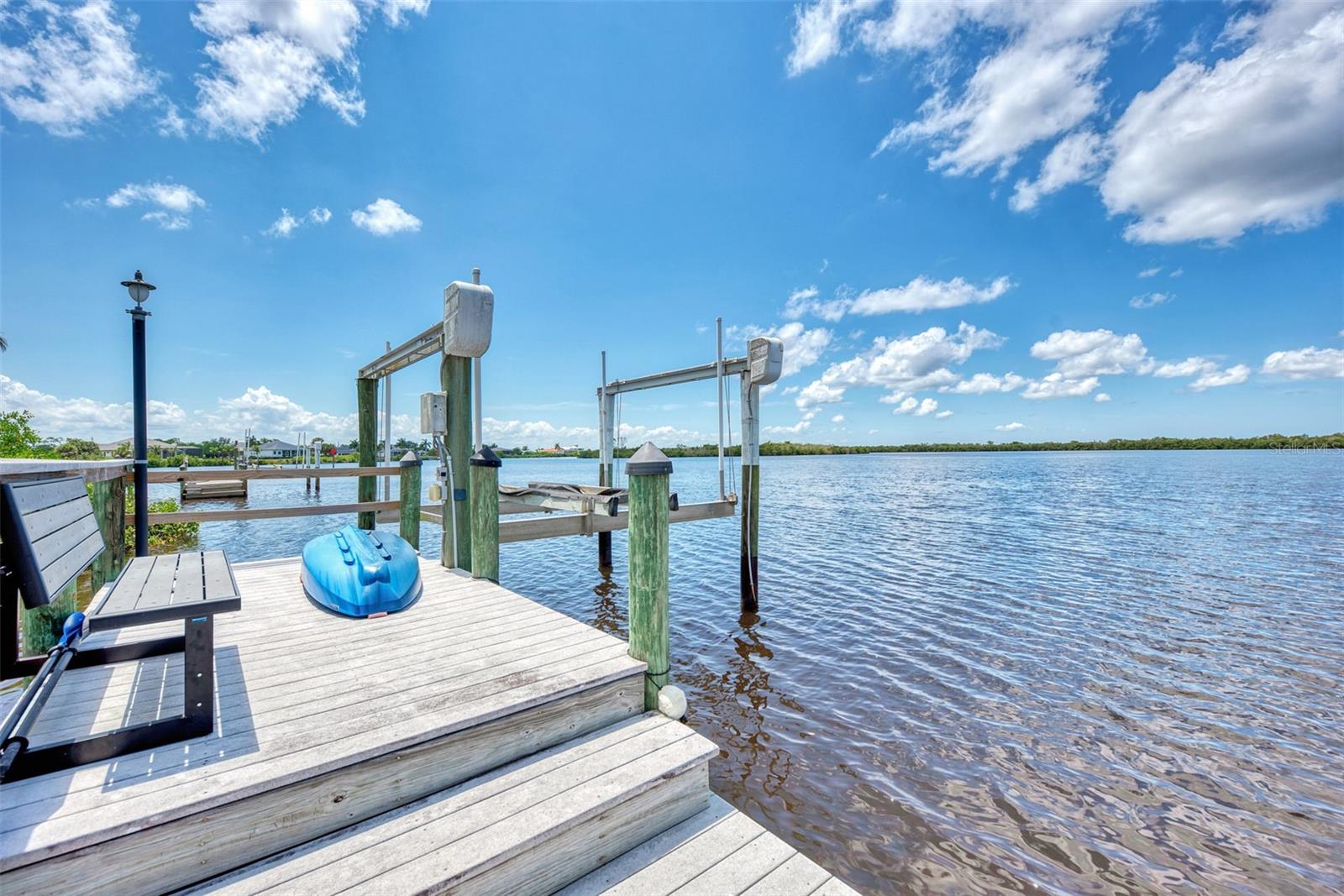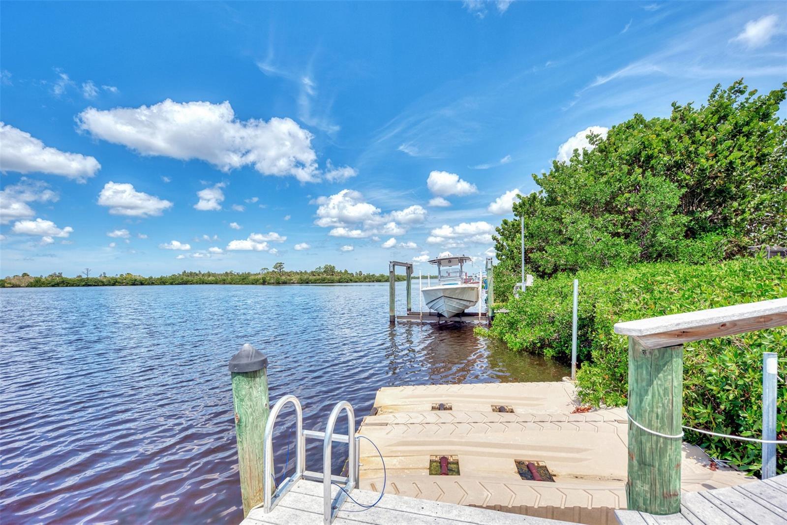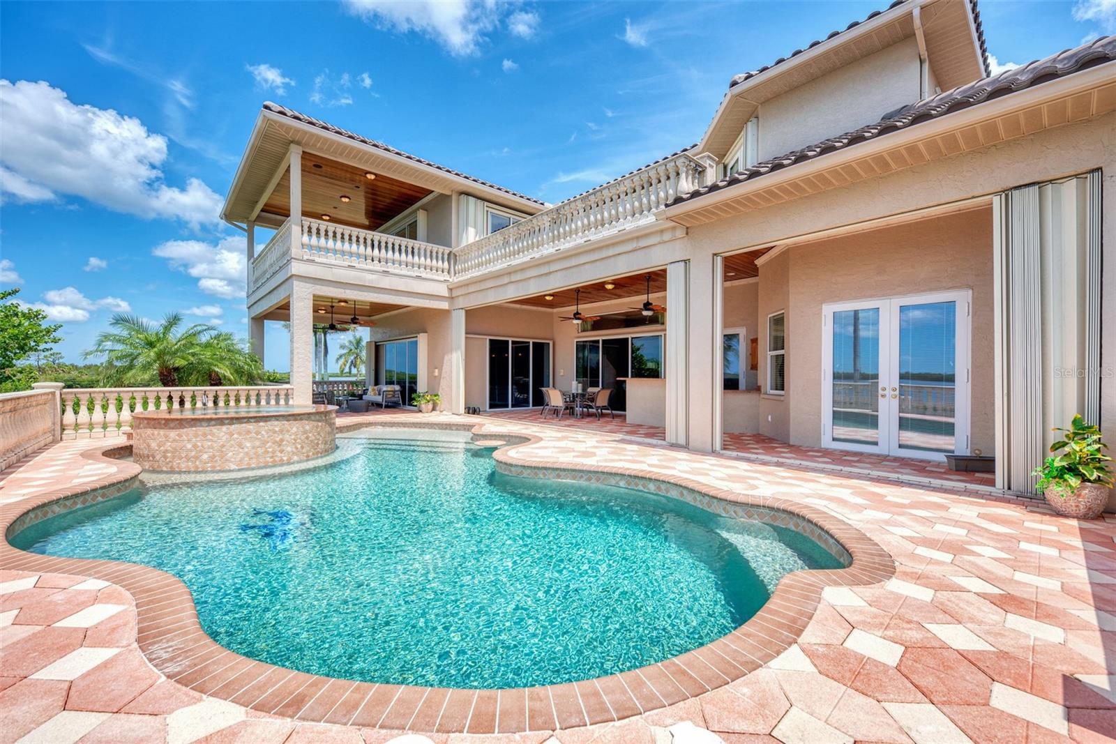 Most Elegant & Sophisticated SAILBOAT ACCESS 2-story Mediterranean style estate pool & spa home offering 4 bds., 3.5 baths, and 3 car garage (Tesla hook-up) & over 5300 sq.ft. of luxury living! This home is located on almost 1 acre, directly on the Manchester waterway with a private NEW boat dock, 10,000 pound boat lift & concrete seawall that leads out to the Gulf of Mexico. NEW soffits and fascia all around the home! Once through the iron gate (NEW keypad), you'll drive down the beautifully landscaped circular driveway to the gorgeous fountain in the center. Tall mature palms and lush green landscaping take you to the elevated front entrance. This home is in South Bayview estates, an area of upscale waterfront homes w/ a fee of only $60/yr. You'll love the expansive view of blue waters from everywhere in the home! On the 1st floor you'll find travertine marble flooring, marble columns, crown molding, soaring ceilings & a beautiful marble fireplace. The pool has been newly surfaced with coral reef & dolphin design and features a spa, swim up table & sun shelf area. The patio also features an outside summer kitchen! The chef's kitchen is equipped with a center island w/built-in sink & wine refrigerator. Enjoy granite countertops & large breakfast bar, 42' cherry wood cabinetry, tumbled marble backsplash, sub zero refrigerator, wolf stove top with pot filler & Cafe stainless steel appliances. The kitchen overlooks the family room w/wood accent lighted tray ceiling! The master bd. is 14x29 w/double tray ceilings, sitting area, his & hers closets, plenty of storage w/built-in cabinetry & shelving, double French doors leading out to the pool patio w/ peaceful waterfront & swaying palm trees! The master bath comes w/ jacuzzi tub with jets, dual granite vanities & two sided entry to the walk in shower with dual shower heads & seat. Right down the hall is a guest bath w/ granite countertops, sink w/dolphin head faucet, cherry wood cabinet, seascape mural, walk-in shower & frosted glass door leading to the pool! Enjoy working in the upgraded office w/built in oak desk, bookshelves & upgraded octagon ceiling w/wood design & upgraded paddle fan. On the 1st floor you'll find a large inside utility rm w/granite countertop, built-in cabinetry & sink, crown molding & front load washer/dryer. The oak & wrought iron staircase will lead you to the 2nd floor where you'll find a 2nd master suite w/ private bath & entry to the 2nd patio. Upstairs you'll also find the 3rd & 4th bedroom, a large game rm, exercise rm & best of all the movie rm with 7 leather reclining movie chairs, granite serving station w/ built-in sink, large movie projection screen, speakers, projector & half bath! The great rm & exercise rm both lead to the 2nd floor balcony patio w/built-in fireplace & wood ceiling! The great room is being used as a recreation room & offers a built-in wet sink, beverage cooler & cabinetry. Top & bottom patios have concrete spindles (balustrades) bordering both outside patios! Extra upgrades include: new pool heater, central vacuum, intercom & security system, in wall pest control, 2 mana bloc systems, mosquito mist around exterior, 3 air conditioning units (1 newer), 5 cat wiring w/separate unit, Sonos sound system wired throughout, water softener, new tile slate roof (2021), accordion & clear hurricane shutters & more! Per seller, home has never flooded or had any leaks from hurricanes! Location is minutes to downtown Punta Gorda shops & restaurants!