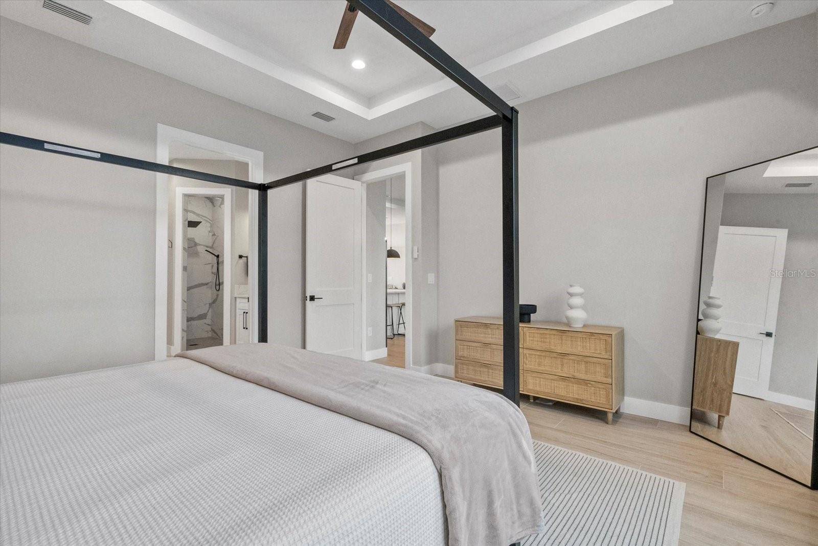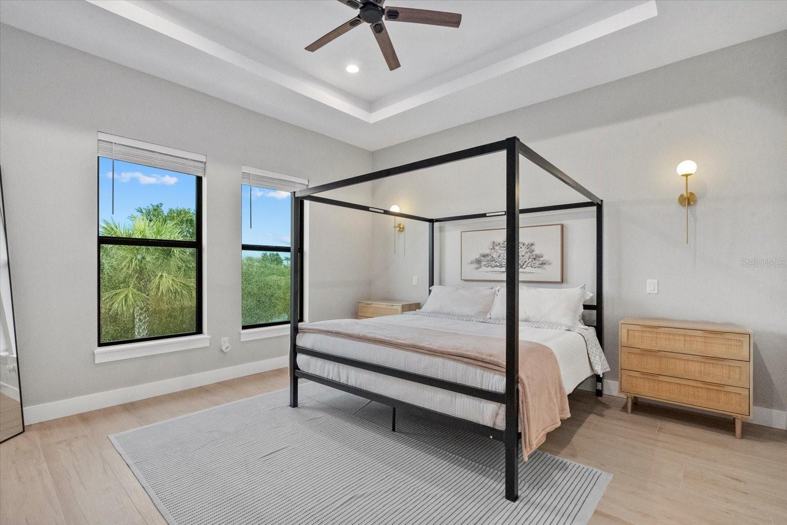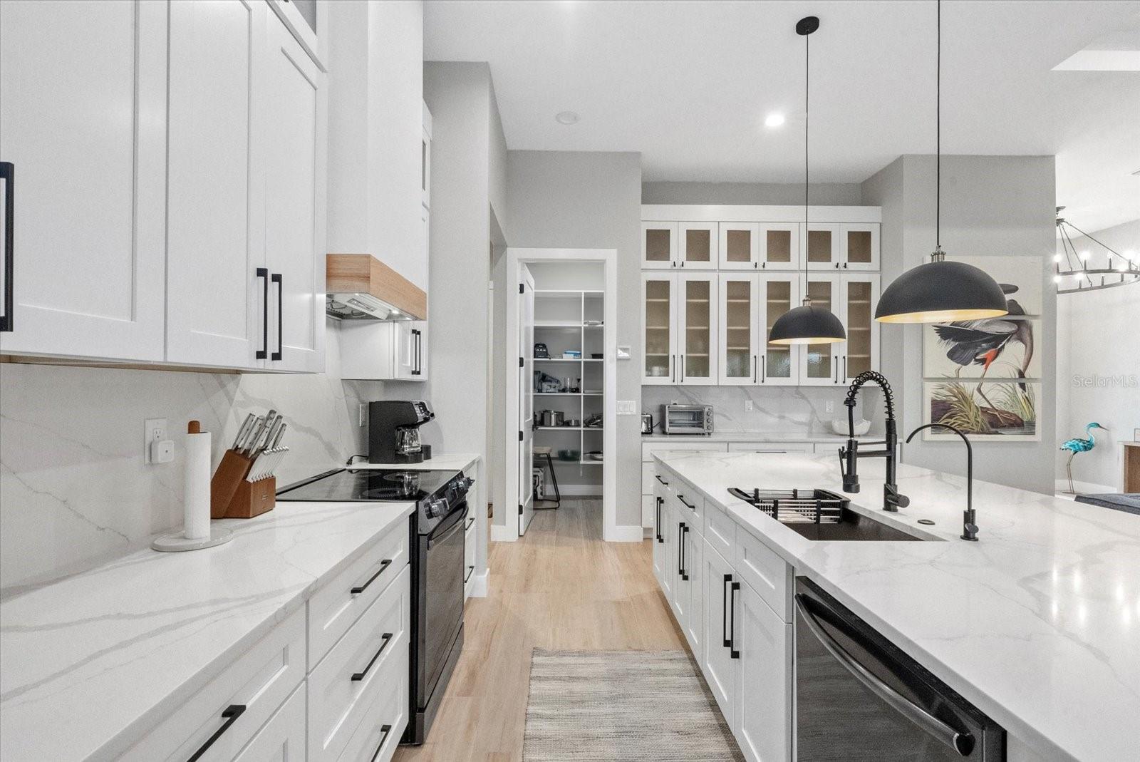 Newly built in 2024 and move-in ready! This stunning WATERFRONT home with GULF ACCESS is packed with high-end features and modern coastal charm. Offering 3 bedrooms + a den, 3 bathrooms, and 2,166 sq ft of living space, the home is built on a 4-course stem wall for added elevation and features IMPACT WINDOWS AND DOORS throughout. A grand entrance welcomes you with modern GLASS DOUBLE DOORS, leading into a bright and airy space with SOARING CEILINGS, 8' INTERIOR DOORS, and wood-look plank TILE flooring that flows seamlessly throughout. The chef's kitchen is a showstopper, featuring QUARTZ COUNTERTOPS with a WATERFALL feature on the island, soft-close cabinetry, and a WALK IN PANTRY with built-in shelving--perfect for both function and style. The primary suite is a true retreat, featuring spacious walk-in closets and a spa-inspired en-suite bathroom with designer tile, a DOUBLE VANITY, and a luxurious walk-in TILED shower. The split floor plan ensures privacy, with two additional bedrooms located on the opposite side of the home--one of which includes its own private en-suite bath, ideal for guests or multigenerational living.The home also features a pavered driveway, pavered walkway all around the home, canal-fed irrigation system, and gutters all around the home for added function and curb appeal. Step outside to take in breathtaking canal views and embrace the best of Florida living--boating, fishing, kayaking, or simply relaxing in the peace and privacy of your own turnkey waterfront retreat. Nestled in the sought-after boating community of South Gulf Cove, this location offers direct access to the Gulf and is just minutes from world-class beaches, top-rated golf courses, and some of the best fishing in Southwest Florida. With an optional HOA of just $120/ year, South Gulf Cove combines relaxed coastal living with unbeatable convenience--a true hidden gem for waterfront lifestyle seekers.