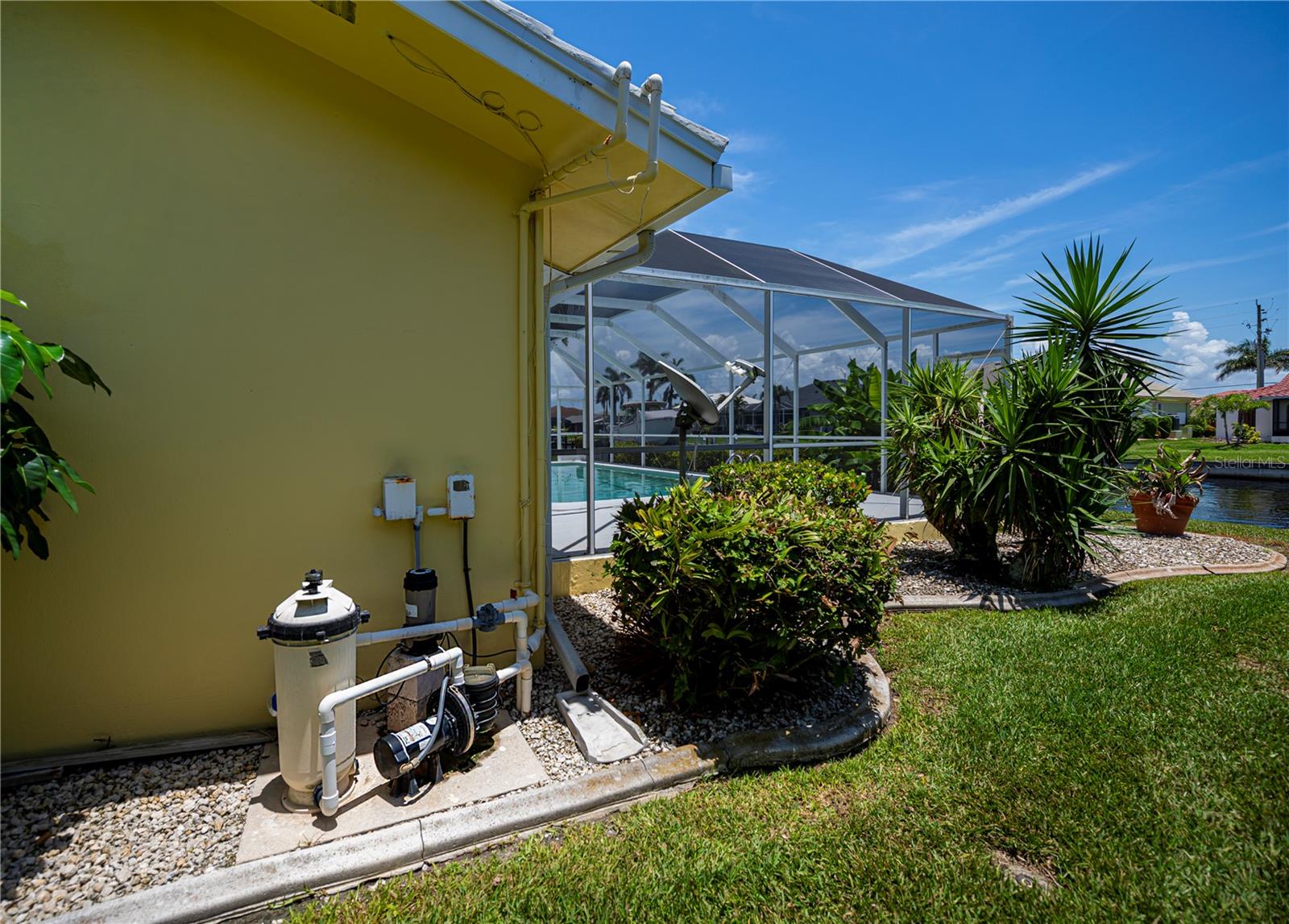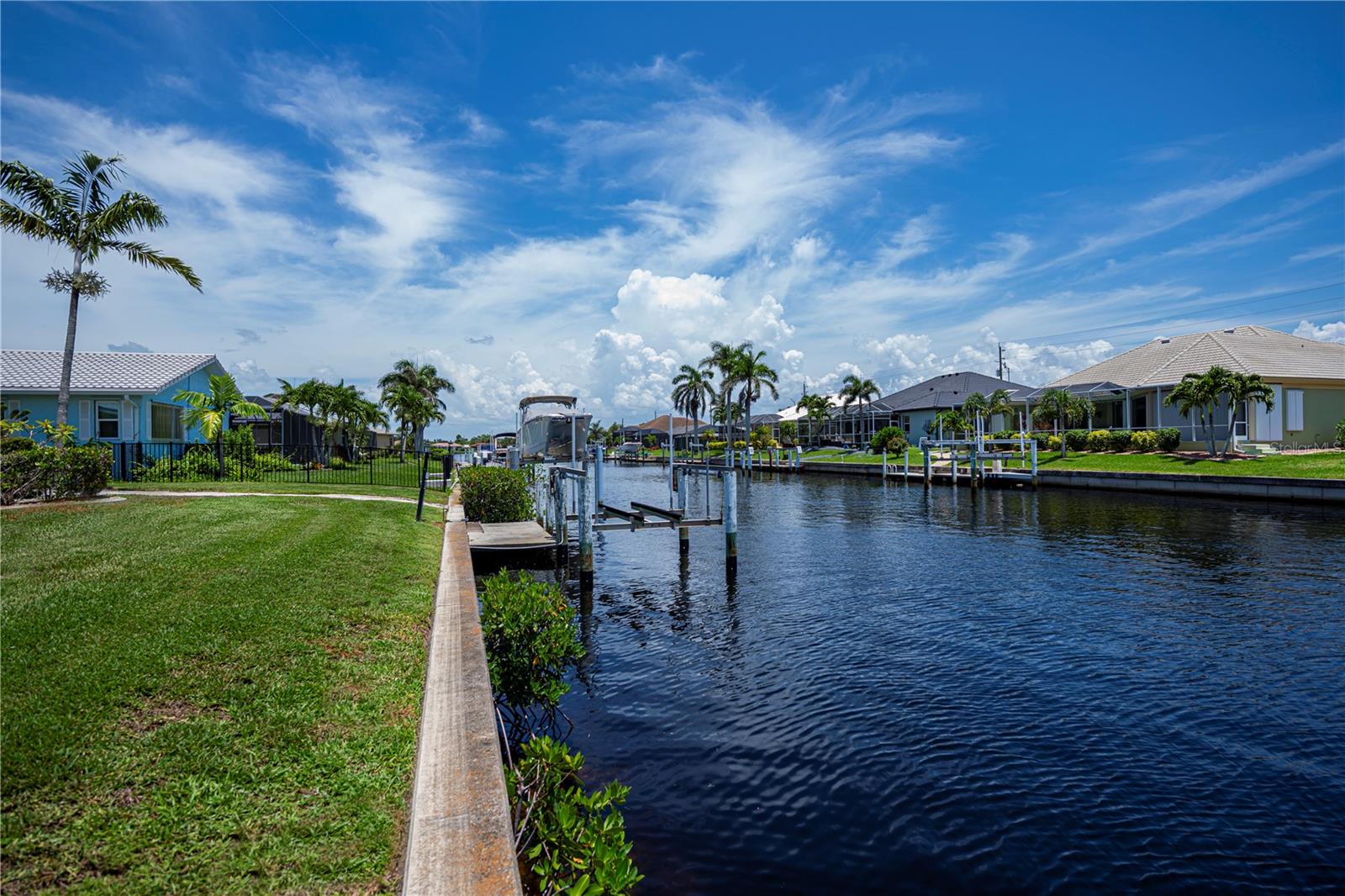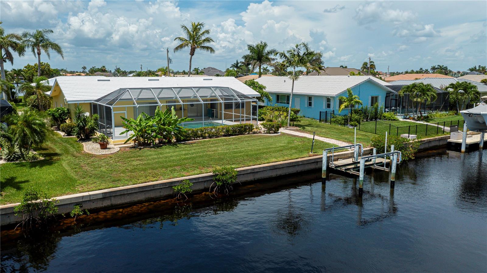 Your own piece of paradise is right here in this beautifully updated, super clean, waterfront, pool home! NO water damage from recent hurricanes, this home features a 2025 tile roof, PGT impact-resistant windows, and pool pump. Tile flooring throughout, newly painted inside & out, and stunning custom resin countertops in the updated kitchen, bonus interior dry bar area, and lanai. This inviting split bedroom floor plan home has been lovingly & tastefully updated with a newly renovated primary ensuite bathroom. This home boasts lots of thoughtful care from the lush, landscaped lawn and backyard and carries through to every room inside. New front & garage doors and Square D replaced main electric panel box. The lanai and large pool are perfect after your day on the water! What are you waiting for: the boat dock & lift need you & your boat! Call for your private showing today. YOU MAY PREVIEW THIS STUNNING HOME BY CLICKING ON THE FIRST LINK.