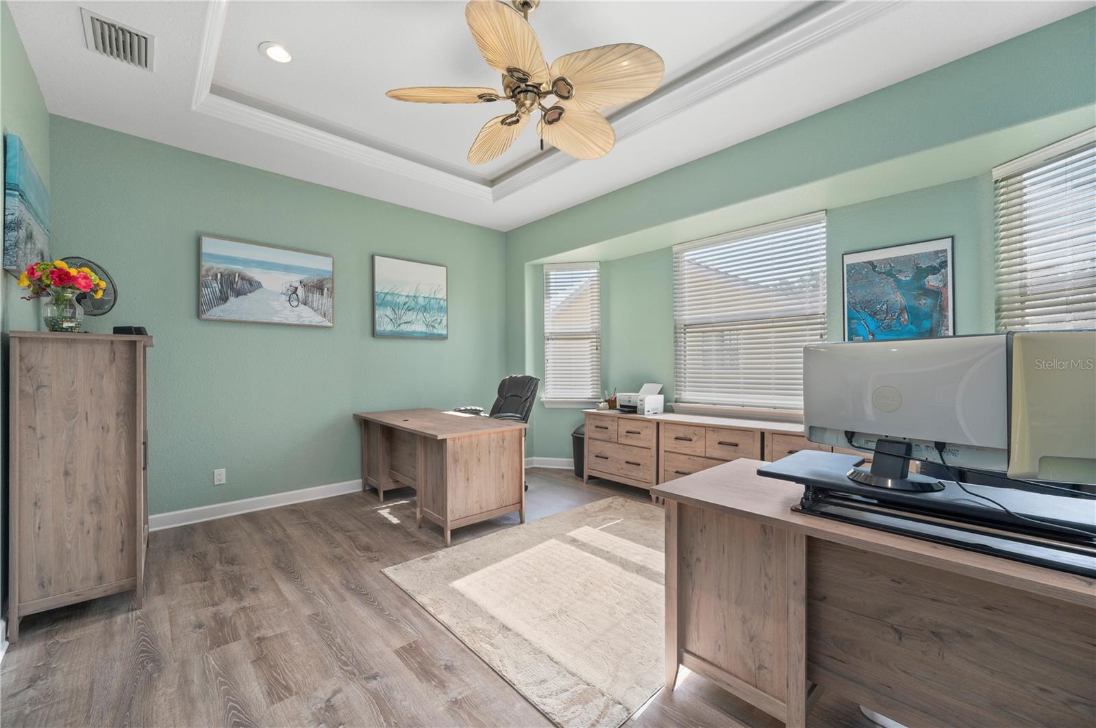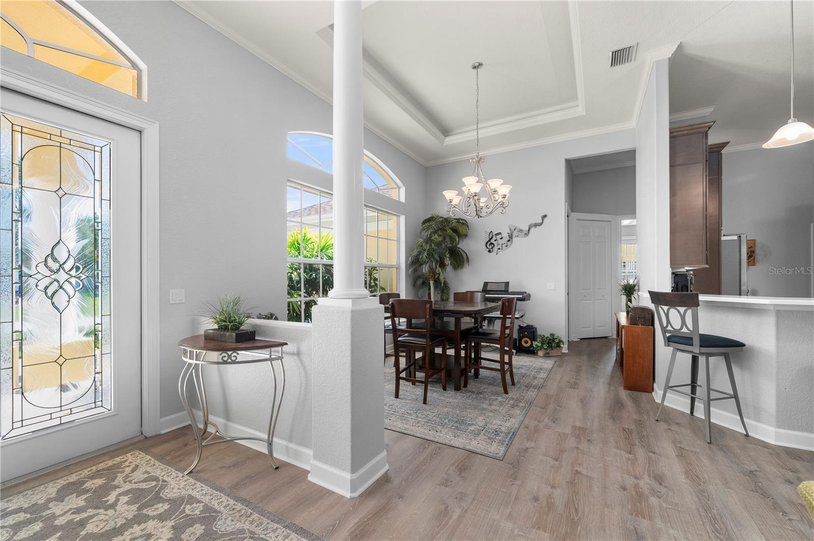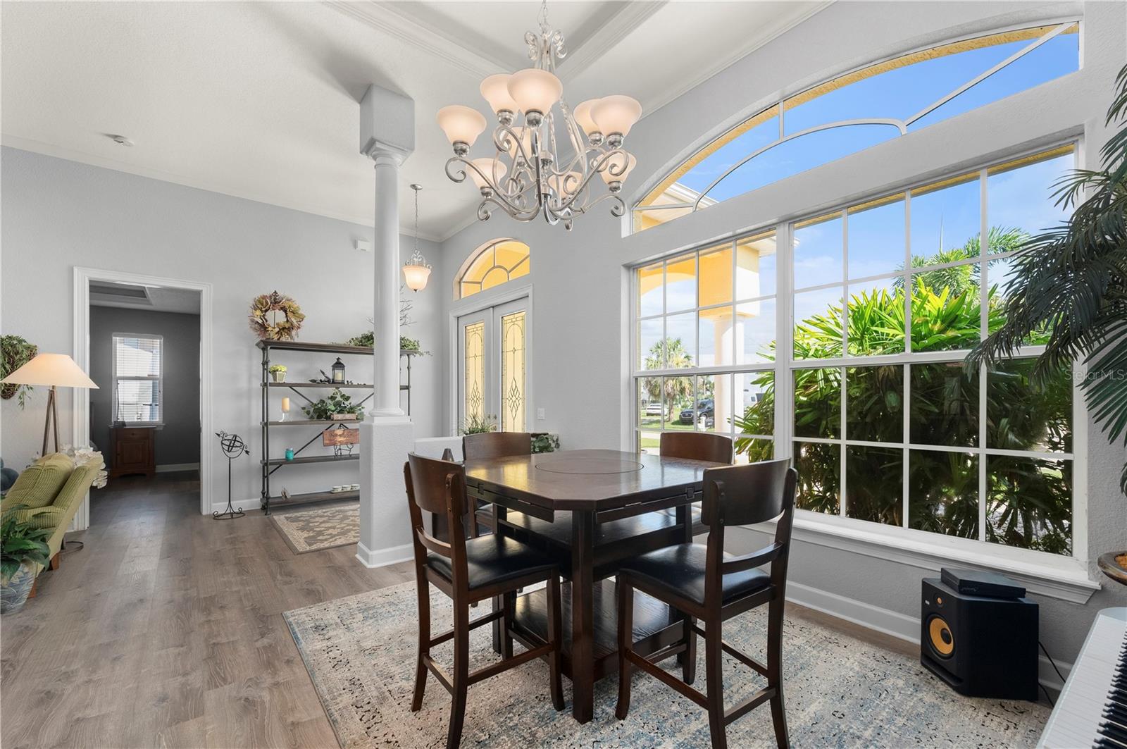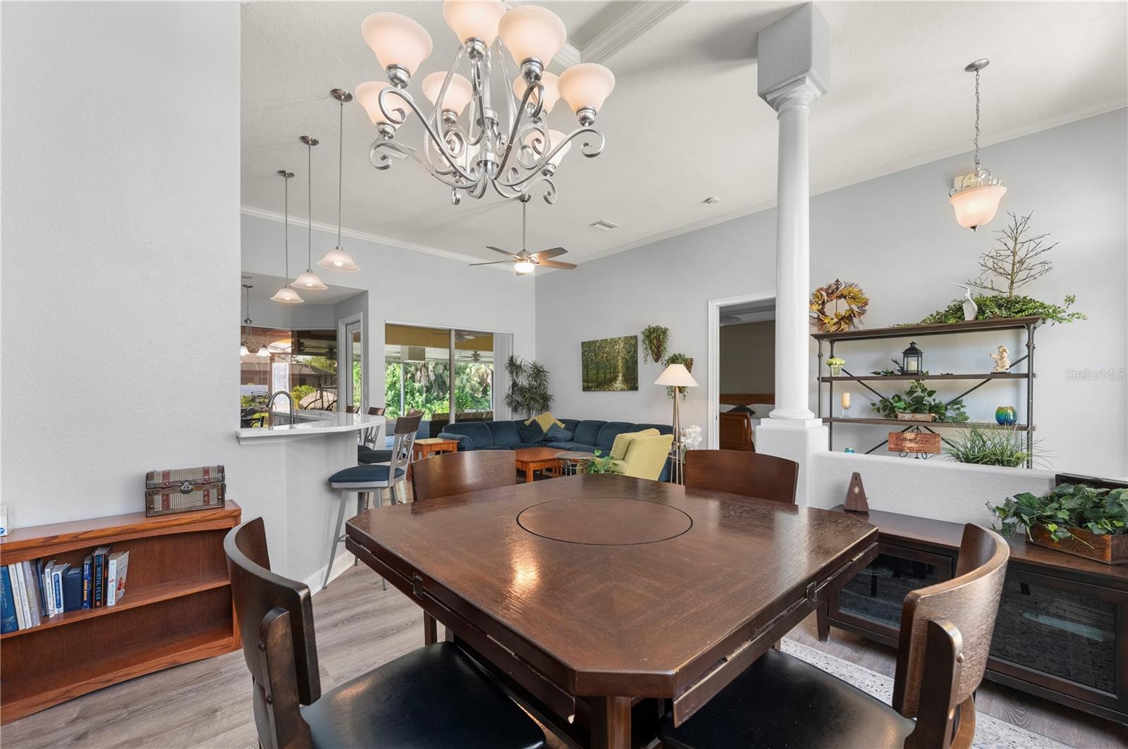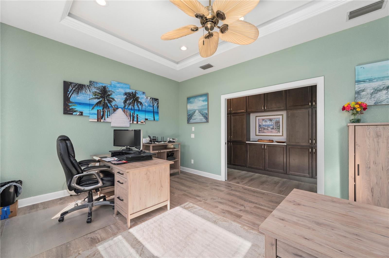 Palm trees sway gently along the canal's edge, where 160 feet of pristine waterfront set the stage for the ultimate coastal lifestyle- all from this move-in ready 3 bedroom, 3 bath home with detached 3 car garage and a private in-law suite on nearly half an acre. From your private dock-complete with a boat lift-you're just moments from the open waters of Peace River and onto Charlotte Harbor, a paradise for boaters and anglers alike. This custom-designed home unfolds with thoughtful grandeur. Beautiful wood-look plank tile stretches throughout a bright, open layout tailored for gathering and entertaining. Volume ceilings and crown molding add elegance, while the spacious kitchen commands attention with stone counters, a wine refrigerator, 2020 stainless appliances, a tile backsplash, under-cabinet accent lighting, and ceiling-height cabinetry for extra storage. A breakfast bar and a panoramic-windowed nook offer perfect spaces to start the day-all overlooking serene water views. The main living space flows effortlessly into a cozy family room/den complete with a full bathroom. Down the hall, a large bonus room-currently used as an office-adds flexibility with custom cabinetry down the hall to adapt to your lifestyle. Two additional bedrooms provide comfort for guests or family-one with direct access to the lanai and backyard. Privately tucked away, the primary suite is a retreat in every sense, with a tray ceiling, sitting area, and sliding glass doors that open directly to the lanai. The ensuite bath offers dual walk-in closets, a soaking tub, and a walk-in shower. Step outside to the oversized, tiled screened lanai, a true extension of your living space with screen/projector- ideal for quiet mornings or evening cocktails, all with peaceful water views as your backdrop. Just across the breezeway, a detached three-car garage includes a converted workshop in the third bay- and a private-entry one-bedroom, one-bath apartment with kitchenette, perfect for in-laws, guests, or long-term stays. This home offers more than space- it offers lifestyle. Recent upgrades include a 2025 dishwasher, 2023 AC condenser, 2022 whole-home generator, 2021 well pump, and 2020 roof. Located in Palm Shores, a peaceful, non-HOA community with no deed restrictions, you'll enjoy rare freedom with a prime location just minutes to Punta Gorda, I-75, and Punta Gorda Airport. For the boater, entertainer, multi-generational household, or anyone seeking privacy and elegance by the water -this home is ready to elevate every day.