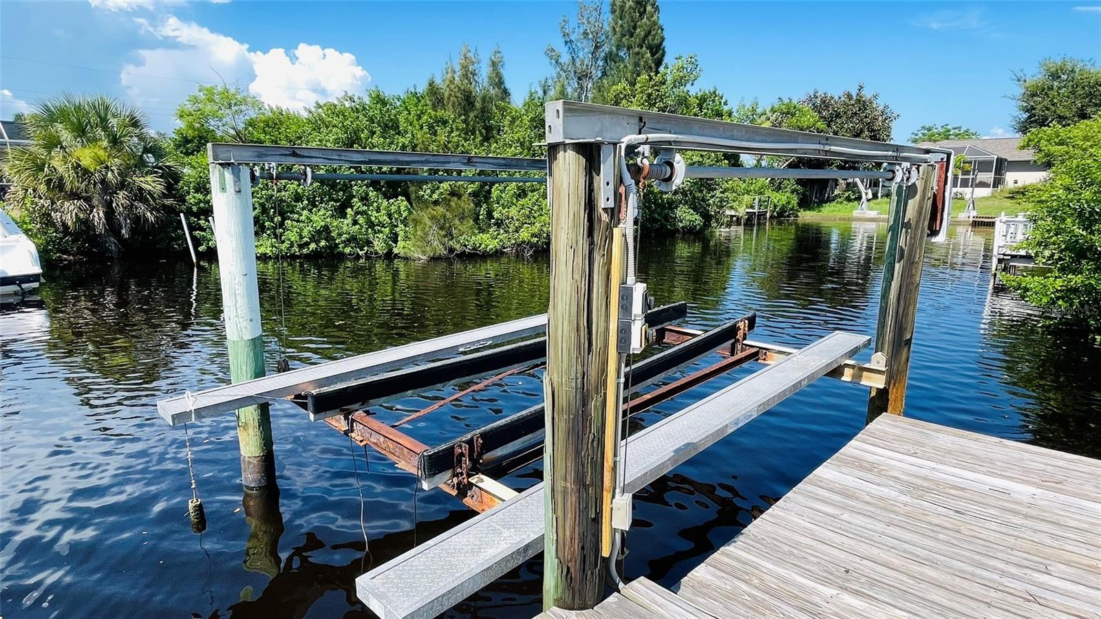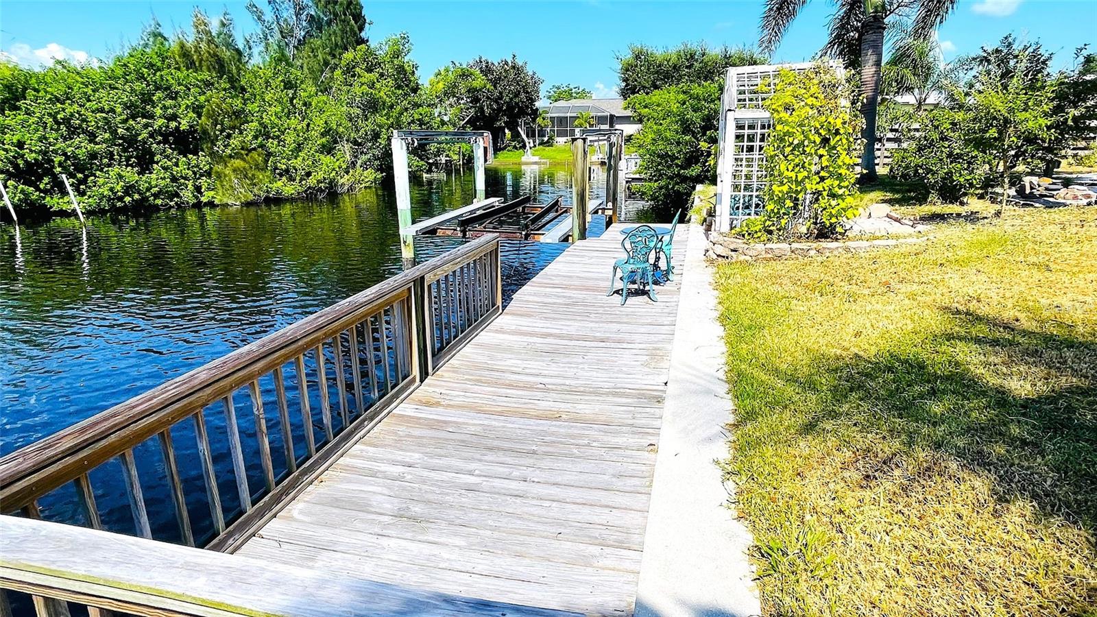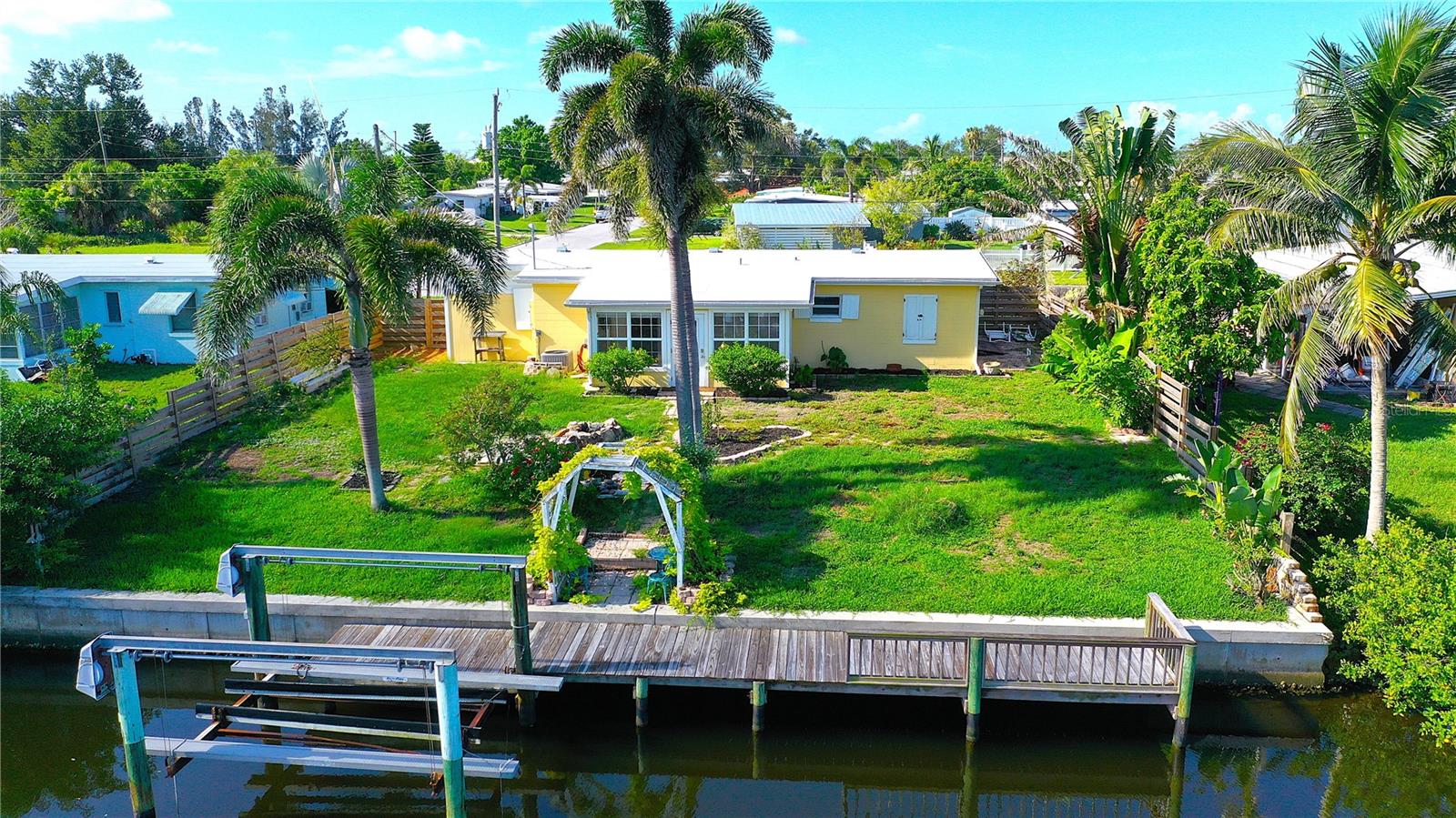 Price Reduced - Waterfront Fishing Opportunity with Dock & Boat Lift.This solid block-construction waterfront home offers a rare opportunity for boaters and anglers seeking direct water access, private dockage, and quick Harbor access at an attractive price point. Featuring 3 bedrooms, 1 bathroom, and a carport, this property is designed for practical coastal living with a strong focus on boating and fishing functionality. Enjoy approximately 7 minutes by boat to Charlotte Harbor, passing under one bridge with approximately 10-foot clearance, making this an ideal setup for inshore and nearshore anglers. The property includes a Solid 75-foot concrete seawall, a 50-foot private dock, and a 7,000 lb boat lift, providing excellent accommodations for fishing vessels and watercraft. Inside, the home offers an open living layout that connects the kitchen and main living area--well suited for everyday living or hosting guests. The kitchen is equipped with Frigidaire appliances and ample storage. A flex room adds versatility and works well as a hobby space, tackle room, or additional storage. An 11x8 workshop under the carport provides a convenient area for boat gear, maintenance, or tools. Three bedrooms allow comfortable accommodations for family or visiting guests.Outdoors, the fenced and landscaped backyard offers privacy and a relaxed waterfront setting. Paver walkways lead through mature tropical landscaping to the dock, creating a functional and enjoyable outdoor space ideal for fishing, relaxing by the water, or enjoying evening views. The waterfront area also offers space for fish cleaning and waterside entertaining.Additional highlights include durable block construction, a newer roof, and a move-in-ready condition, making this property suitable as a primary residence, second home, or investment opportunity. With its combination of waterfront access, dock, boat lift, seawall, and proximity to Charlotte Harbor fishing grounds, this home presents strong value for boating and fishing enthusiasts.Schedule your private showing to explore the potential of this waterfront property and experience the Florida fishing lifestyle firsthand.