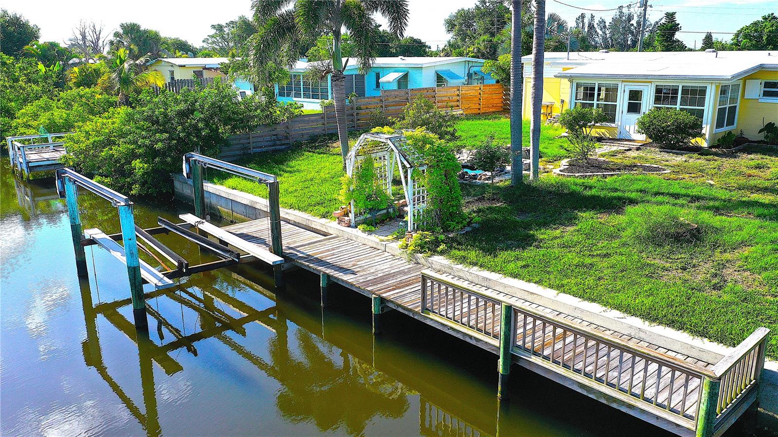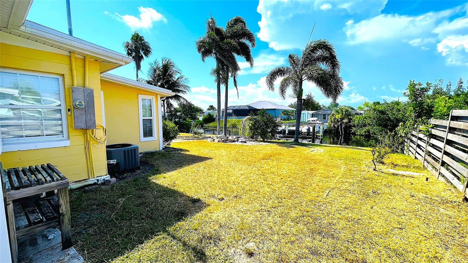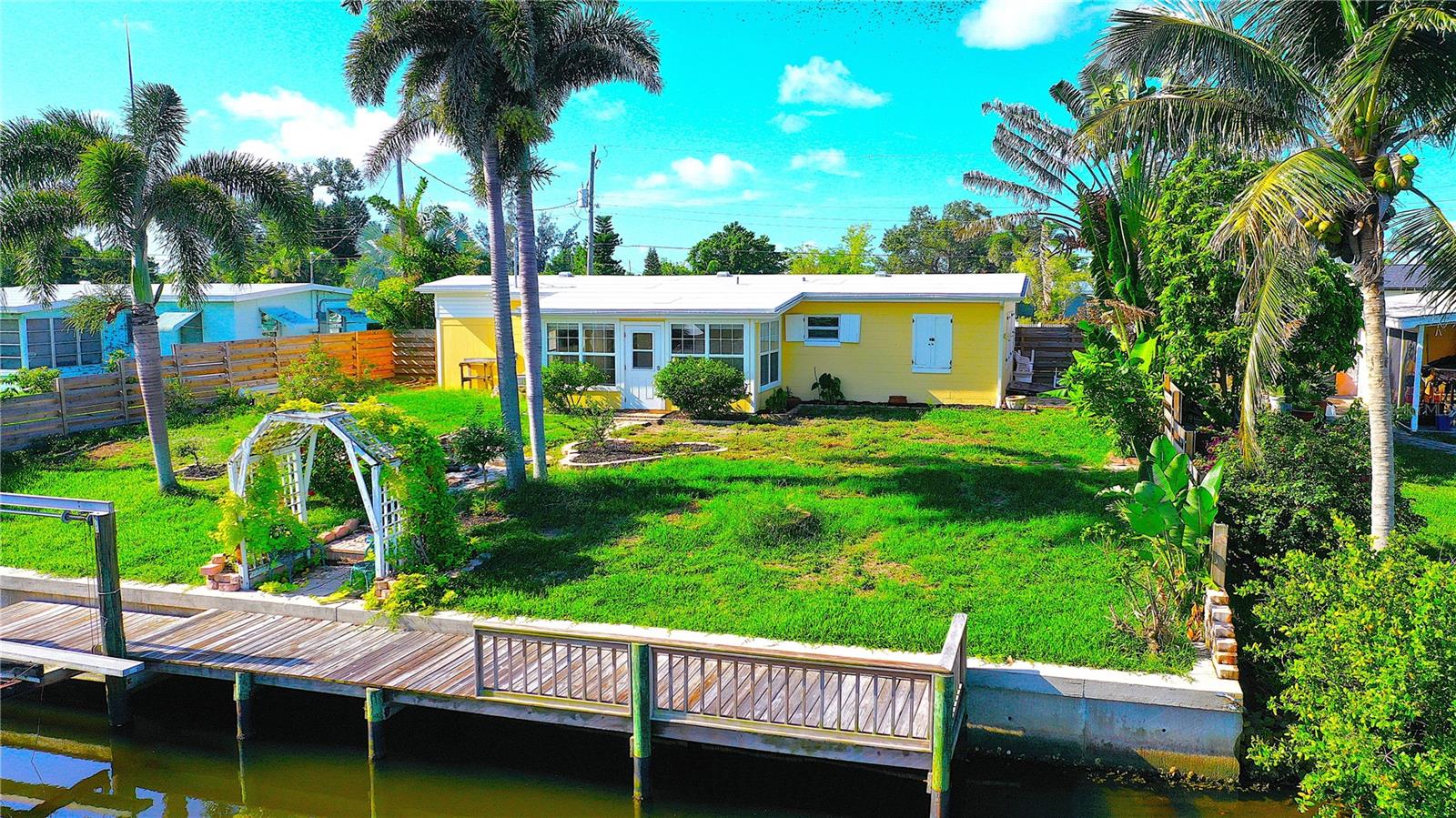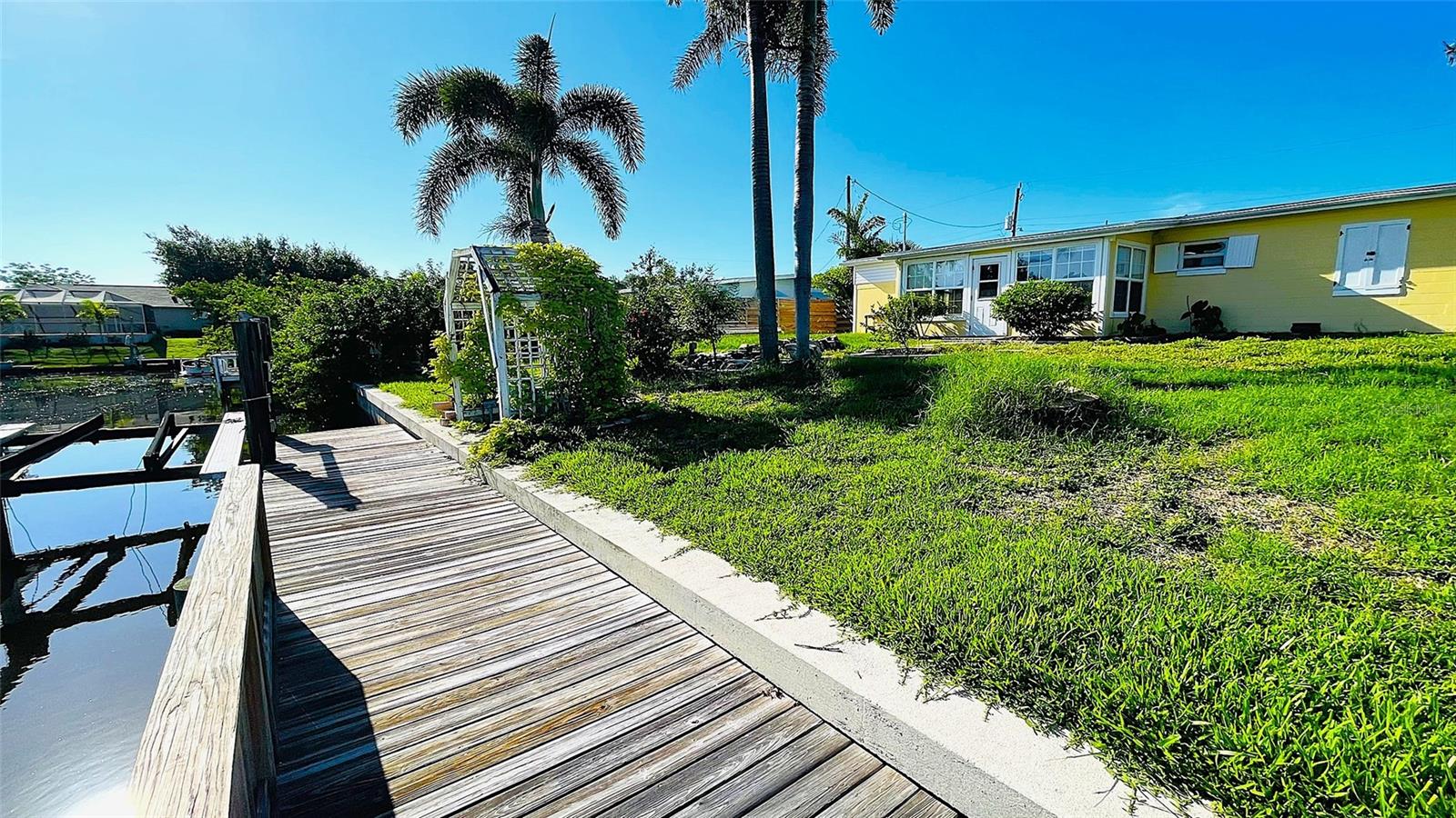 Price Reduced - Waterfront Fishing Opportunity with Dock & Boat Lift.This solid block-construction waterfront home offers a rare opportunity for boaters and anglers seeking direct water access, private dockage, and quick Harbor access at an attractive price point. Featuring 3 bedrooms, 1 bathroom, and a carport, this property is designed for practical coastal living with a strong focus on boating and fishing functionality. Enjoy approximately 7 minutes by boat to Charlotte Harbor, passing under one bridge with approximately 10-foot clearance, making this an ideal setup for inshore and nearshore anglers. The property includes a Solid 75-foot concrete seawall, a 50-foot private dock, and a 7,000 lb boat lift, providing excellent accommodations for fishing vessels and watercraft. Inside, the home offers an open living layout that connects the kitchen and main living area--well suited for everyday living or hosting guests. The kitchen is equipped with Frigidaire appliances and ample storage. A flex room adds versatility and works well as a hobby space, tackle room, or additional storage. An 11x8 workshop under the carport provides a convenient area for boat gear, maintenance, or tools. Three bedrooms allow comfortable accommodations for family or visiting guests.Outdoors, the fenced and landscaped backyard offers privacy and a relaxed waterfront setting. Paver walkways lead through mature tropical landscaping to the dock, creating a functional and enjoyable outdoor space ideal for fishing, relaxing by the water, or enjoying evening views. The waterfront area also offers space for fish cleaning and waterside entertaining.Additional highlights include durable block construction, a newer roof, and a move-in-ready condition, making this property suitable as a primary residence, second home, or investment opportunity. With its combination of waterfront access, dock, boat lift, seawall, and proximity to Charlotte Harbor fishing grounds, this home presents strong value for boating and fishing enthusiasts.Schedule your private showing to explore the potential of this waterfront property and experience the Florida fishing lifestyle firsthand.