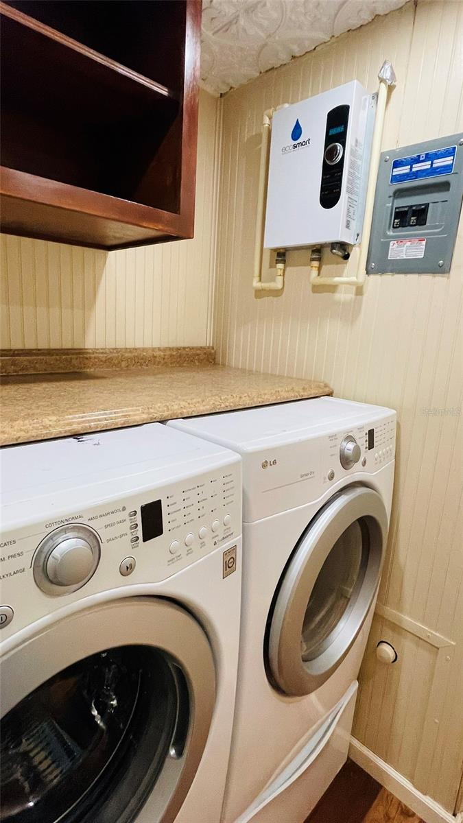 Appliances: Dishwasher, Dryer, Exhaust Fan, Microwave, Range, Range Hood, Refrigerator, Tankless Water Heater, Washer