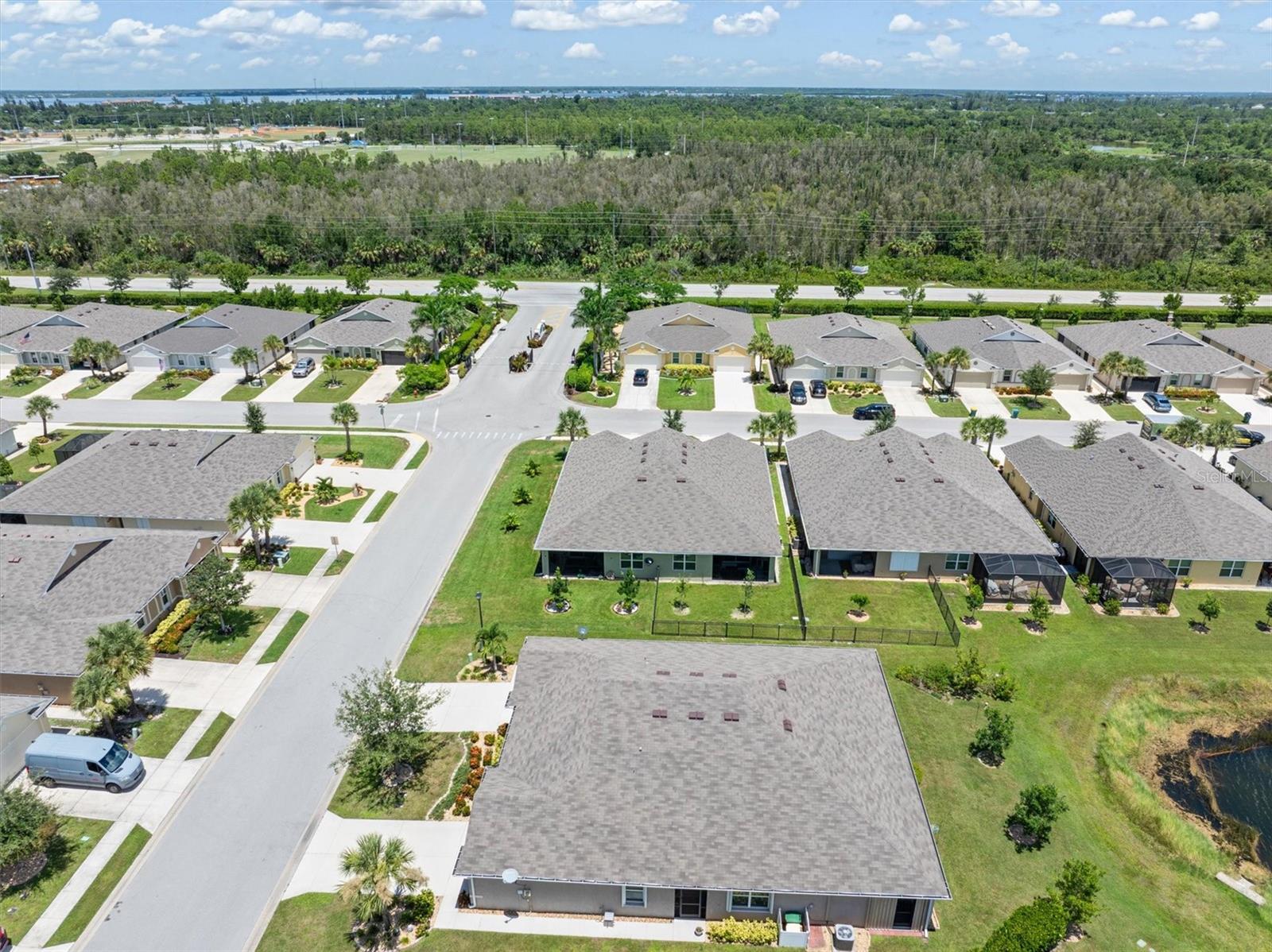 25089 E Lenox Cir, Punta Gorda, FL 33950 - Welcome to this beautifully maintained 2 bedroom plus den Carrington model by D.R. Horton, perfectly situated in the highly desirable gated community of Waterford Estates. Here, you'll enjoy the best of Florida living with two sparkling community pools, an abundance of resident activities, and a vibrant, friendly neighborhood atmosphere.This thoughtfully designed split floor plan offers a spacious open-concept living area that flows effortlessly from the modern kitchen to the screened lanai, where you can relax and take in tranquil views of the lake. The kitchen features sleek Corian® countertops, stainless steel appliances, and ample cabinetry, perfect for everyday meals or entertaining guests.The primary suite provides a peaceful retreat with generous space and natural light, while the additional bedroom and den are ideally positioned for privacy and versatility. Outside, the fenced backyard on a desirable corner lot offers both space and privacy for outdoor enjoyment.Waterford Estates residents enjoy resort-style amenities including two heated swimming pools, a clubhouse, fitness center, bocce ball, pickleball, and scenic walking trails. Just minutes away, historic downtown Punta Gorda offers waterfront dining, boutique shopping, fishing piers, and year-round festivals. Nature and recreation lovers will appreciate being right next to Carmalita Park and close to the local bike/skate park.With city water, sewer, and lawn maintenance included in the HOA, this home offers low-maintenance living in a vibrant waterfront community--just move in and start enjoying the Florida lifestyle.