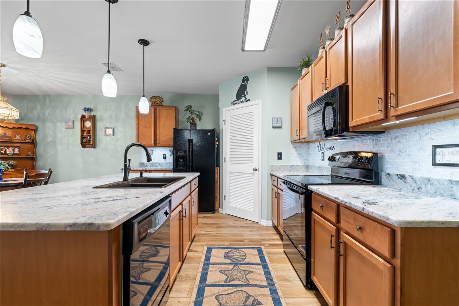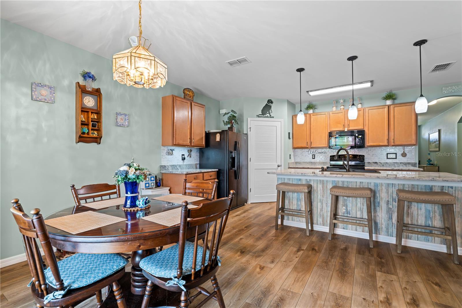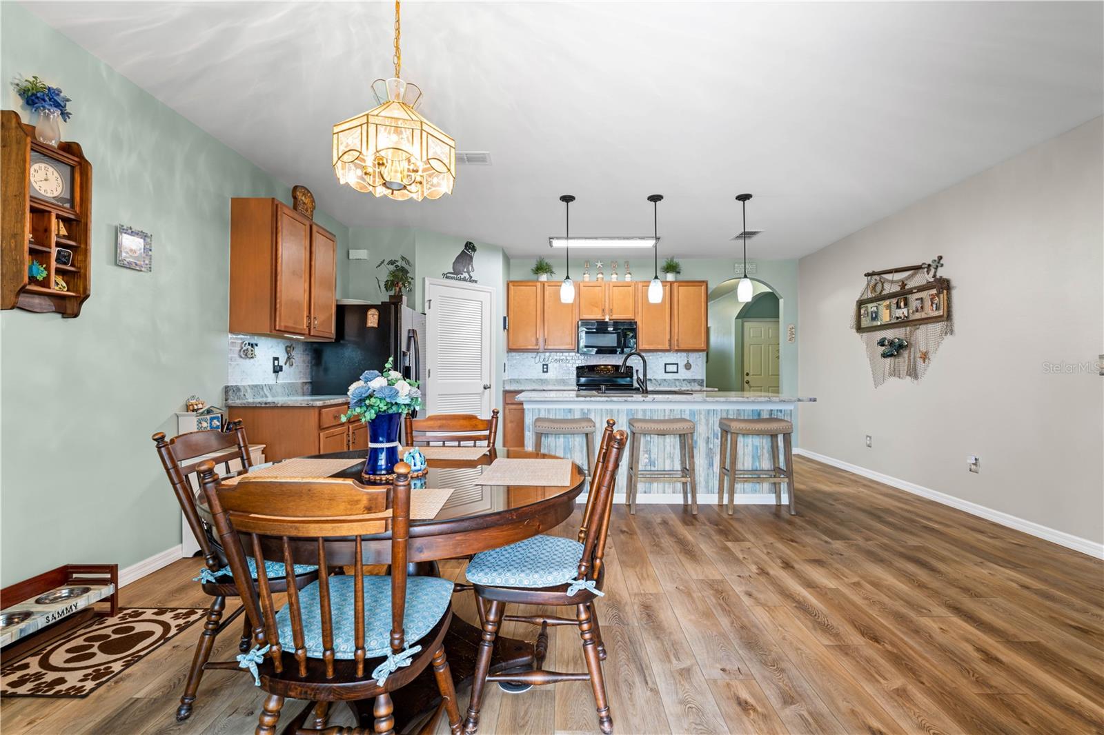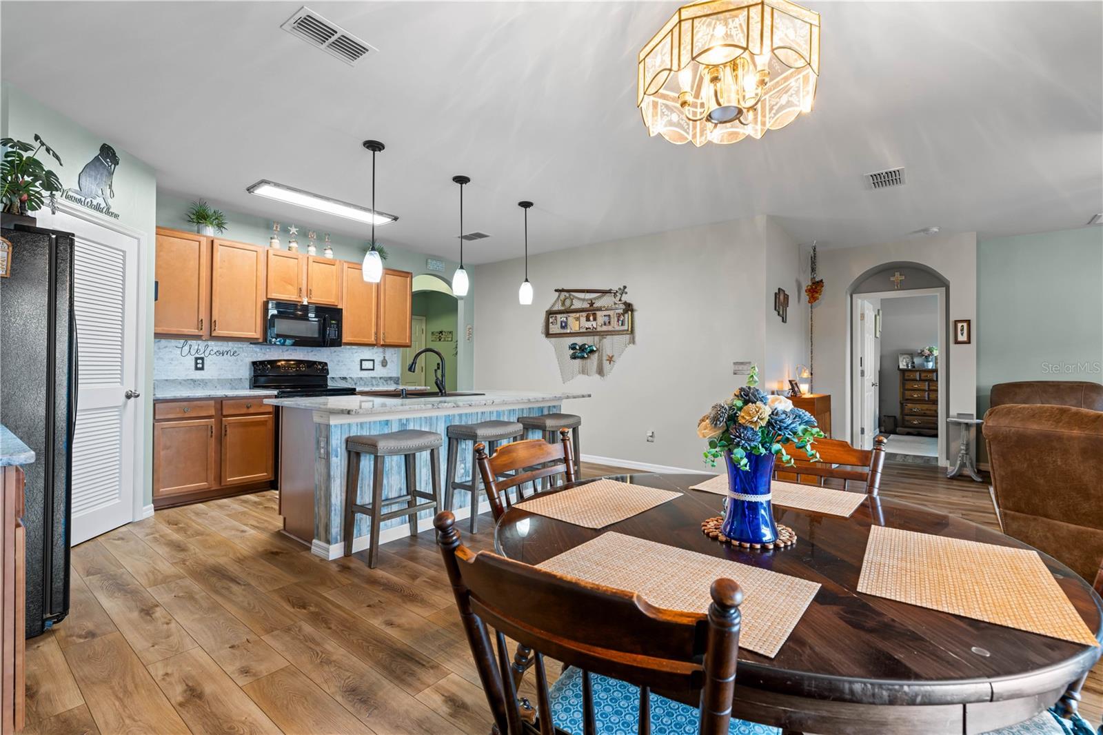 LAKEFRONT HOME ON OVERSIZED LOT IN WATERFORD ESTATES This **FOUR** bed/TWO bath home, located in the gated community of Waterford Estates, commands one of the neighborhood's most desirable oversized lots with an extra-wide footprint and an unforgettable lake view. From your lanai, watch the water shimmer with a central fountain framed by lush landscaping and wide open skies. The community offers two pools, a clubhouse with fitness, billiards, and cards, plus pickleball and bocce courts -- all just minutes from historic downtown Punta Gorda, Fishermen's Village, US41, I-75, and PGD airport. Lawn care, trimming, irrigation, and recreation facilities are covered by low quarterly HOA fees. Inside, the open-concept layout is anchored by a coastal-inspired chef's kitchen featuring brand-new counters, a striking center island with pendant lighting, rustic paneling detail, a breakfast bar, and a walk-in corner pantry. The kitchen flows into the spacious dining area and great room, where UV-protected windows and sliding glass doors bring in the lake view and natural light. Warm-toned luxury vinyl plank flooring runs throughout the main living areas, creating a seamless sense of space and style. The master retreat offers an en-suite, private bath with dual sinks, a large linen closet, and shower with adjustable shower head plus an oversized walk-in closet. Three guest bedrooms share a bright guest bath with combination tub/shower. Outdoor living takes center stage with an L-shaped, picture-frame-screened lanai finished in stamped concrete, creating a breezy extension of the home's living space. The backyard unfolds to a manicured lawn that meets the water's edge, providing unobstructed views and a serene setting for morning coffee. With a widened driveway, whole-house hurricane protection, gas generator hookup, new roof (2022), and fresh exterior paint (2024), this lakefront beauty is truly move-in ready. Low-voltage lighting brightens up the home at night for a beautiful look. A privacy fence at the side of the home covers trash bins while providing additional storage for bikes or other items. Waterford Estates is a growing community w/two gated entrances, two pools, a community center w/catering kitchen, billiards & card rooms plus a fitness center, four pickleball & three bocce courts. Miles of sidewalks in Waterford's park-like setting provide a scenic backdrop to your evening stroll. Enjoy the tranquility of passing by lakes and manicured, tropical landscaping. Schedule your appointment today and experience the Waterford Estates lifestyle for yourself. Home has a transferrable flood policy w/$1,080 premium ($4,454 discount).