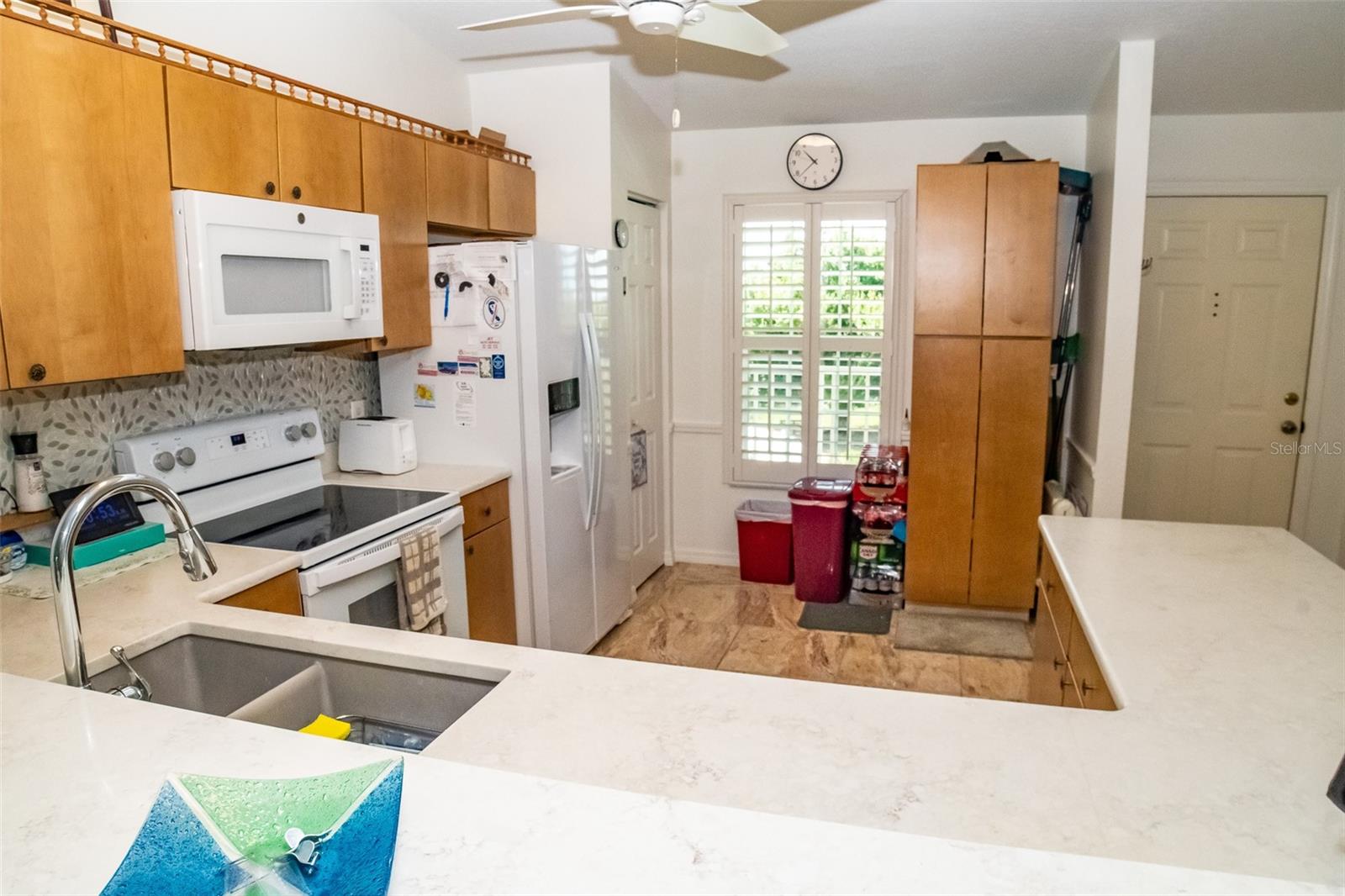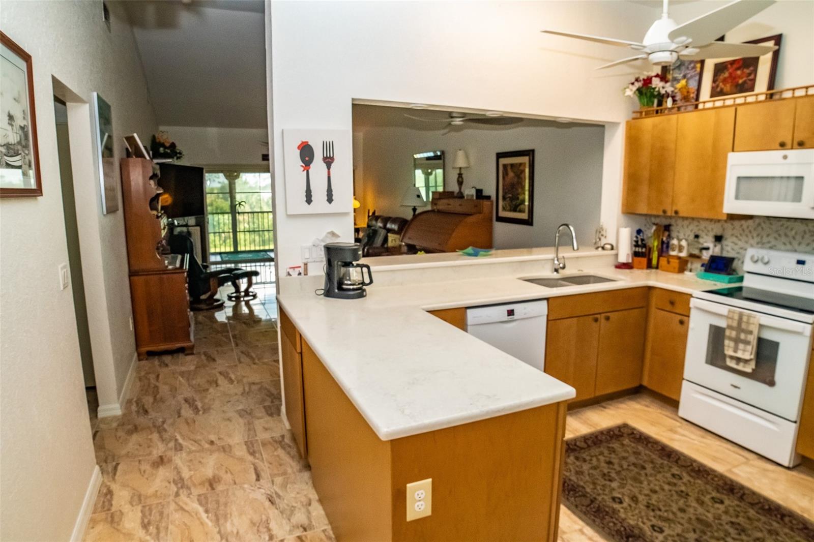 Welcome to this beautifully maintained 2-bedroom, 2-bath condo located in the desirable community of St. James Place. Situated on the 3rd floor, this residence offers both stair and elevator access for convenience, along with peaceful pond views from your private screened lanai.Step inside to find beautiful tiled flooring throughout and high ceilings that enhance the sense of space and light. The large kitchen is a cook's dream with elegant quartz countertops, 2022 stainless steel appliances, and a pantry featuring sliding drawers for easy organization. The open floor plan flows seamlessly into the living and dining areas, perfect for both everyday living and entertaining.The master suite features a generous walk-in closet and a private bath, while the guest bedroom and bath provide comfort and privacy for visitors. The laundry room includes extra storage space, adding to the functionality of the home.Enjoy an assigned covered parking space plus plenty of guest parking. The community pool is just steps from your front door, offering the perfect spot to relax and enjoy Florida's sunshine. With its combination of style, comfort, and a fantastic location, this condo is move-in ready and waiting for you to make it your own!