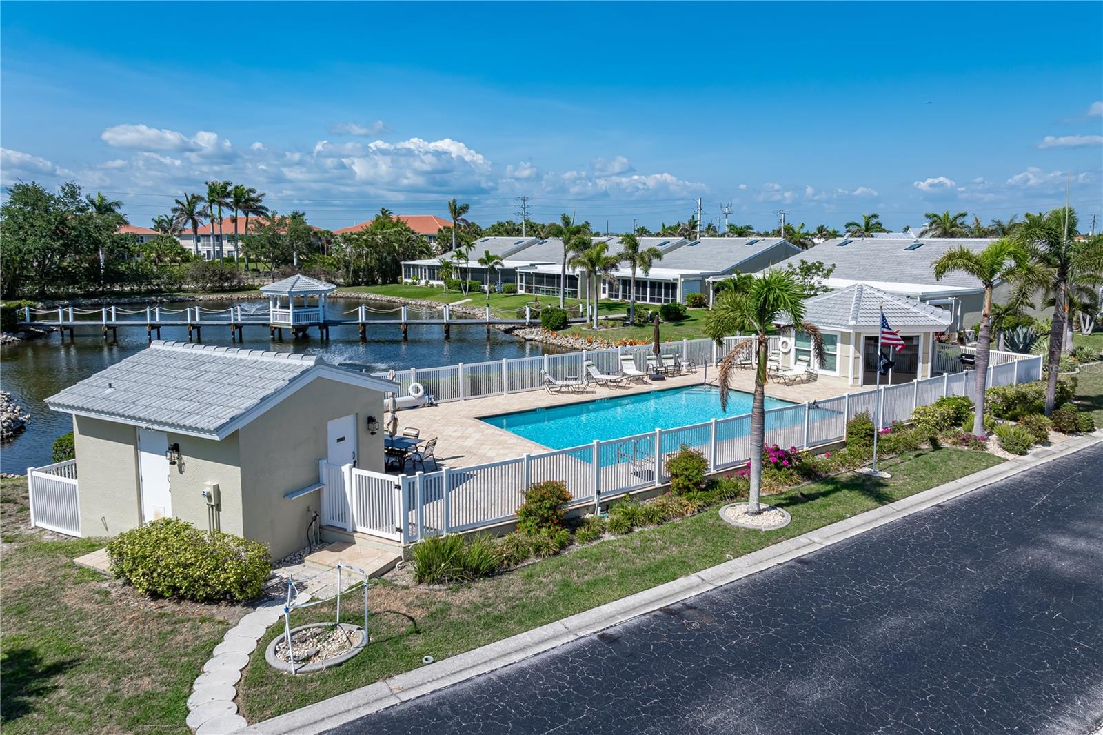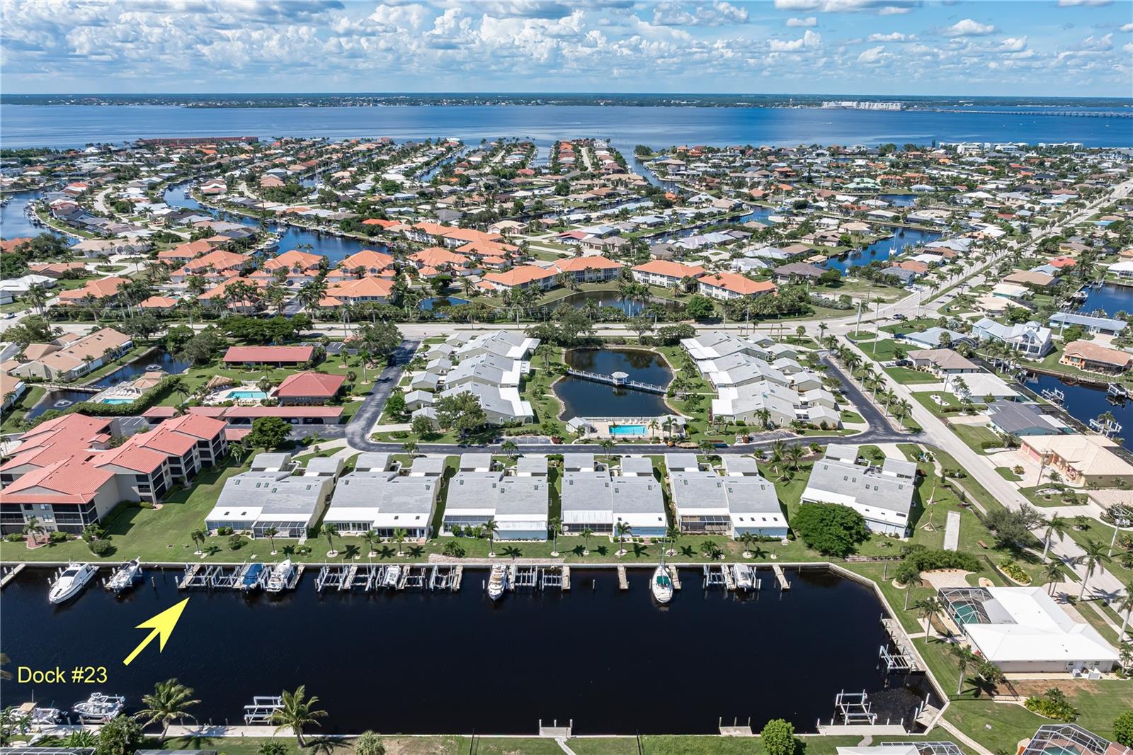 PGI WATERFRONT VILLA W/DEEDED DOCK, SAIL ACCESS & SCENIC LAKEFRONT VIEWS - Ideally located in heart of Punta Gorda Isles, this spacious 3 bed/2.5 bath villa w/just over 2,000 sqft in Isles Cove delivers picturesque lake views, a deeded dock just steps from your door, and direct sailboat access to Charlotte Harbor -- all within a beautifully maintained, park-like setting. Inside, the home's layout is spacious & bright w/cathedral ceilings & skylights that enhance it all. A wall of sliding glass doors opens to the lanai extending the living space outside. Sliding glass doors & windows frame tranquil lake views from the great room and lanai. The open-concept kitchen offers warm wood cabinetry, granite counters, under-cabinet lighting, updated appliances & a closet pantry. Pass-through counters to the dining area make entertaining a breeze. Architectural details include a formal entry w/coat closet, soaring cathedral ceilings, arched doorways, wet bar & gleaming wood floors in the great room. The split-bedroom floor plan offers a private owner's retreat with two walk-in closets and lanai access. The owner's en-suite bath includes dual vanities, a glass-enclosed tile shower, and a jetted corner tub. Two additional bedrooms offer flexibility for guests, a home office, or hobby space, and share a well-appointed guest bath. One guest bedroom has a Murphy bed already in place. The powder room off the main hallway adds convenience for entertaining. Outside, the spacious, tiled lanai overlooks the lake & gazebo. Out here, you'll be able to enjoy the extending living space year-round plus have access to colorful sunrises w/your morning coffee. The villa also features a private two-car garage connected by a gated courtyard entrance. Keep your boat just yards away at your deeded dock (Dock #23). Dock features water & shared, metered electric hook-ups plus a 10,000 lb boat lift (installed 2019). The entire unit was re-plumbed w/overhead piping. Other updates include a smart thermostat, NEW impact-resistant windows along Marion Ave, NEW A/C (2022), NEW refrigerator (2025), NEW ROOF (2024) & NEW plexiglass sliding windows on lanai (2022). Community amenities include a heated pool, guest parking, and beautifully landscaped grounds. Miles of sidewalks in Punta Gorda Isles connect you to Ponce Park, historic downtown, Gilchrist Park & Fisherman's Village. Life in Punta Gorda is about more than boating--it's about enjoying every moment. Tee off at local golf courses, rally with friends on the tennis or pickleball courts, or pedal along miles of scenic bike paths. On weekends, the city comes alive with music, art fairs, and vibrant festivals. Add in the weekly farmers markets brimming with local produce and the boutique-lined streets of Marion Avenue, and you'll see why Punta Gorda is a community where every day feels like vacation. Claim your spot in paradise by making an appointment today.