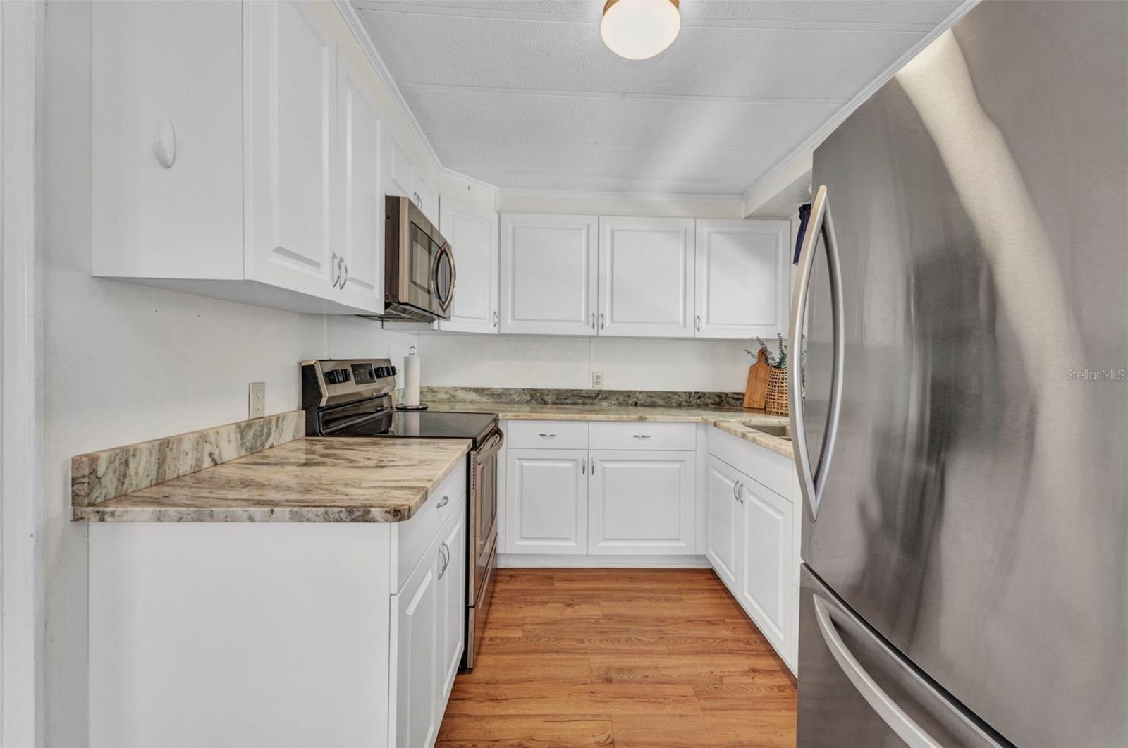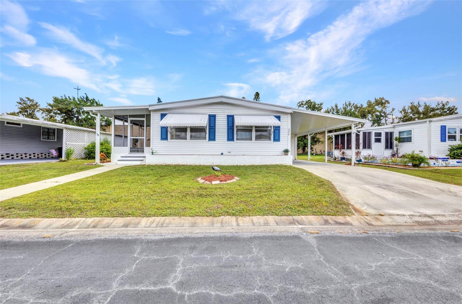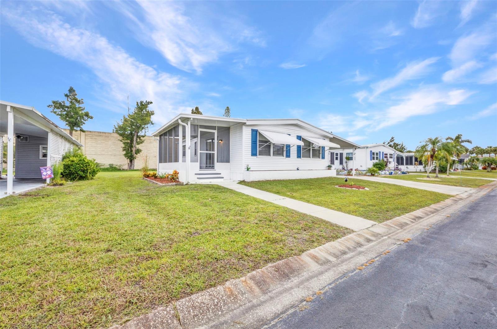 BACK ON THE MARKET - FINANCING FELL THROUGH. Welcome to Port Charlotte Village - Voted #1 Manufactured Home Community in Charlotte County for 2024! This updated 2-bedroom, 2-bathroom home in a desirable 55+ community offers modern style and everyday convenience with a low HOA and location outside the flood zone. Inside, you'll find laminate flooring throughout, an enclosed Florida sunroom, and a spacious living/dining area with built-in cabinetry. The kitchen boasts newer stainless steel appliances, granite countertops, and newer cabinets, while both bathrooms have been tastefully updated. Hurricane shutters and lock-down awnings, provide comfort and peace of mind. A large carport accommodates 2 cars and a golf cart, and the storage shed includes a washer and dryer. Community amenities include: clubhouse with recreation center, dog park, meditation garden, community garden and greenhouse, lakes for kayaking, canoeing, and fishing, plus a secured storage yard for boats and trailers. Perfectly located near shopping, dining, beaches, and golf, this home offers the very best of Florida living in one of Charlotte County's most sought-after communities.