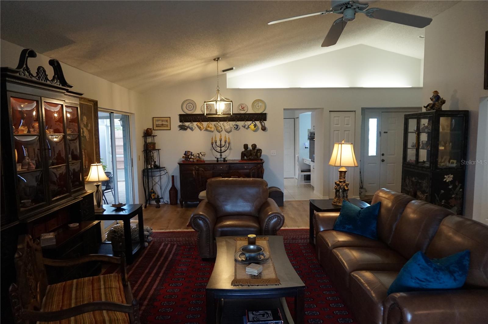Welcome to this inviting residence in the highly sought-after community of Harrington Lake at Plantation Golf & Country Club. This spacious two-bedroom, two-bath villa with a two-car garage offers an ideal combination of comfort, convenience, and scenic views, making it a wonderful opportunity for year-round living or a seasonal retreat. Recent updates include a new roof in 2024, new ac in 2021, new water heater in 2025. As you step inside, you are welcomed by soaring cathedral ceilings that create an open and airy atmosphere. The main living areas feature durable laminate flooring that adds warmth and character, while the kitchen is finished with easy-to-maintain tile. Large windows allow natural light to flow throughout the home, enhancing its bright and welcoming appeal. The kitchen is designed with both functionality and style in mind. White cabinetry provides a crisp, clean backdrop, complemented by extensive countertop space that makes cooking and entertaining a breeze. The kitchen is equipped with a built-in wall oven and an electric cooktop situated on the island, offering convenience for meal preparation. In addition, there is a built-in desk, perfect for keeping organized, and plenty of room to accommodate a breakfast table. Whether you're enjoying a casual meal or preparing for gatherings, this kitchen is well-suited for a variety of needs. The primary suite is a peaceful retreat, complete with a walk-in closet that provides ample storage. The primary bathroom features dual sinks, a soaking tub, and a separate walk-in shower, creating a private space for relaxation and comfort. The guest bedroom and second full bathroom are equally well-appointed, ensuring that family and visitors feel right at home. This residence offers multiple spaces to enjoy the Florida lifestyle. A Florida room provides additional living space under air with tranquil views of the pond, while the separate screened lanai allows for comfortable outdoor relaxation. From morning sunrises to evening sunsets, the setting offers a beautiful backdrop for daily living. The home is also topped with a tile roof, adding to its curb appeal and long-lasting durability. Harrington Lake is part of the master-planned Plantation Golf & Country Club, one of Venice's premier communities known for its picturesque lakes, manicured grounds, and friendly atmosphere. Residents enjoy access to a community pool, social activities, and beautifully maintained common areas. Membership at Plantation Golf & Country Club is optional and offers a wide range of amenities, including championship golf courses, tennis, pickleball, fitness facilities, dining, and a full calendar of events. With its convenient location, the community is just minutes from shopping, dining, Gulf beaches, and all that Venice has to offer.