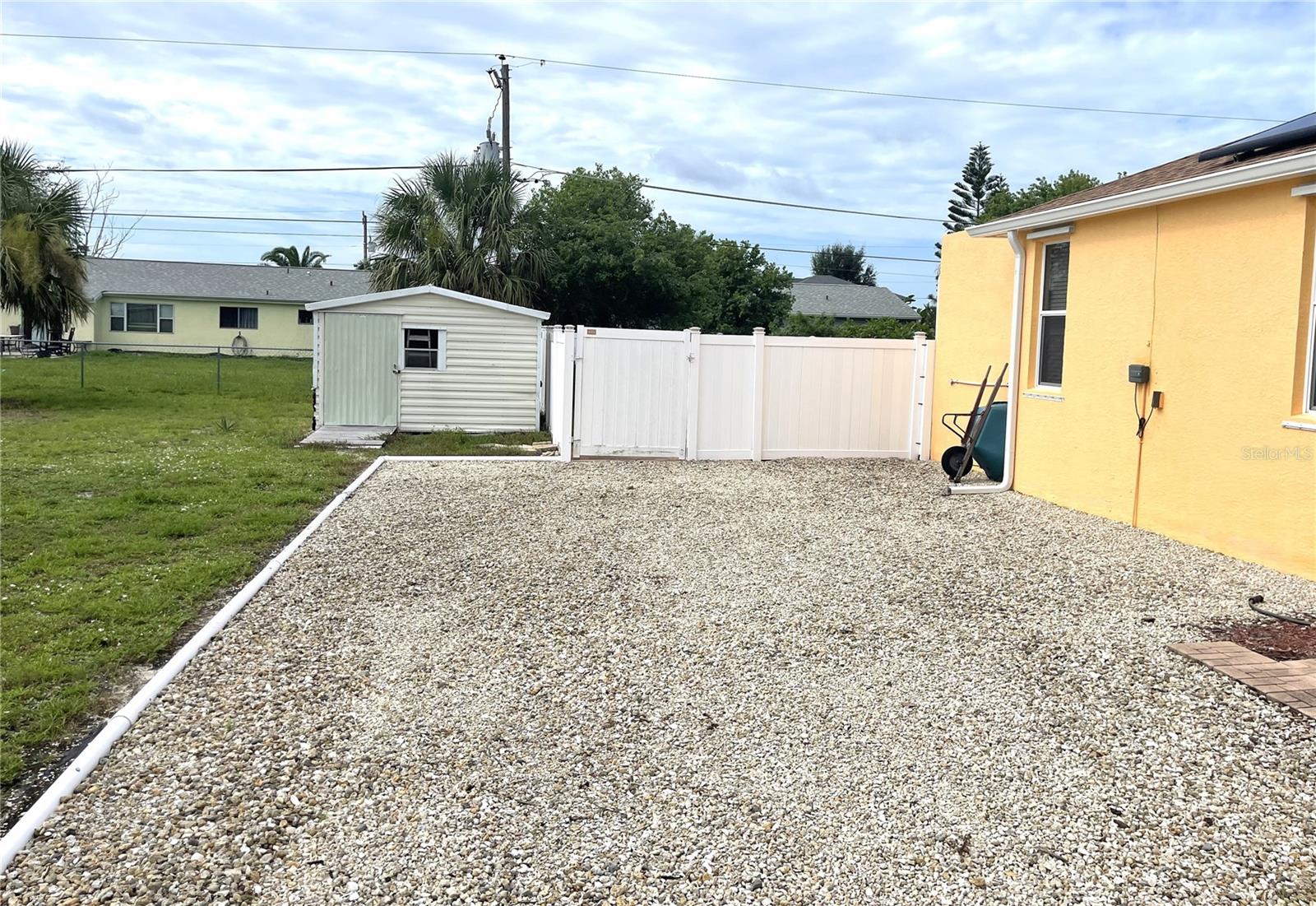 **PLEASE ENJOY THE 3D INTERACTIVE VIRTUAL TOUR ASSOCIATED WITH THIS LISTING - DOUBLE LOT ALERT!! NO HOA or CDD"S. Looking for a Single-family home with an adjacent cleared lot and almost 1/2 acre of land? Then look no further than this 3 bedroom, 2 bath home with stainless steel appliances, breakfast bar and sizable pantry for the cook in your family. The Primary Bedroom/ Bathroom includes a walk-in closet, dual sinks, linen closet, large walk-in shower and accesses the screened lanai where your hot tub awaits! The front bedroom is currently being used as an office. The guest bathroom has a tub/shower combination including linen closet. The laundry is off of the garage and includes laundry tub and shelves. Additional features include built-in gas fireplace in the great room, hurricane shutters, central vacuum, tile floors, high ceilings, ceiling fans, Manibloc plumbing system, new roof in 2023 with solar panels resulting in low electric bills, well for irrigation system, circular driveway and cleared adjacent lot which includes storage shed and an additional parking area too! Plenty of room to park your RV, add a garage or completely fence for your all of your toys! Just minutes to Historic Downtown Punta Gorda, Sunseeker Resort, Charlotte Sports Park and boat ramps off of Edgewater Drive with easy access to 41 (Tamiami Trail) and Interstate 75. Schedule your private showing today!