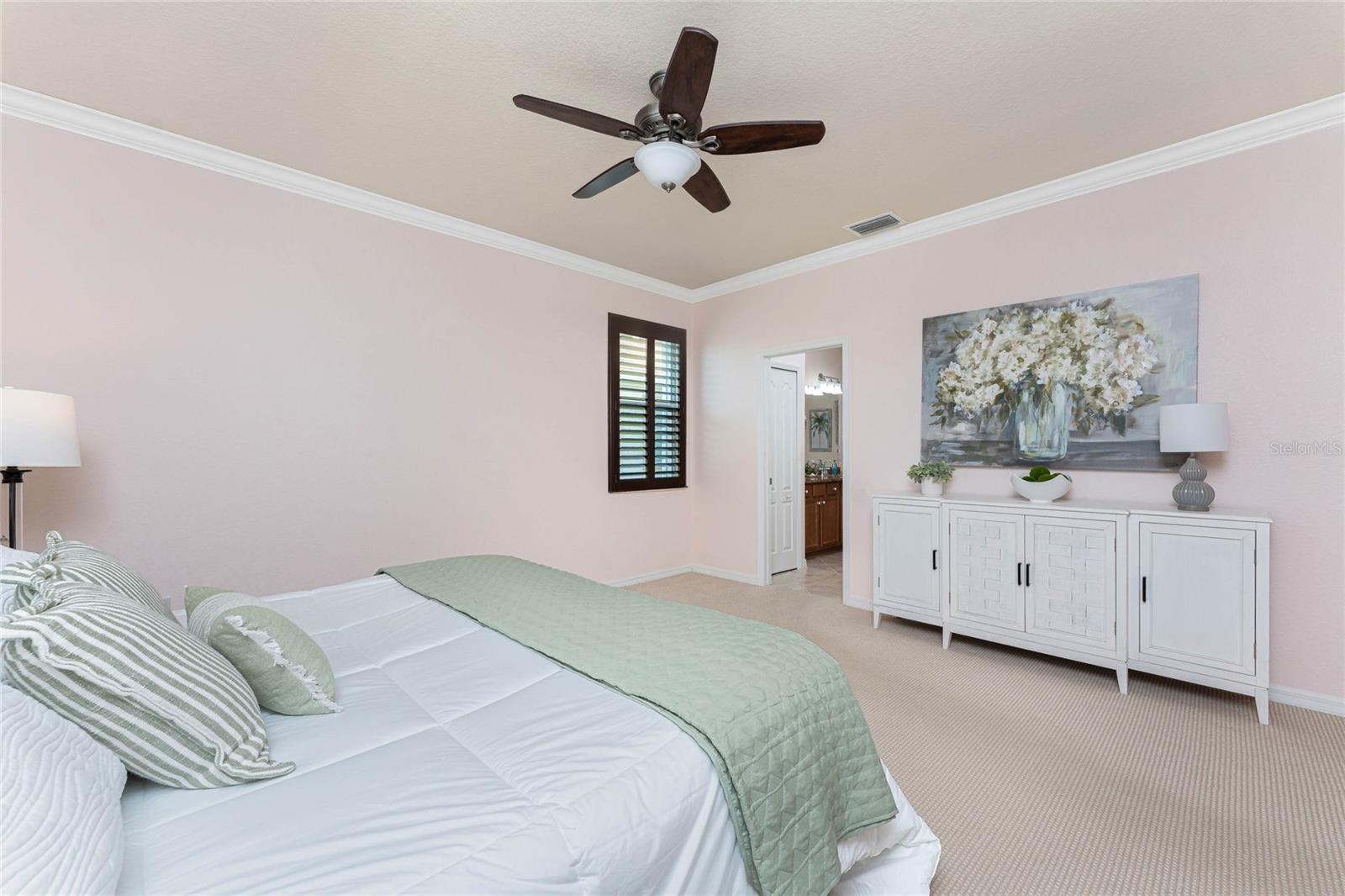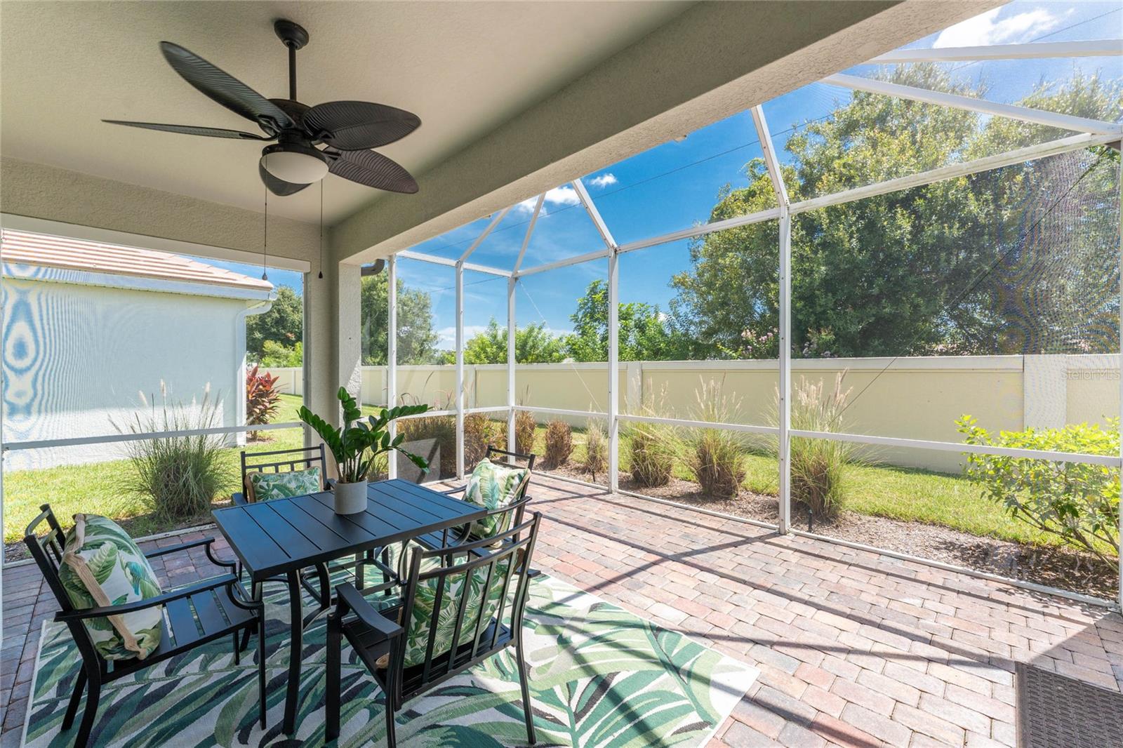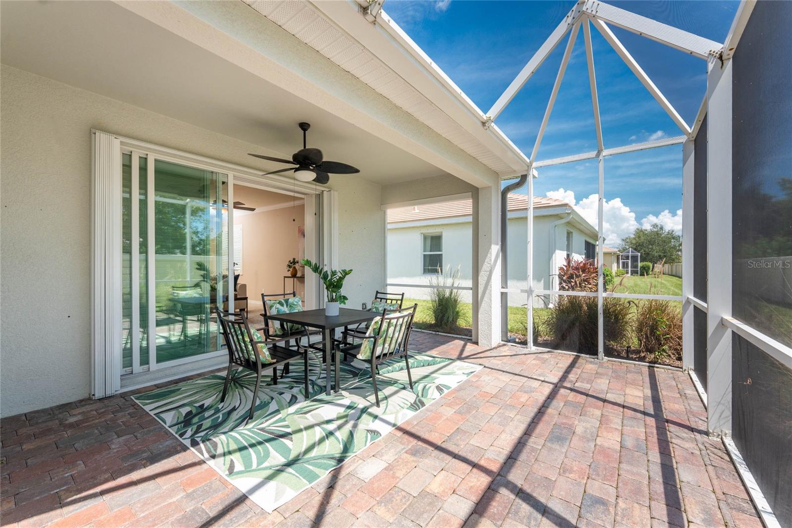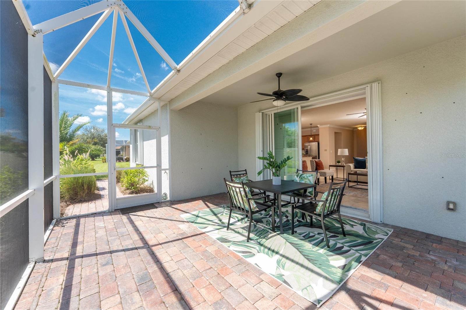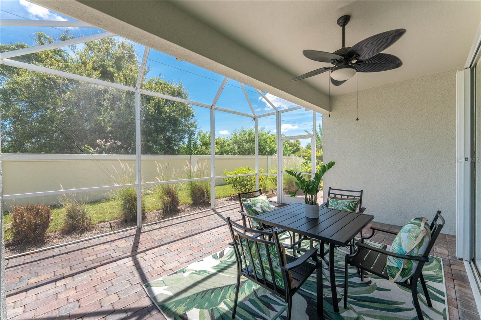 THIS HOME OFFERS AN IDEAL BLEND OF MODERN COMFORT AND ELEGANT DESIGN. SPACIOUS TRUE FOUR BEDROOMS, 3 BATHROOMS, 2 CAR GARAGE. From the moment you step through the inviting foyer, you'll be captivated by its charm and functionality. This home boasts great curb appeal with mature landscaping, a tile roof, and a brick paver walkway and paver driveway. The home features fresh interior paint, plantation window shutters, crown molding, and tile flooring. The private, large covered extended and screened lanai (19' x 16'), enhances your outdoor living and is perfect for enjoying your morning coffee or relaxing evenings outdoors. The well-appointed kitchen is designed for entertaining, with its granite countertops, tile back splash, stainless appliances, ample cabinet space, slide-out base cabinet shelving, walk-in pantry, tile flooring, and a spacious food prep island with large sink and counter seating. The split-bedroom design ensures privacy for both owners and guests. The master suite offers: Two walk-in closets, updated carpet flooring, ceiling fan, en-suite master bath with double sinks, walk-in shower, and a soaking tub. This thoughtfully designed home offers a split-bedroom floor plan with 3 full bathrooms, ensuring privacy and convenience for you and your guests. For added guest comfort, BEDROOM 2 FEATURES ITS OWN EN-SUITE FULL BATHROOM, making it ideal for your in-law and visitors. WELCOME to The Villas at Charleston Park, a picturesque community in booming North Port. This meticulously maintained gated community features single-family detached homes, surrounded by lush landscaping, sidewalks, park benches, ponds with lighted fountains, and lantern-lit streetlamps. Whether you're looking for year-round living or seasonal lifestyle, this low-maintenance, secure gated community is perfect for embracing the Florida lifestyle. Enjoy the community amenities, including a tropical resort-style pool, sun deck, patio with tables and umbrellas, and a clubhouse featuring a fitness room, library, billiards room, and organized activities. The community offers a peaceful country setting while being just 10 minutes away from shopping, dining, and entertainment. The community is located near Wellen Park, just 2 miles from the Legacy biking and walking trails, close to multiple golf courses, tropical beaches, public boat launches, and spring training baseball facilities. Convenient access to medical facilities, schools and local amenities. No CDD fees, Flood Zone X, low HOA. This home truly offers the best of Florida living--schedule your showing today!