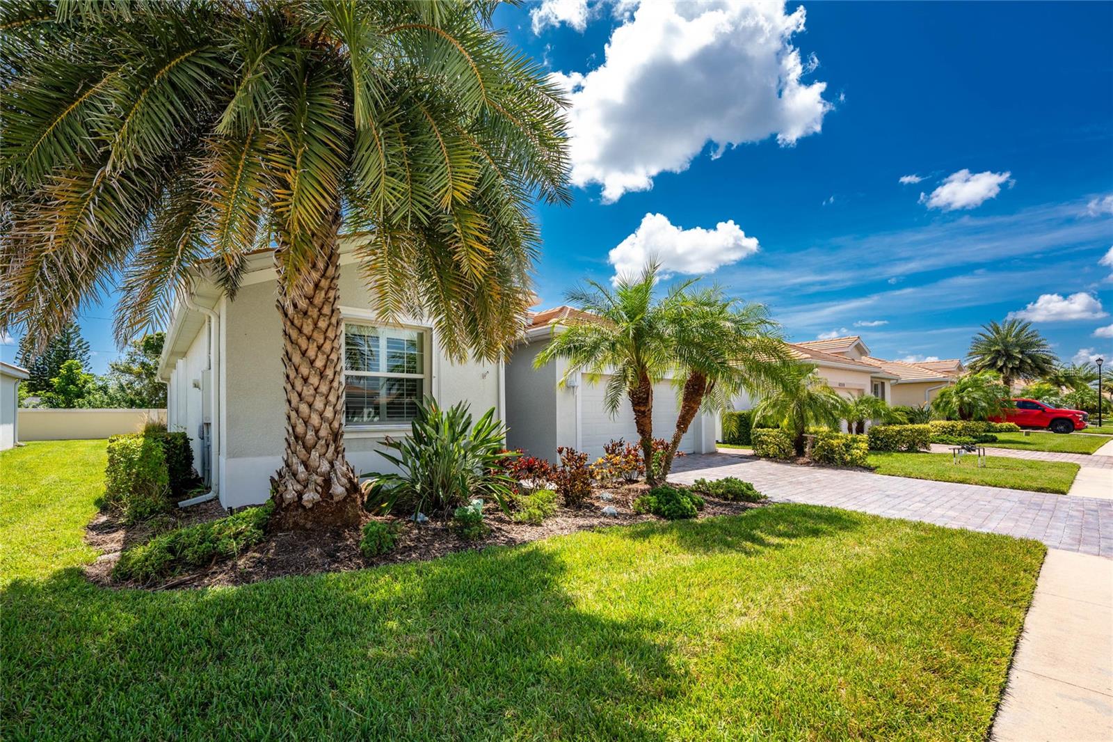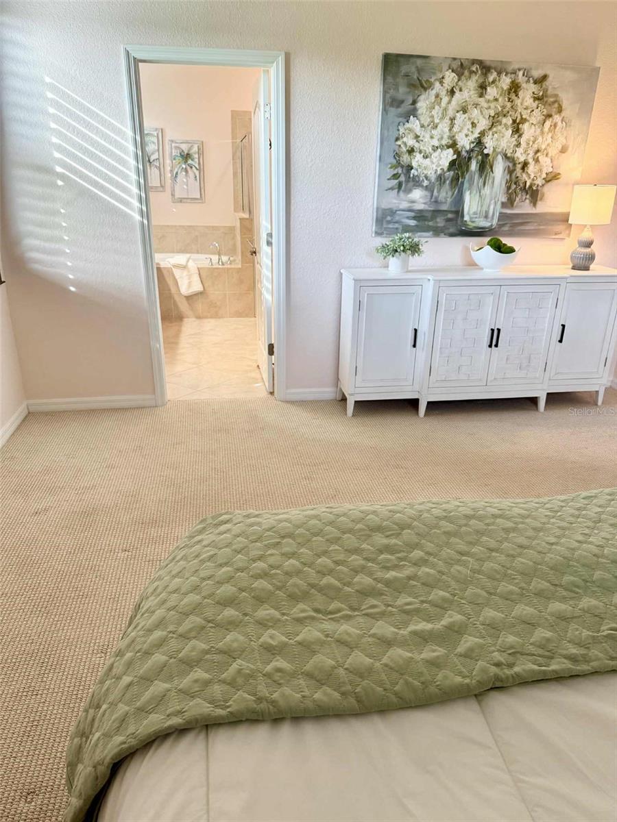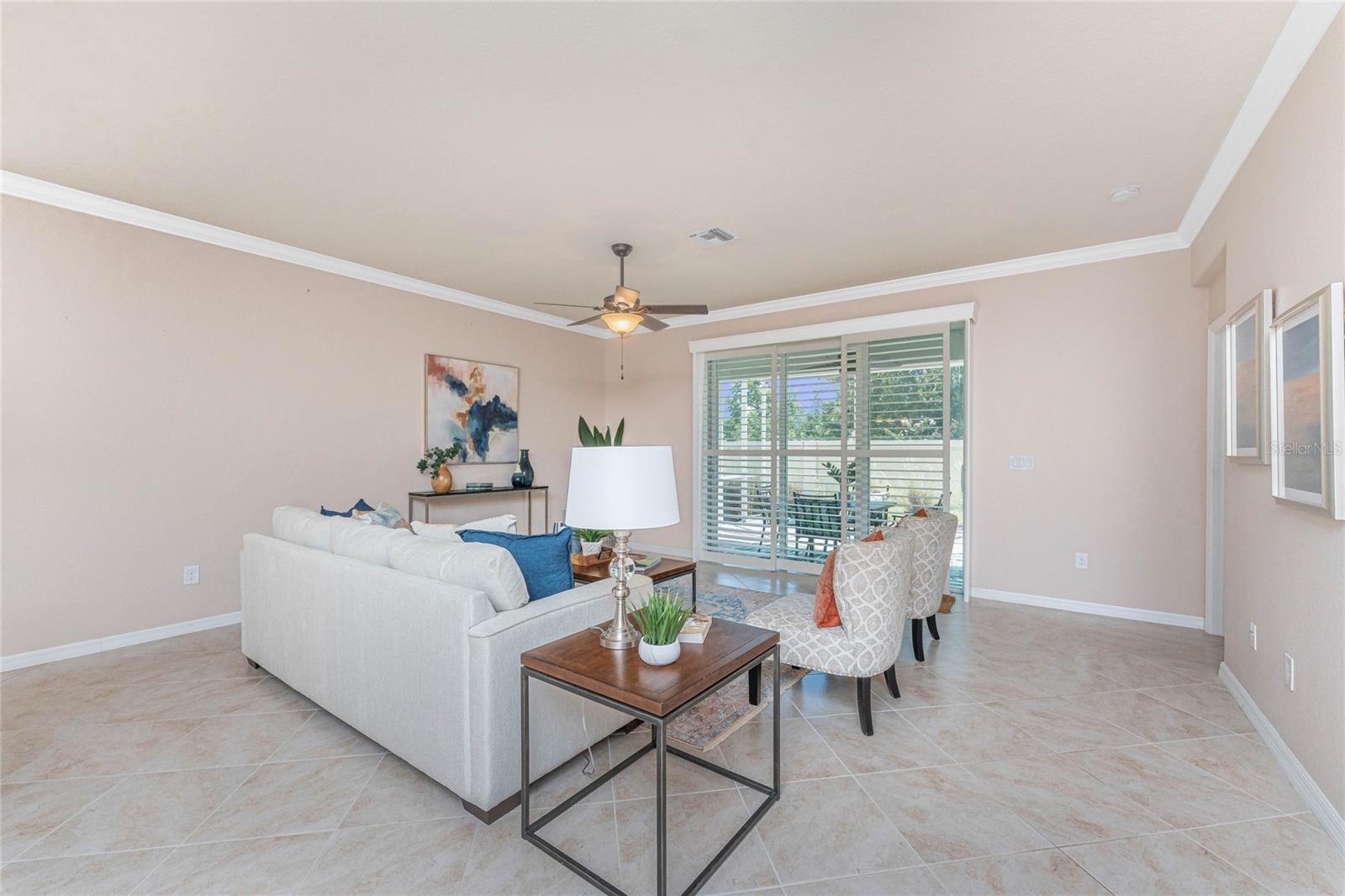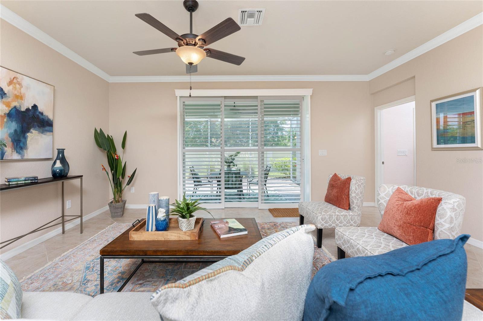THIS HOME OFFERS AN IDEAL BLEND OF MODERN COMFORT AND ELEGANT DESIGN. SPACIOUS TRUE FOUR BEDROOMS, 3 BATHROOMS, 2 CAR GARAGE. From the moment you step through the inviting foyer, you'll be captivated by its charm and functionality. This home boasts great curb appeal with mature landscaping, a tile roof, and a brick paver walkway and paver driveway. The home features fresh interior paint, plantation window shutters, crown molding, and tile flooring. The private, large covered extended and screened lanai (19' x 16'), enhances your outdoor living and is perfect for enjoying your morning coffee or relaxing evenings outdoors. The well-appointed kitchen is designed for entertaining, with its granite countertops, tile back splash, stainless appliances, ample cabinet space, slide-out base cabinet shelving, walk-in pantry, tile flooring, and a spacious food prep island with large sink and counter seating. The split-bedroom design ensures privacy for both owners and guests. The master suite offers: Two walk-in closets, updated carpet flooring, ceiling fan, en-suite master bath with double sinks, walk-in shower, and a soaking tub. This thoughtfully designed home offers a split-bedroom floor plan with 3 full bathrooms, ensuring privacy and convenience for you and your guests. For added guest comfort, BEDROOM 2 FEATURES ITS OWN EN-SUITE FULL BATHROOM, making it ideal for your in-law and visitors. WELCOME to The Villas at Charleston Park, a picturesque community in booming North Port. This meticulously maintained gated community features single-family detached homes, surrounded by lush landscaping, sidewalks, park benches, ponds with lighted fountains, and lantern-lit streetlamps. Whether you're looking for year-round living or seasonal lifestyle, this low-maintenance, secure gated community is perfect for embracing the Florida lifestyle. Enjoy the community amenities, including a tropical resort-style pool, sun deck, patio with tables and umbrellas, and a clubhouse featuring a fitness room, library, billiards room, and organized activities. The community offers a peaceful country setting while being just 10 minutes away from shopping, dining, and entertainment. The community is located near Wellen Park, just 2 miles from the Legacy biking and walking trails, close to multiple golf courses, tropical beaches, public boat launches, and spring training baseball facilities. Convenient access to medical facilities, schools and local amenities. No CDD fees, Flood Zone X, low HOA. This home truly offers the best of Florida living--schedule your showing today!