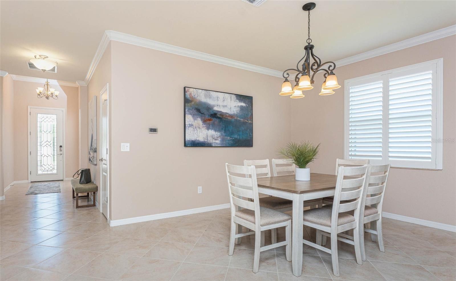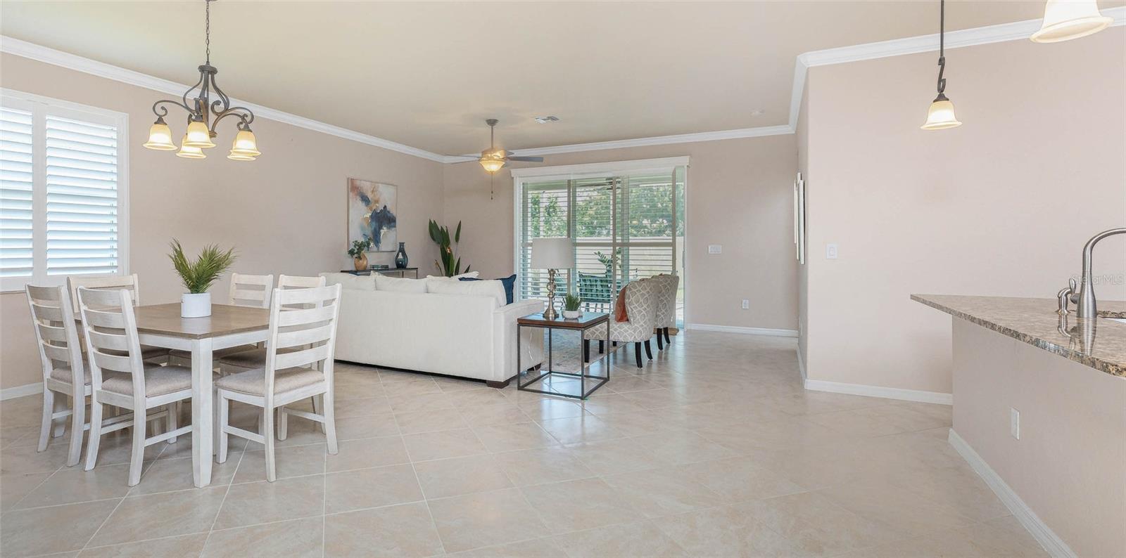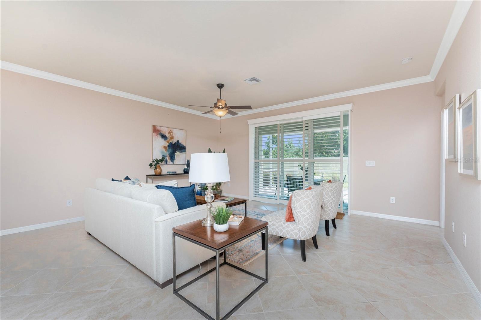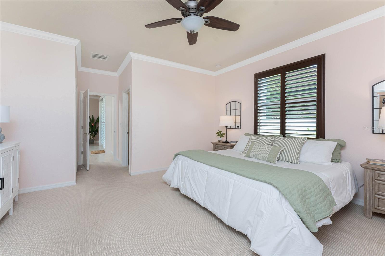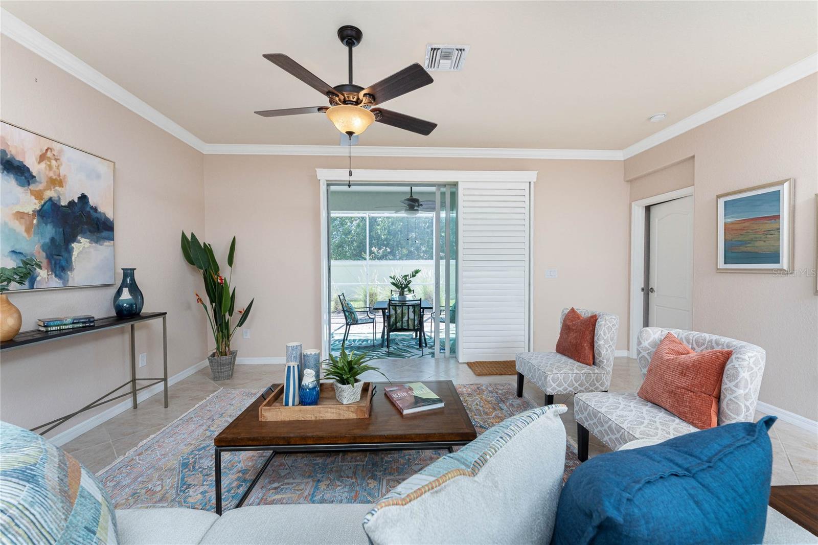 THIS HOME OFFERS AN IDEAL BLEND OF MODERN COMFORT AND ELEGANT DESIGN. SPACIOUS TRUE FOUR BEDROOMS, 3 BATHROOMS, 2 CAR GARAGE. From the moment you step through the inviting foyer, you'll be captivated by its charm and functionality. This home boasts great curb appeal with mature landscaping, a tile roof, and a brick paver walkway and paver driveway. The home features fresh interior paint, plantation window shutters, crown molding, and tile flooring. The private, large covered extended and screened lanai (19' x 16'), enhances your outdoor living and is perfect for enjoying your morning coffee or relaxing evenings outdoors. The well-appointed kitchen is designed for entertaining, with its granite countertops, tile back splash, stainless appliances, ample cabinet space, slide-out base cabinet shelving, walk-in pantry, tile flooring, and a spacious food prep island with large sink and counter seating. The split-bedroom design ensures privacy for both owners and guests. The master suite offers: Two walk-in closets, updated carpet flooring, ceiling fan, en-suite master bath with double sinks, walk-in shower, and a soaking tub. This thoughtfully designed home offers a split-bedroom floor plan with 3 full bathrooms, ensuring privacy and convenience for you and your guests. For added guest comfort, BEDROOM 2 FEATURES ITS OWN EN-SUITE FULL BATHROOM, making it ideal for your in-law and visitors. WELCOME to The Villas at Charleston Park, a picturesque community in booming North Port. This meticulously maintained gated community features single-family detached homes, surrounded by lush landscaping, sidewalks, park benches, ponds with lighted fountains, and lantern-lit streetlamps. Whether you're looking for year-round living or seasonal lifestyle, this low-maintenance, secure gated community is perfect for embracing the Florida lifestyle. Enjoy the community amenities, including a tropical resort-style pool, sun deck, patio with tables and umbrellas, and a clubhouse featuring a fitness room, library, billiards room, and organized activities. The community offers a peaceful country setting while being just 10 minutes away from shopping, dining, and entertainment. The community is located near Wellen Park, just 2 miles from the Legacy biking and walking trails, close to multiple golf courses, tropical beaches, public boat launches, and spring training baseball facilities. Convenient access to medical facilities, schools and local amenities. No CDD fees, Flood Zone X, low HOA. This home truly offers the best of Florida living--schedule your showing today!