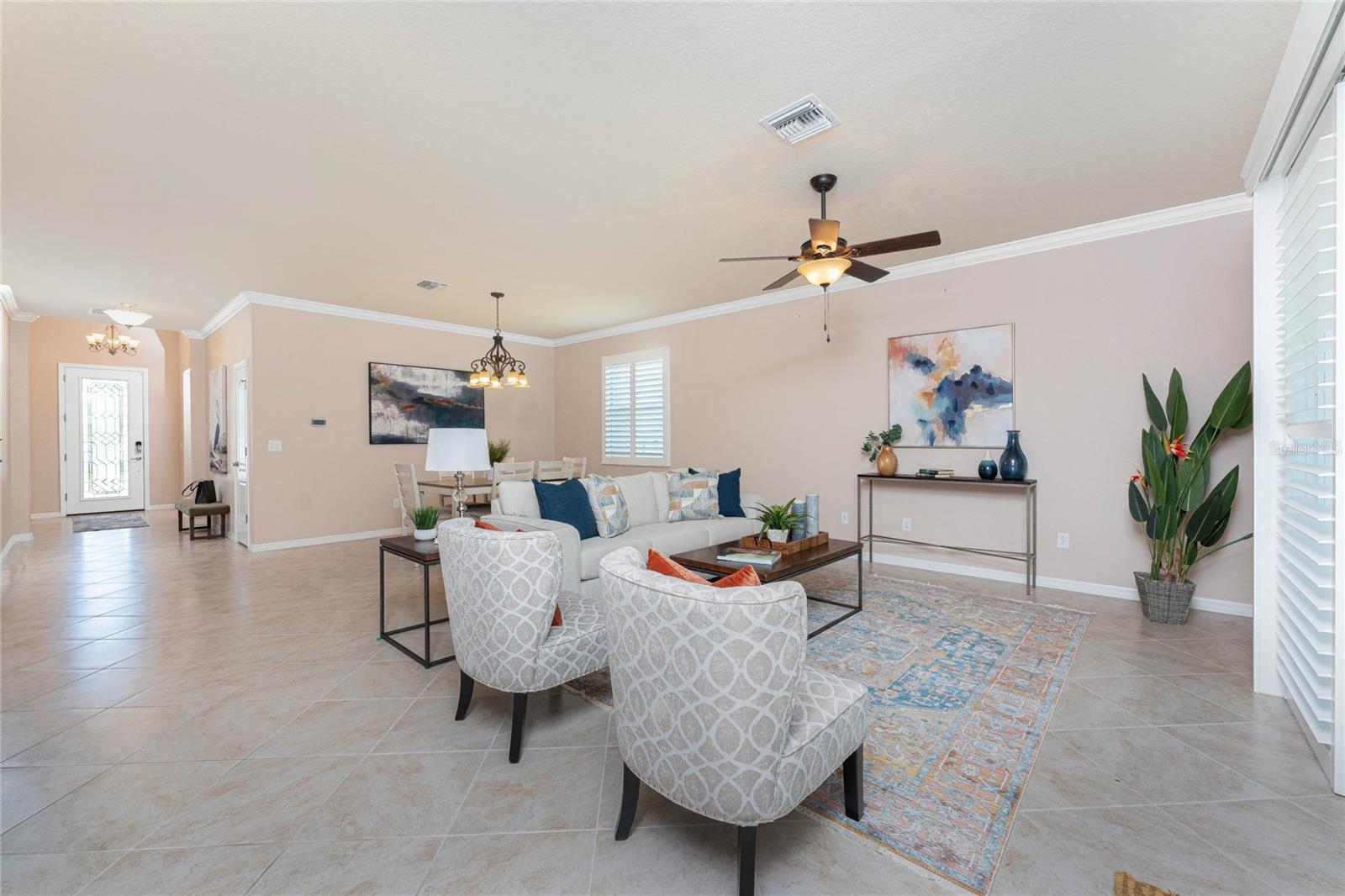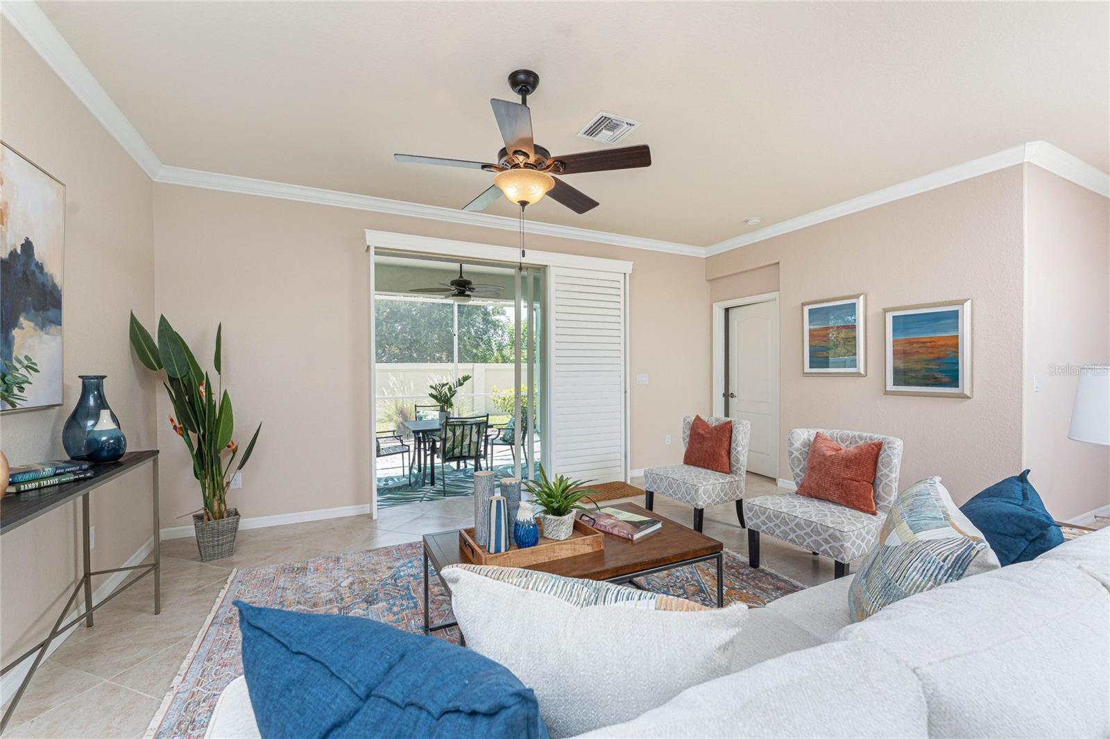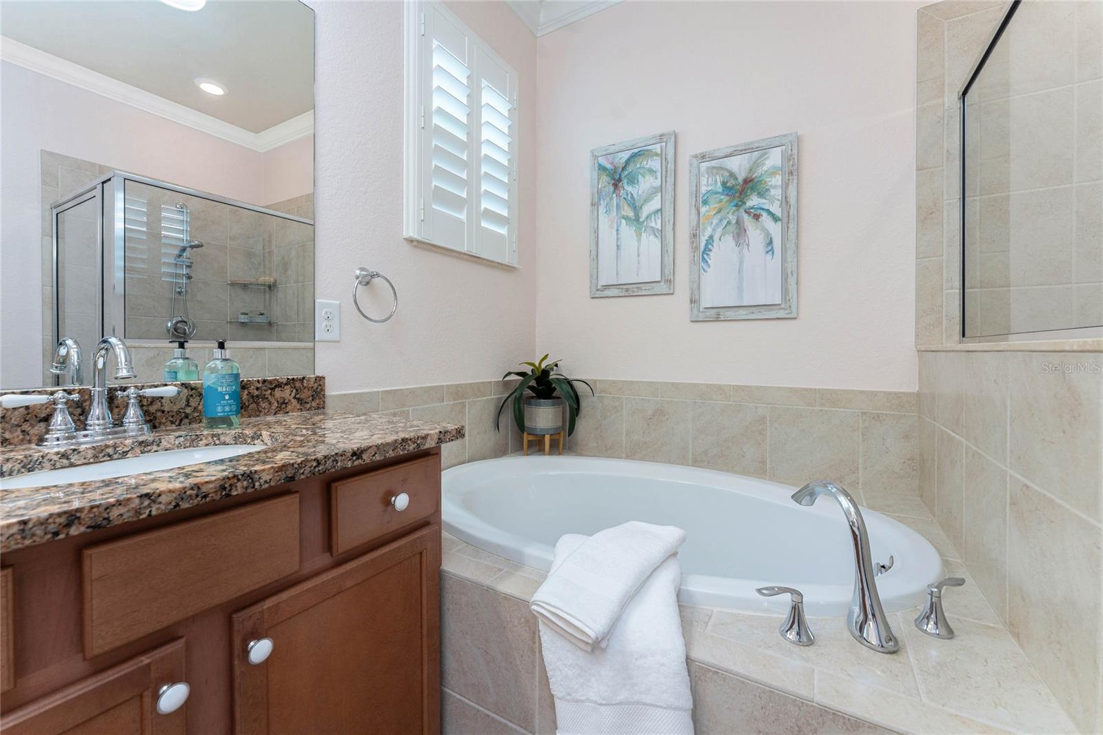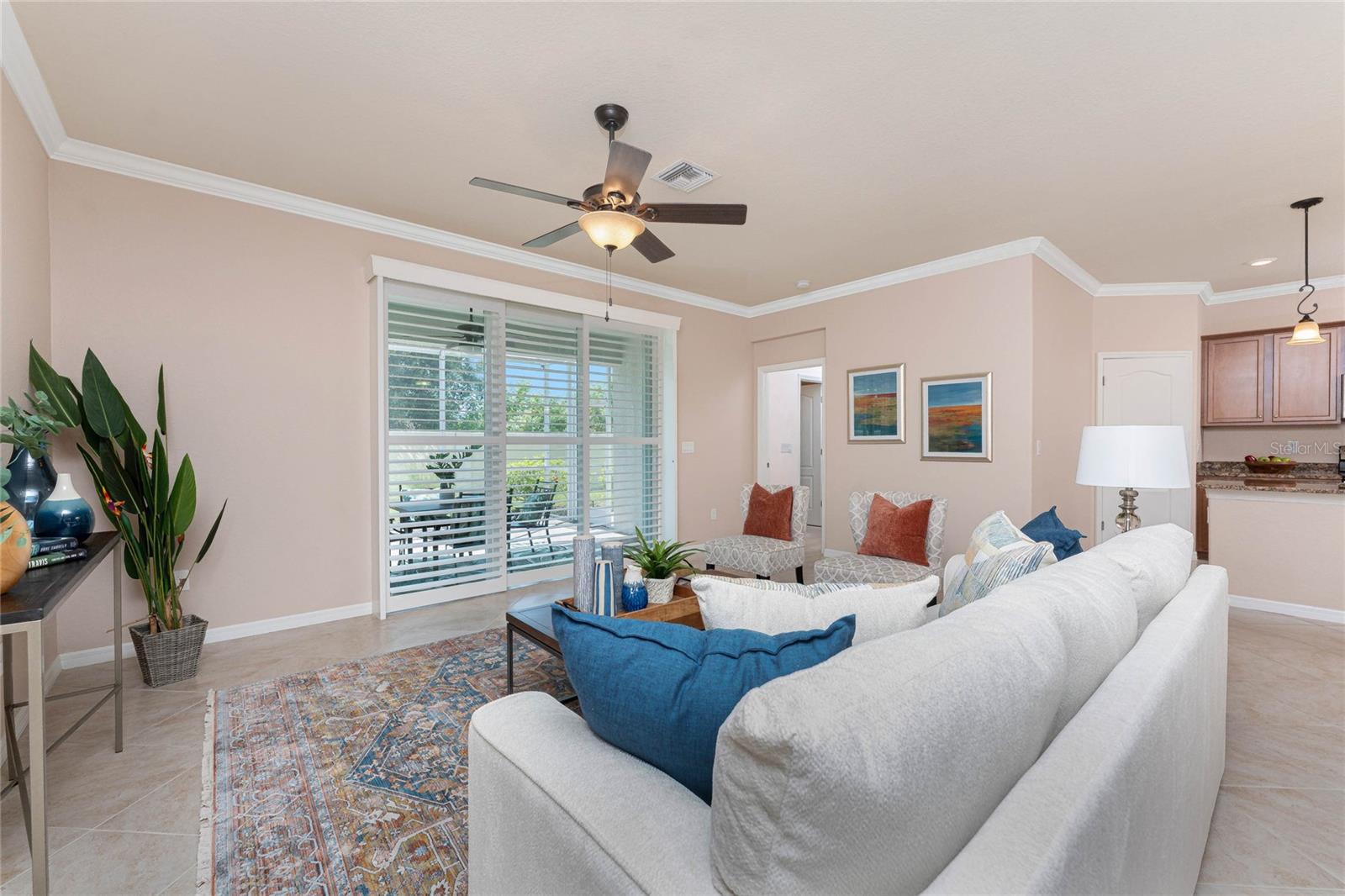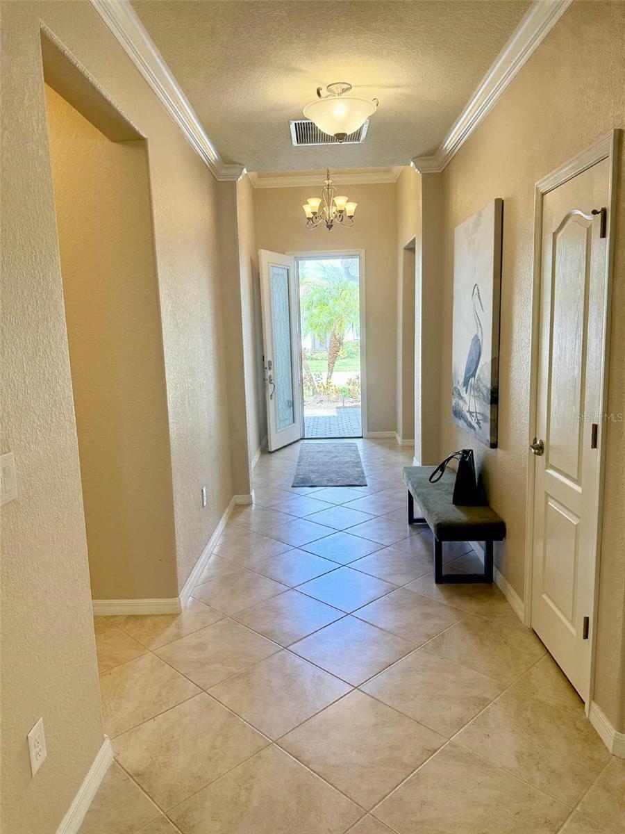THIS HOME OFFERS AN IDEAL BLEND OF MODERN COMFORT AND ELEGANT DESIGN. SPACIOUS TRUE FOUR BEDROOMS, 3 BATHROOMS, 2 CAR GARAGE. From the moment you step through the inviting foyer, you'll be captivated by its charm and functionality. This home boasts great curb appeal with mature landscaping, a tile roof, and a brick paver walkway and paver driveway. The home features fresh interior paint, plantation window shutters, crown molding, and tile flooring. The private, large covered extended and screened lanai (19' x 16'), enhances your outdoor living and is perfect for enjoying your morning coffee or relaxing evenings outdoors. The well-appointed kitchen is designed for entertaining, with its granite countertops, tile back splash, stainless appliances, ample cabinet space, slide-out base cabinet shelving, walk-in pantry, tile flooring, and a spacious food prep island with large sink and counter seating. The split-bedroom design ensures privacy for both owners and guests. The master suite offers: Two walk-in closets, updated carpet flooring, ceiling fan, en-suite master bath with double sinks, walk-in shower, and a soaking tub. This thoughtfully designed home offers a split-bedroom floor plan with 3 full bathrooms, ensuring privacy and convenience for you and your guests. For added guest comfort, BEDROOM 2 FEATURES ITS OWN EN-SUITE FULL BATHROOM, making it ideal for your in-law and visitors. WELCOME to The Villas at Charleston Park, a picturesque community in booming North Port. This meticulously maintained gated community features single-family detached homes, surrounded by lush landscaping, sidewalks, park benches, ponds with lighted fountains, and lantern-lit streetlamps. Whether you're looking for year-round living or seasonal lifestyle, this low-maintenance, secure gated community is perfect for embracing the Florida lifestyle. Enjoy the community amenities, including a tropical resort-style pool, sun deck, patio with tables and umbrellas, and a clubhouse featuring a fitness room, library, billiards room, and organized activities. The community offers a peaceful country setting while being just 10 minutes away from shopping, dining, and entertainment. The community is located near Wellen Park, just 2 miles from the Legacy biking and walking trails, close to multiple golf courses, tropical beaches, public boat launches, and spring training baseball facilities. Convenient access to medical facilities, schools and local amenities. No CDD fees, Flood Zone X, low HOA. This home truly offers the best of Florida living--schedule your showing today!