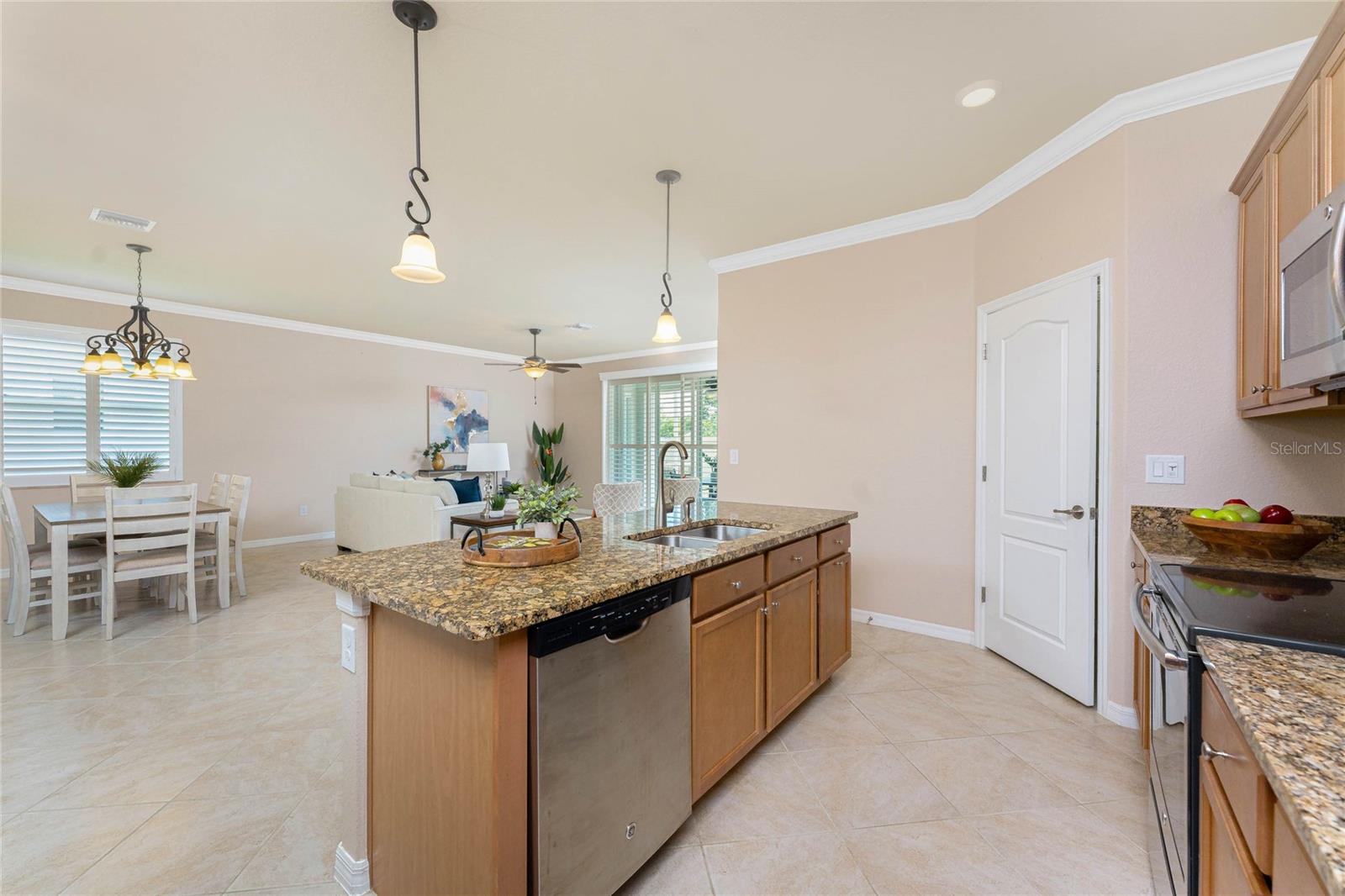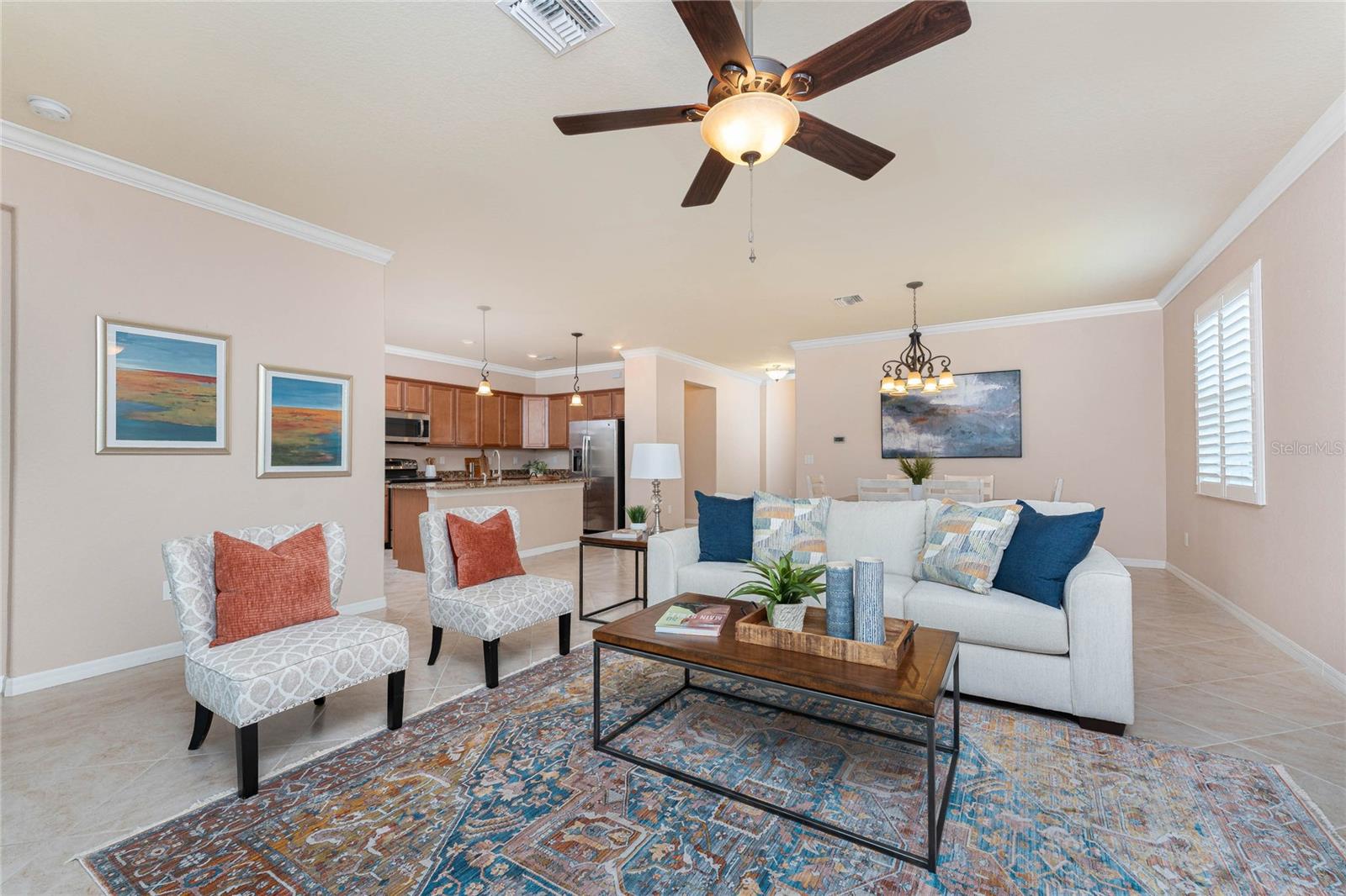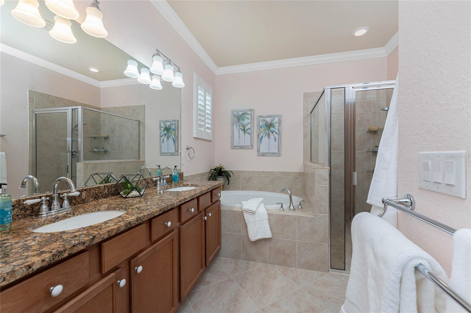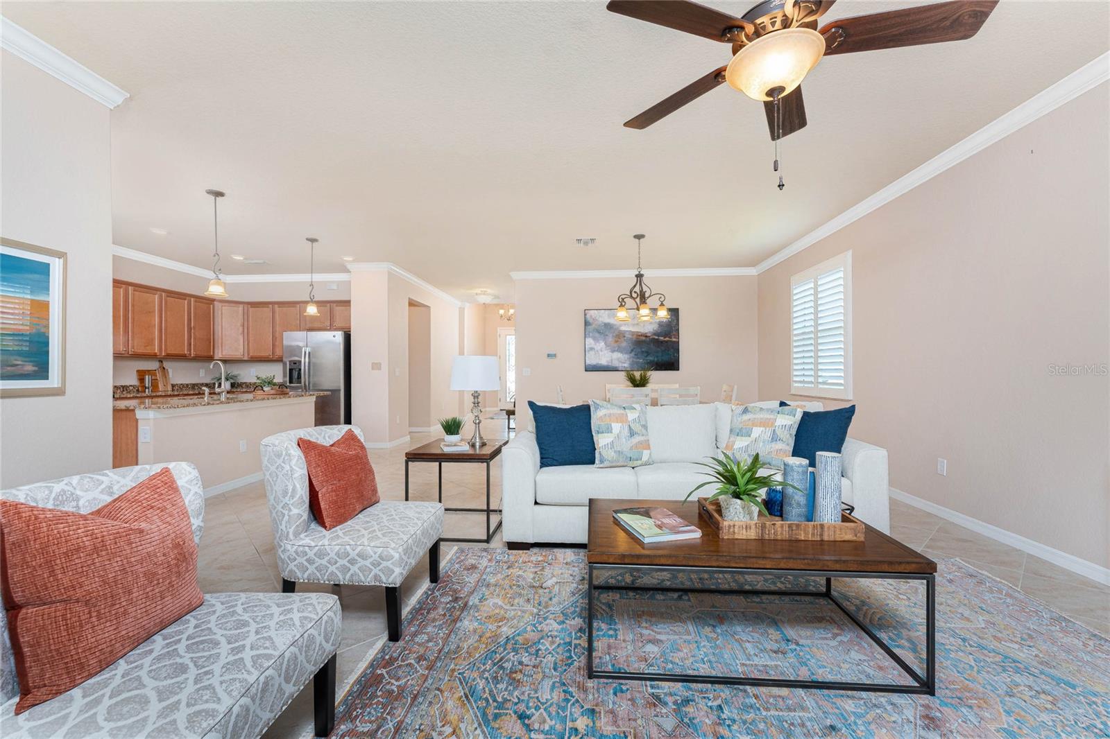 THIS HOME OFFERS AN IDEAL BLEND OF MODERN COMFORT AND ELEGANT DESIGN. SPACIOUS TRUE FOUR BEDROOMS, 3 BATHROOMS, 2 CAR GARAGE. From the moment you step through the inviting foyer, you'll be captivated by its charm and functionality. This home boasts great curb appeal with mature landscaping, a tile roof, and a brick paver walkway and paver driveway. The home features fresh interior paint, plantation window shutters, crown molding, and tile flooring. The private, large covered extended and screened lanai (19' x 16'), enhances your outdoor living and is perfect for enjoying your morning coffee or relaxing evenings outdoors. The well-appointed kitchen is designed for entertaining, with its granite countertops, tile back splash, stainless appliances, ample cabinet space, slide-out base cabinet shelving, walk-in pantry, tile flooring, and a spacious food prep island with large sink and counter seating. The split-bedroom design ensures privacy for both owners and guests. The master suite offers: Two walk-in closets, updated carpet flooring, ceiling fan, en-suite master bath with double sinks, walk-in shower, and a soaking tub. This thoughtfully designed home offers a split-bedroom floor plan with 3 full bathrooms, ensuring privacy and convenience for you and your guests. For added guest comfort, BEDROOM 2 FEATURES ITS OWN EN-SUITE FULL BATHROOM, making it ideal for your in-law and visitors. WELCOME to The Villas at Charleston Park, a picturesque community in booming North Port. This meticulously maintained gated community features single-family detached homes, surrounded by lush landscaping, sidewalks, park benches, ponds with lighted fountains, and lantern-lit streetlamps. Whether you're looking for year-round living or seasonal lifestyle, this low-maintenance, secure gated community is perfect for embracing the Florida lifestyle. Enjoy the community amenities, including a tropical resort-style pool, sun deck, patio with tables and umbrellas, and a clubhouse featuring a fitness room, library, billiards room, and organized activities. The community offers a peaceful country setting while being just 10 minutes away from shopping, dining, and entertainment. The community is located near Wellen Park, just 2 miles from the Legacy biking and walking trails, close to multiple golf courses, tropical beaches, public boat launches, and spring training baseball facilities. Convenient access to medical facilities, schools and local amenities. No CDD fees, Flood Zone X, low HOA. This home truly offers the best of Florida living--schedule your showing today!