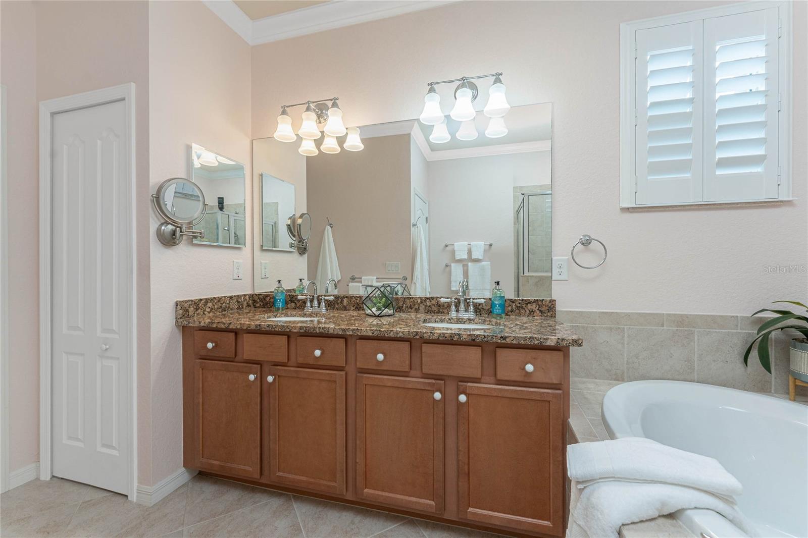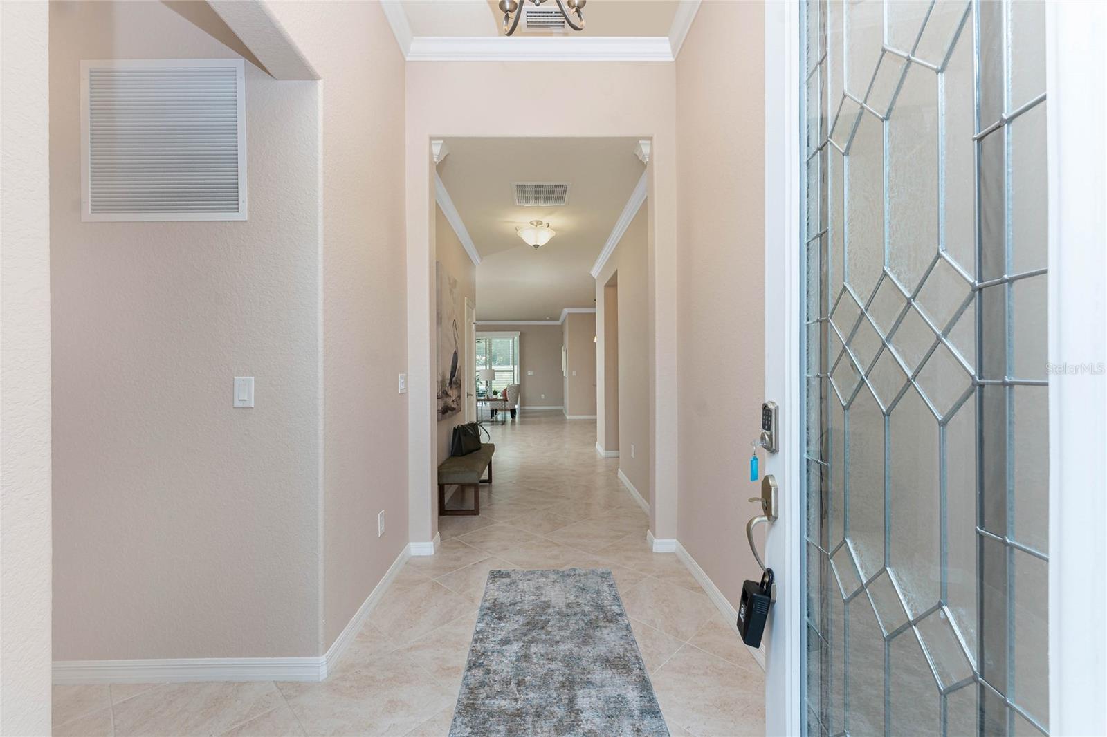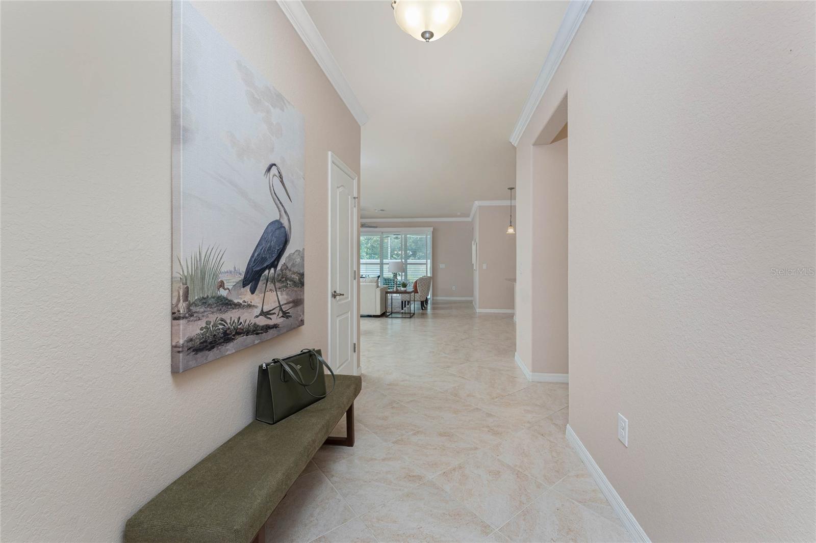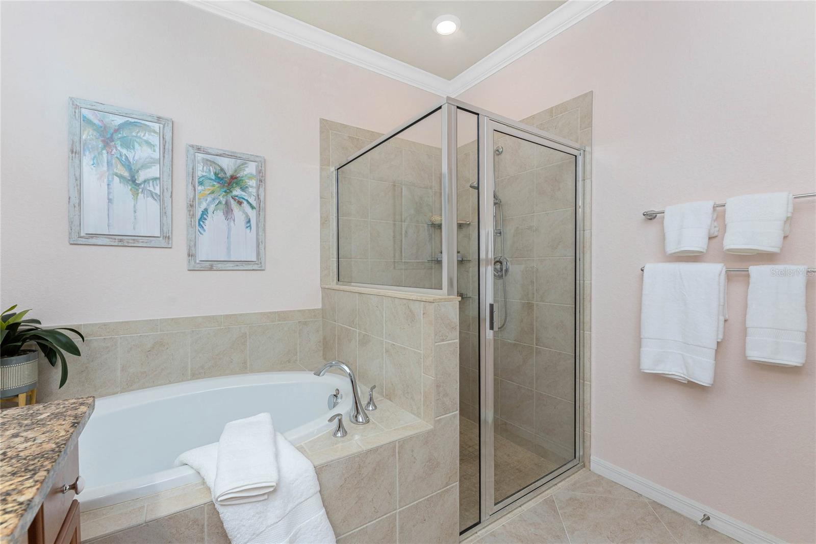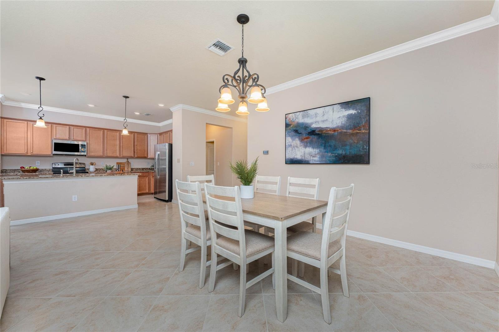 THIS HOME OFFERS AN IDEAL BLEND OF MODERN COMFORT AND ELEGANT DESIGN. SPACIOUS TRUE FOUR BEDROOMS, 3 BATHROOMS, 2 CAR GARAGE. From the moment you step through the inviting foyer, you'll be captivated by its charm and functionality. This home boasts great curb appeal with mature landscaping, a tile roof, and a brick paver walkway and paver driveway. The home features fresh interior paint, plantation window shutters, crown molding, and tile flooring. The private, large covered extended and screened lanai (19' x 16'), enhances your outdoor living and is perfect for enjoying your morning coffee or relaxing evenings outdoors. The well-appointed kitchen is designed for entertaining, with its granite countertops, tile back splash, stainless appliances, ample cabinet space, slide-out base cabinet shelving, walk-in pantry, tile flooring, and a spacious food prep island with large sink and counter seating. The split-bedroom design ensures privacy for both owners and guests. The master suite offers: Two walk-in closets, updated carpet flooring, ceiling fan, en-suite master bath with double sinks, walk-in shower, and a soaking tub. This thoughtfully designed home offers a split-bedroom floor plan with 3 full bathrooms, ensuring privacy and convenience for you and your guests. For added guest comfort, BEDROOM 2 FEATURES ITS OWN EN-SUITE FULL BATHROOM, making it ideal for your in-law and visitors. WELCOME to The Villas at Charleston Park, a picturesque community in booming North Port. This meticulously maintained gated community features single-family detached homes, surrounded by lush landscaping, sidewalks, park benches, ponds with lighted fountains, and lantern-lit streetlamps. Whether you're looking for year-round living or seasonal lifestyle, this low-maintenance, secure gated community is perfect for embracing the Florida lifestyle. Enjoy the community amenities, including a tropical resort-style pool, sun deck, patio with tables and umbrellas, and a clubhouse featuring a fitness room, library, billiards room, and organized activities. The community offers a peaceful country setting while being just 10 minutes away from shopping, dining, and entertainment. The community is located near Wellen Park, just 2 miles from the Legacy biking and walking trails, close to multiple golf courses, tropical beaches, public boat launches, and spring training baseball facilities. Convenient access to medical facilities, schools and local amenities. No CDD fees, Flood Zone X, low HOA. This home truly offers the best of Florida living--schedule your showing today!