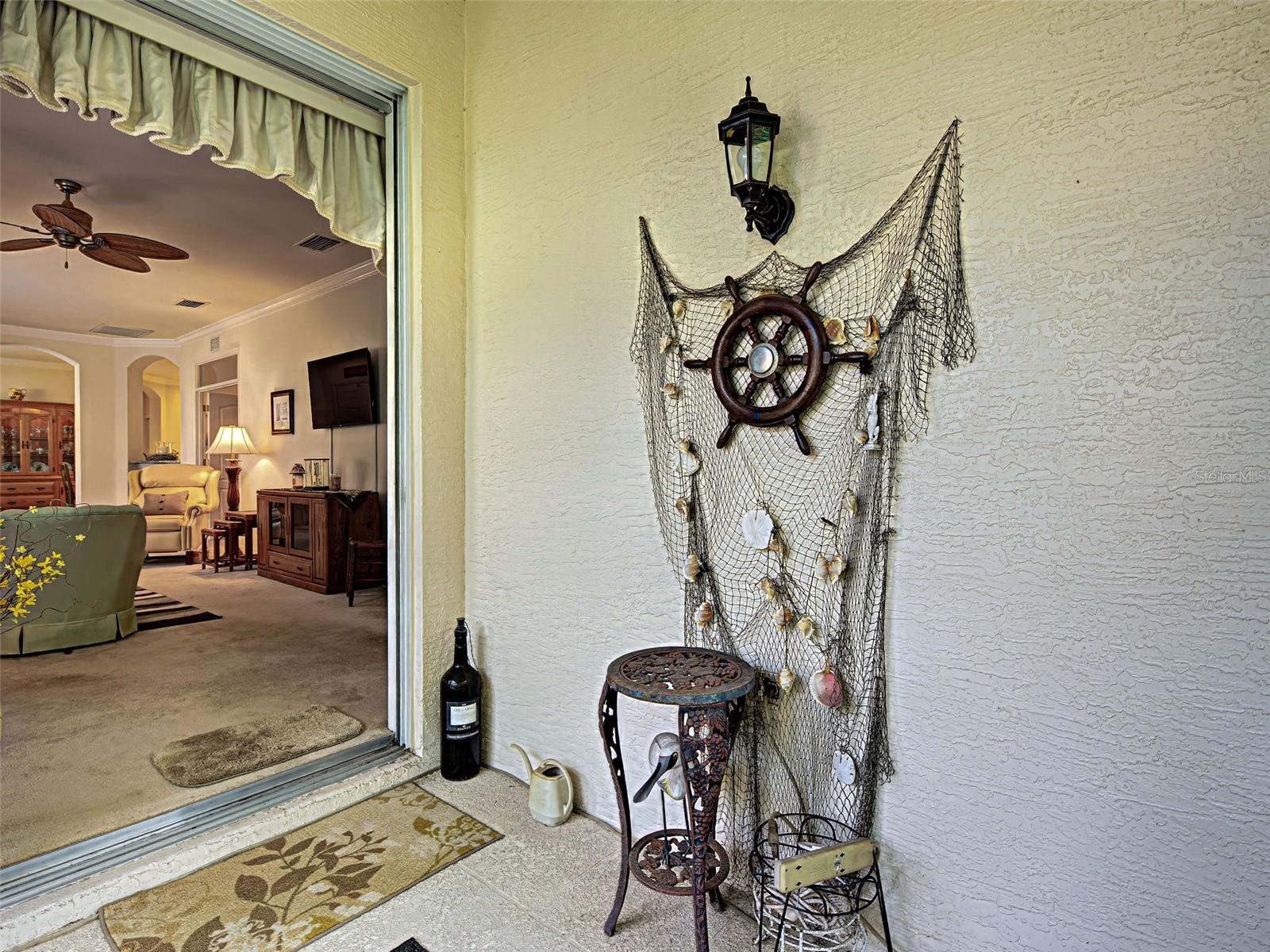Exterior: Lighting, Rain Gutters, Sidewalk, Sliding Doors