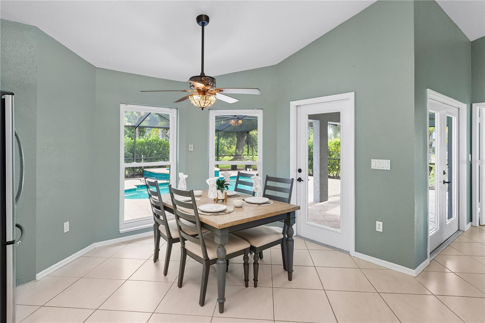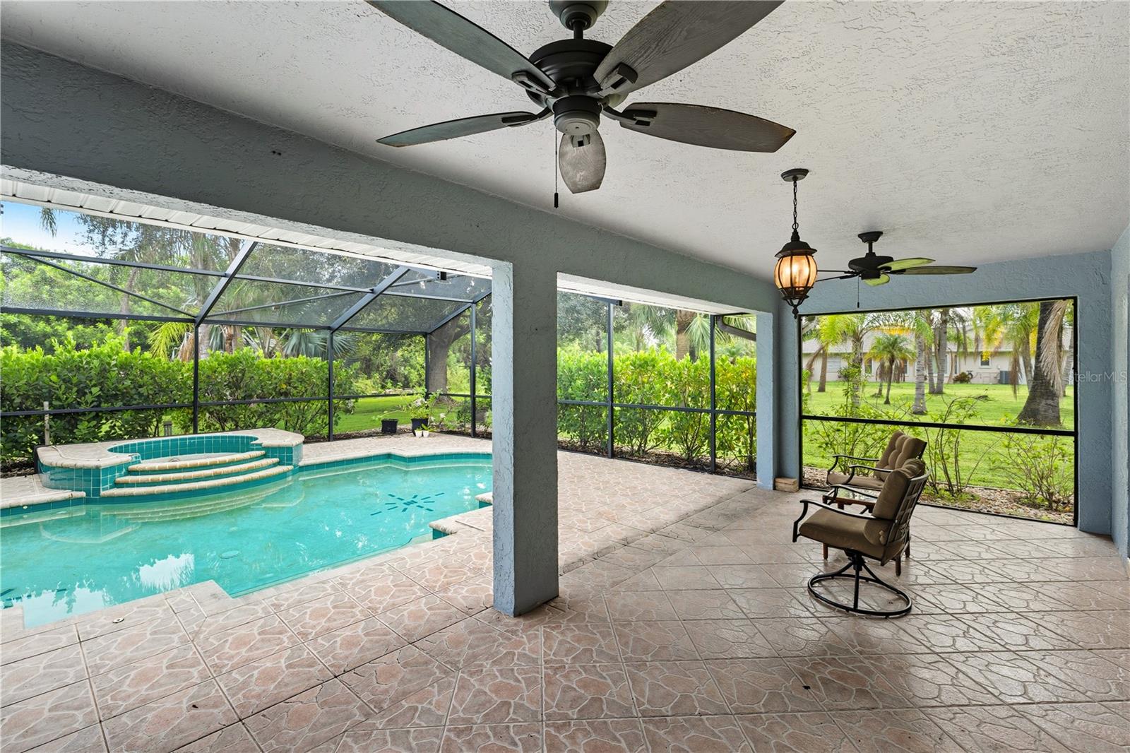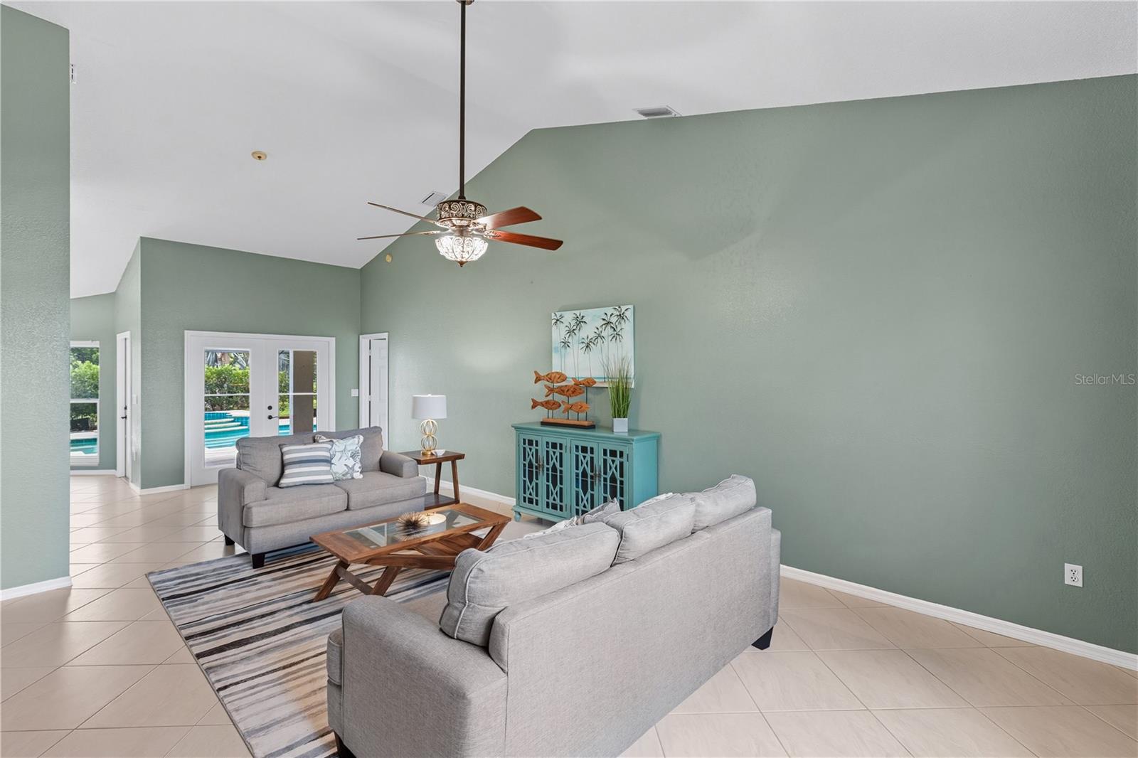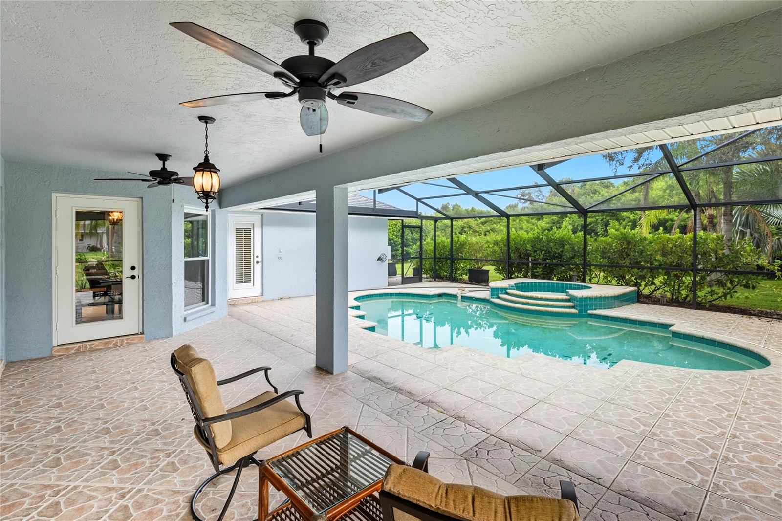 Welcome to this BEAUTIFUL 3-bedroom, 2-bathroom, 2-car garage, pool home located in the desirable Deep Creek community of Punta Gorda. CLICK ON THE VIRTUAL TOUR LINK 1 FOR THE VIDEO AND VIRTUAL LINK 2 FOR THE 3D TOUR. The French door entry opens to a welcoming foyer and a bright floor plan with high vaulted ceilings, and plenty of natural light, creating a spacious and airy feel. The living and dining room flow seamlessly to the kitchen, perfect for entertaining. The eat-in kitchen features granite countertops, stainless steel appliances, including a double oven, a built-in desk, and an abundance of cabinet and counter space. Just off the kitchen, the family room provides additional living space to relax or host guests. The expansive master suite is a true retreat with French doors leading to the lanai, a walk-in closet, and a spa-like private bathroom offering a dual sink vanity with makeup space, a jetted jacuzzi tub, and a walk-in shower with dual shower heads. Guest bedrooms are on a split floor plan, providing plenty of privacy, each with walk-in closets and easy access to the shared guest bath, complete with a dual sink vanity, walk-in shower, and convenient pool access. Step outside to your private oasis featuring a spacious screened lanai, heated pool and spa, outdoor shower, and plenty of room for lounging or entertaining. Surrounded by lush landscaping, this backyard is designed for both privacy and relaxation. Deep Creek is a deed-restricted neighborhood with amenities including Deep Creek Social Club, Deep Creek Park, featuring a playground, tennis courts, basketball courts, and Deep Creek Golf Course, just a couple of miles down the road --perfect for staying active or spending time outdoors. Easy access to local favorites such as Fishermen's Village, Ponce De Leon Park, shopping & boutiques, fine & casual dining, LIVE entertainment, and a short drive to local beaches.*Adjacent lot is available for purchase, Taxes reflect both properties, will be split and reassessed after closing*