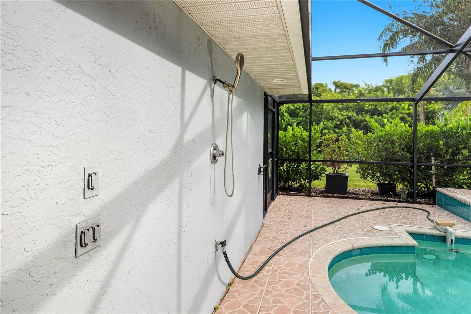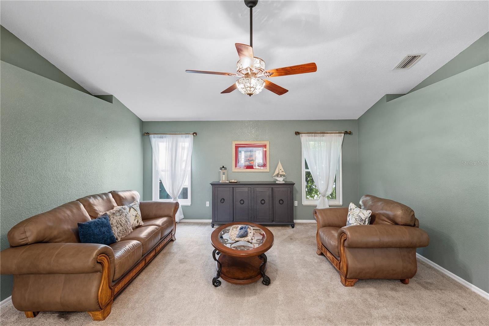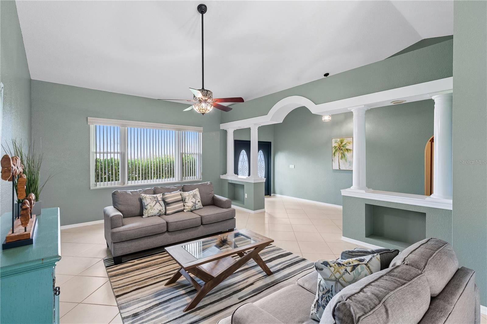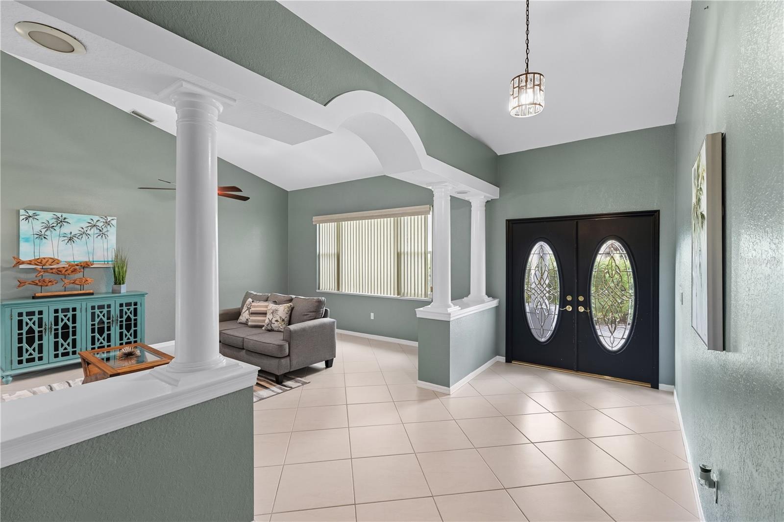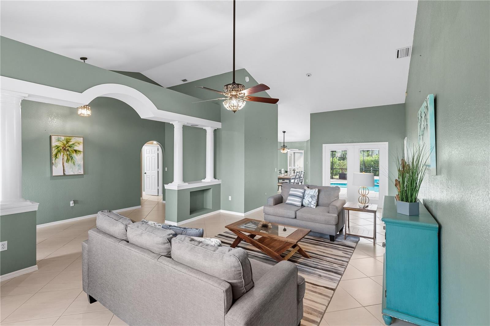 Welcome to this BEAUTIFUL 3-bedroom, 2-bathroom, 2-car garage, pool home located in the desirable Deep Creek community of Punta Gorda. CLICK ON THE VIRTUAL TOUR LINK 1 FOR THE VIDEO AND VIRTUAL LINK 2 FOR THE 3D TOUR. The French door entry opens to a welcoming foyer and a bright floor plan with high vaulted ceilings, and plenty of natural light, creating a spacious and airy feel. The living and dining room flow seamlessly to the kitchen, perfect for entertaining. The eat-in kitchen features granite countertops, stainless steel appliances, including a double oven, a built-in desk, and an abundance of cabinet and counter space. Just off the kitchen, the family room provides additional living space to relax or host guests. The expansive master suite is a true retreat with French doors leading to the lanai, a walk-in closet, and a spa-like private bathroom offering a dual sink vanity with makeup space, a jetted jacuzzi tub, and a walk-in shower with dual shower heads. Guest bedrooms are on a split floor plan, providing plenty of privacy, each with walk-in closets and easy access to the shared guest bath, complete with a dual sink vanity, walk-in shower, and convenient pool access. Step outside to your private oasis featuring a spacious screened lanai, heated pool and spa, outdoor shower, and plenty of room for lounging or entertaining. Surrounded by lush landscaping, this backyard is designed for both privacy and relaxation. Deep Creek is a deed-restricted neighborhood with amenities including Deep Creek Social Club, Deep Creek Park, featuring a playground, tennis courts, basketball courts, and Deep Creek Golf Course, just a couple of miles down the road --perfect for staying active or spending time outdoors. Easy access to local favorites such as Fishermen's Village, Ponce De Leon Park, shopping & boutiques, fine & casual dining, LIVE entertainment, and a short drive to local beaches.*Adjacent lot is available for purchase, Taxes reflect both properties, will be split and reassessed after closing*