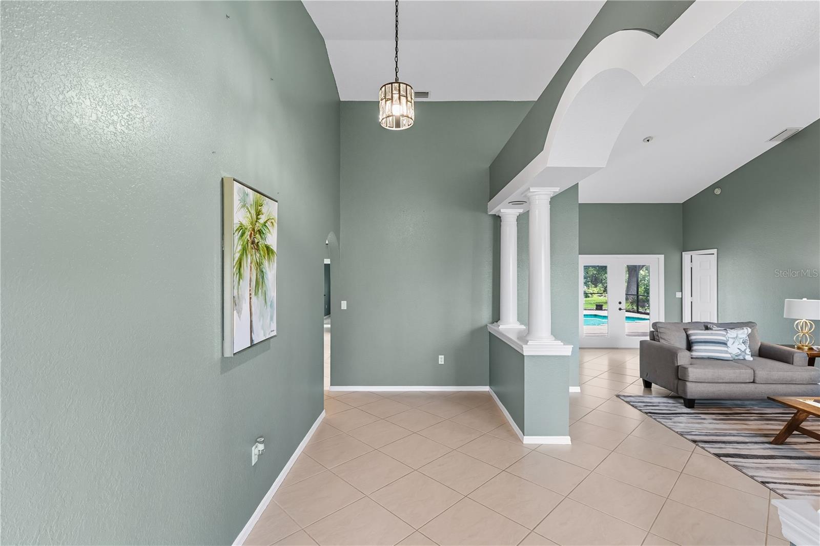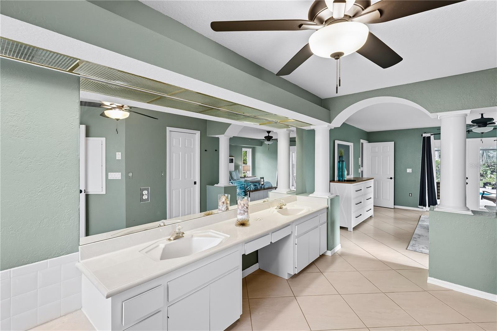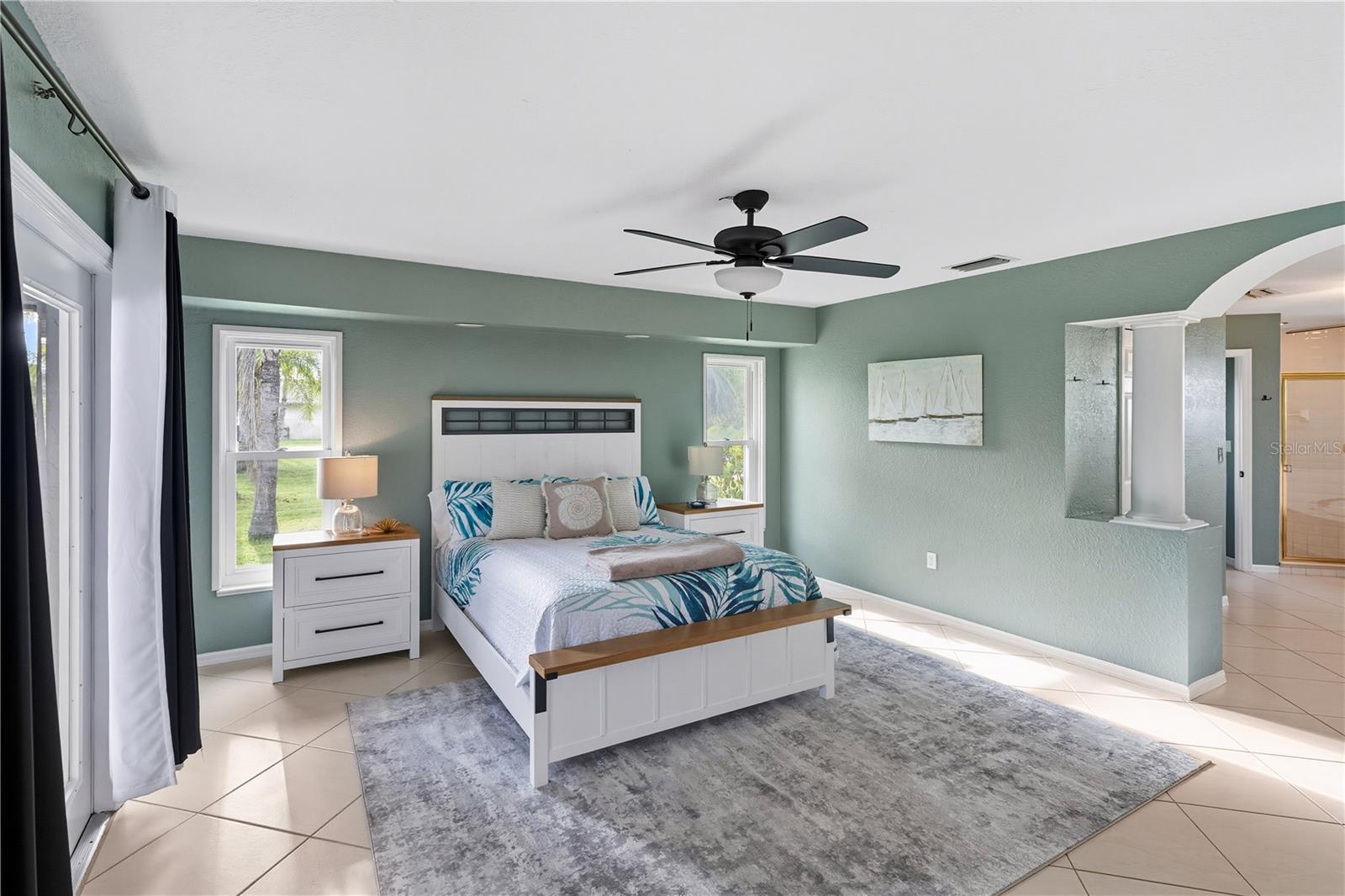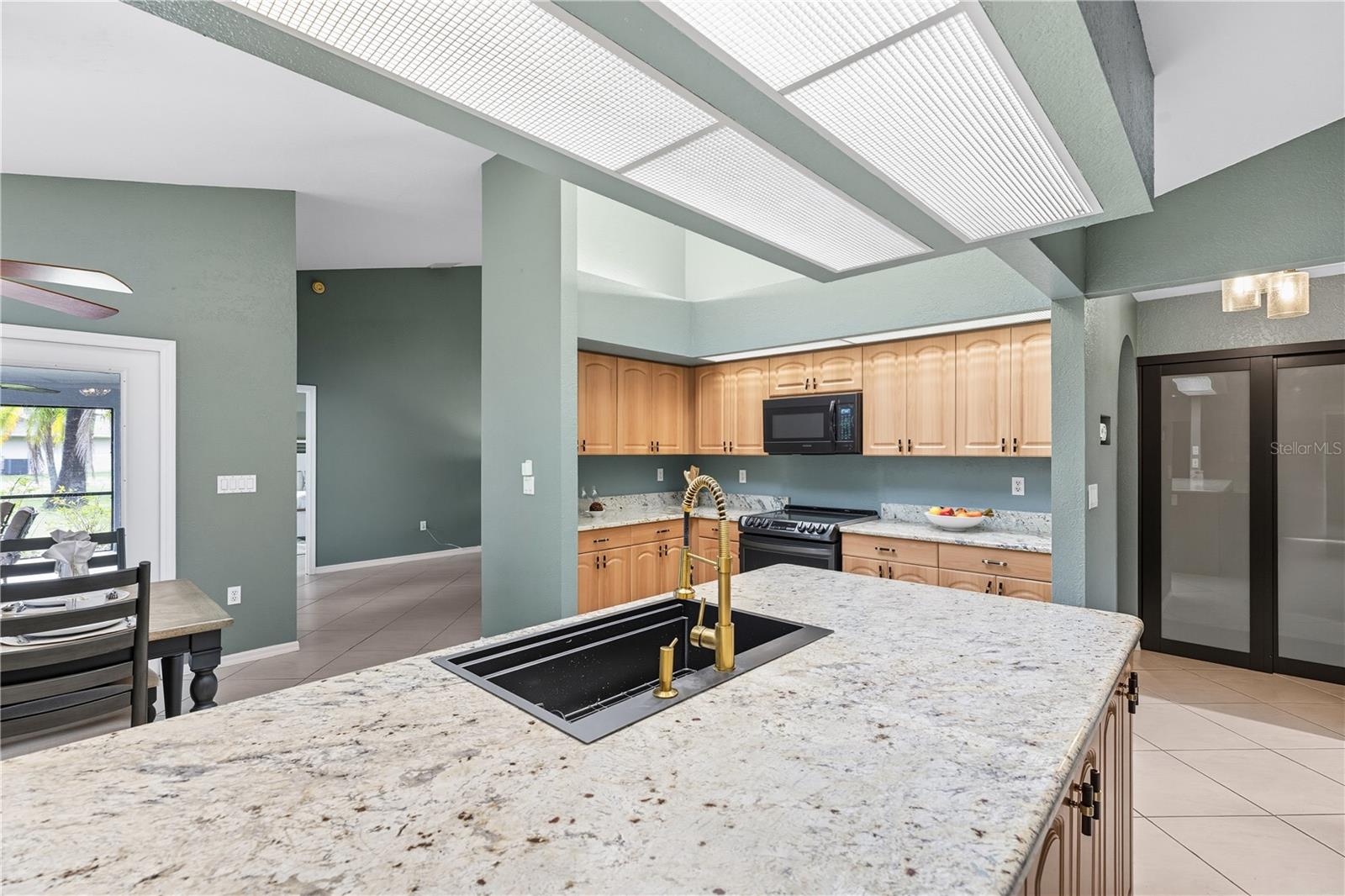 Welcome to this BEAUTIFUL 3-bedroom, 2-bathroom, 2-car garage, pool home located in the desirable Deep Creek community of Punta Gorda. CLICK ON THE VIRTUAL TOUR LINK 1 FOR THE VIDEO AND VIRTUAL LINK 2 FOR THE 3D TOUR. The French door entry opens to a welcoming foyer and a bright floor plan with high vaulted ceilings, and plenty of natural light, creating a spacious and airy feel. The living and dining room flow seamlessly to the kitchen, perfect for entertaining. The eat-in kitchen features granite countertops, stainless steel appliances, including a double oven, a built-in desk, and an abundance of cabinet and counter space. Just off the kitchen, the family room provides additional living space to relax or host guests. The expansive master suite is a true retreat with French doors leading to the lanai, a walk-in closet, and a spa-like private bathroom offering a dual sink vanity with makeup space, a jetted jacuzzi tub, and a walk-in shower with dual shower heads. Guest bedrooms are on a split floor plan, providing plenty of privacy, each with walk-in closets and easy access to the shared guest bath, complete with a dual sink vanity, walk-in shower, and convenient pool access. Step outside to your private oasis featuring a spacious screened lanai, heated pool and spa, outdoor shower, and plenty of room for lounging or entertaining. Surrounded by lush landscaping, this backyard is designed for both privacy and relaxation. Deep Creek is a deed-restricted neighborhood with amenities including Deep Creek Social Club, Deep Creek Park, featuring a playground, tennis courts, basketball courts, and Deep Creek Golf Course, just a couple of miles down the road --perfect for staying active or spending time outdoors. Easy access to local favorites such as Fishermen's Village, Ponce De Leon Park, shopping & boutiques, fine & casual dining, LIVE entertainment, and a short drive to local beaches.*Adjacent lot is available for purchase, Taxes reflect both properties, will be split and reassessed after closing*