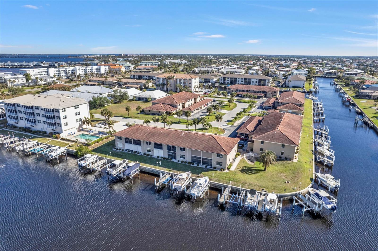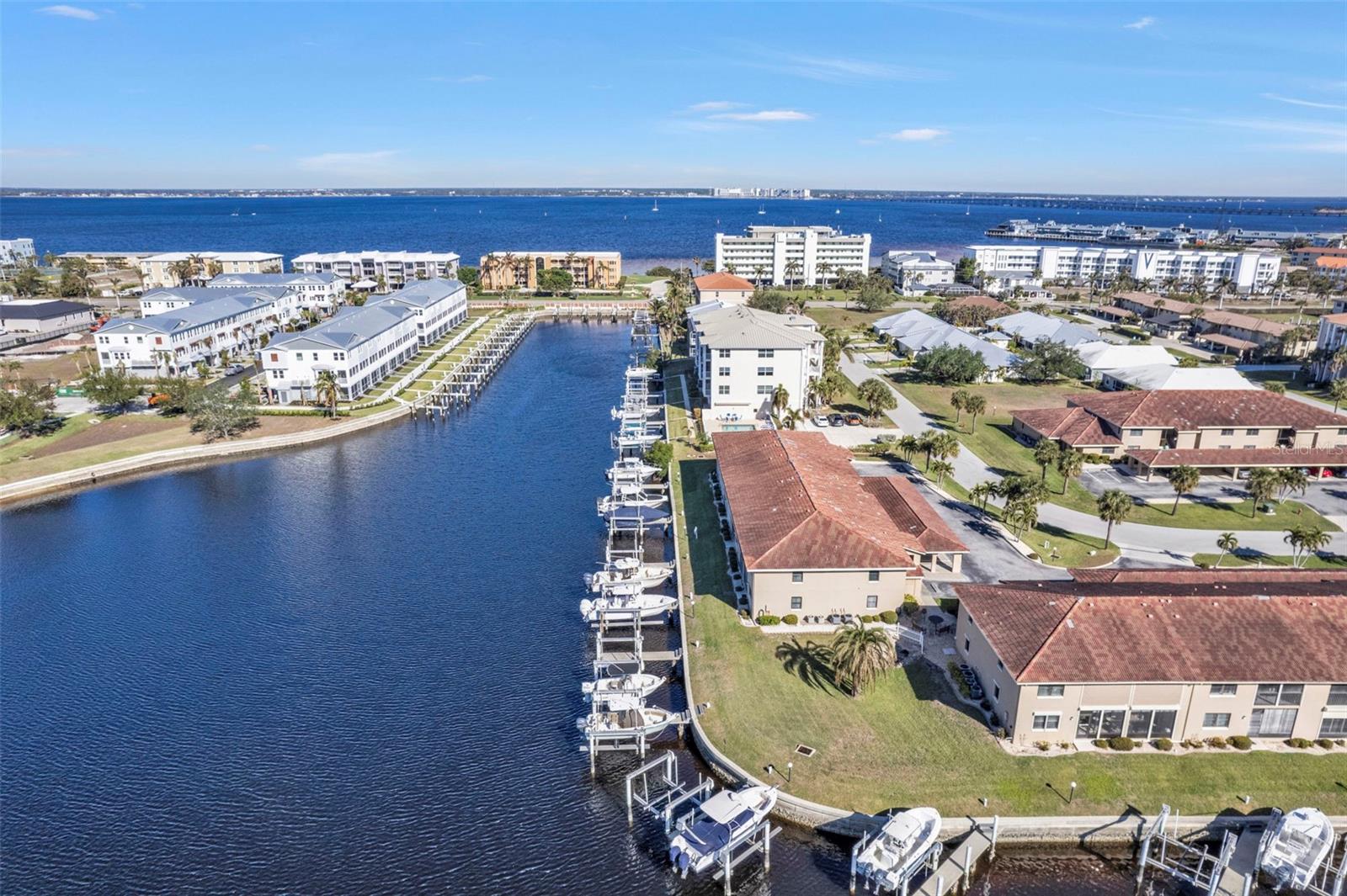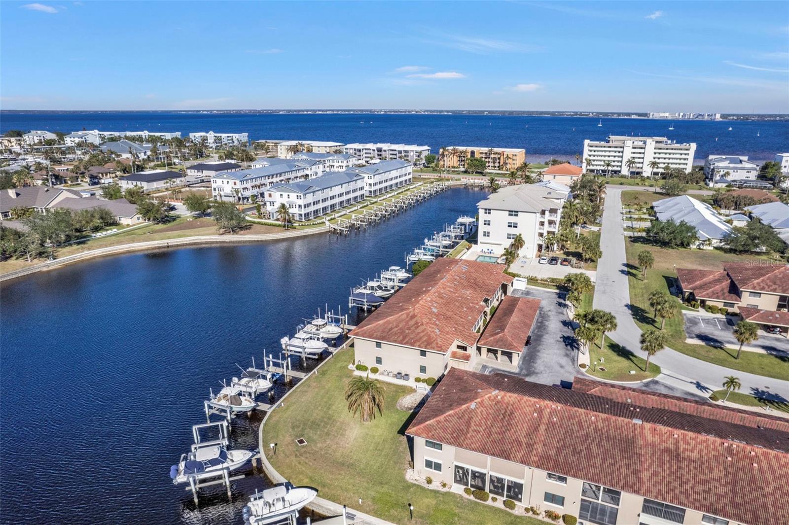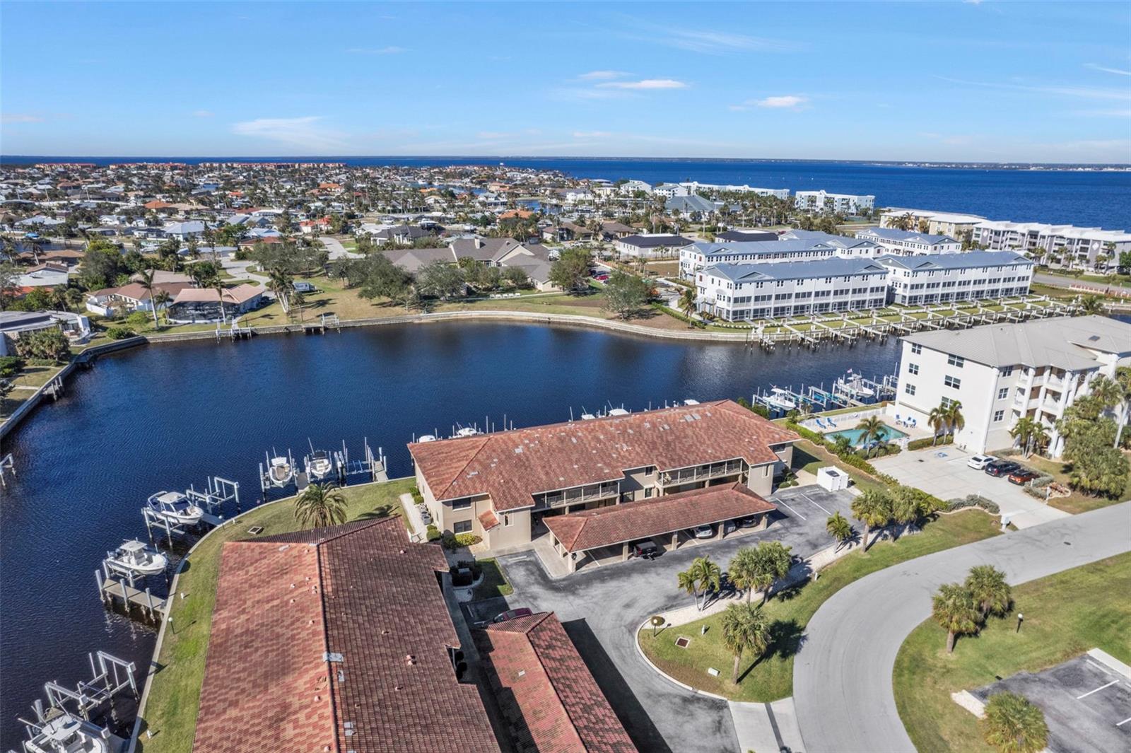 Ground level (NO STEPS), 2 bedroom, 2 bathroom split floor plan COMPLETELY UPDATED, with a DEEDED BOAT SLIP, concrete dock and 10,000 pound BOAT LIFT with remote outside your back lanai door. NO PET RESTRICTIONS FOR OWNERS. This home is setup as a SMART HOME to control your keyless front door lock and Nest thermostat remotely. All brand new LUXURY VINYL FLOORING, interior paint, cabinets, sinks, countertops, toilets, lighting, and ceiling fans. The great room is connected to the lanai that has two sliders (one from the great room and the other from the master bedroom) to access Florida lifestyle living. The master bathroom has a walk in shower. The lanai has an OVERSIZED DOUBLE DOOR FROM FLOOR TO CEILING STORAGE SPACE that is three feet deep for ample storage. The laundry room has plenty of storage and a full size washer and dryer. The condo has HURRICANE SHUTTERS for all windows and a motorized shutter for the lanai. There is a deeded CARPORT steps away from your front door for added convenience. The complex has a NEW METAL ROOF and NO ASSESSMENTS. WATER IS INCLUDED in your HOA monthly billing. There is a community area that has a sitting space with a grill to cook your favorite foods on. Sea Isles is situated in a prime location with a short walk to Fisherman's Village and downtown Punta Gorda. HOUNDS ON HENRY DOG PARK is less than a mile down the road. Plenty of walking and biking trails surrounding the area. Concrete sea walls are maintained by the City of Punta Gorda. The water out time by power boat is just a few minutes to Charlotte Harbor.