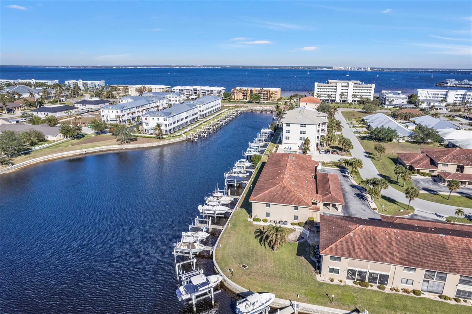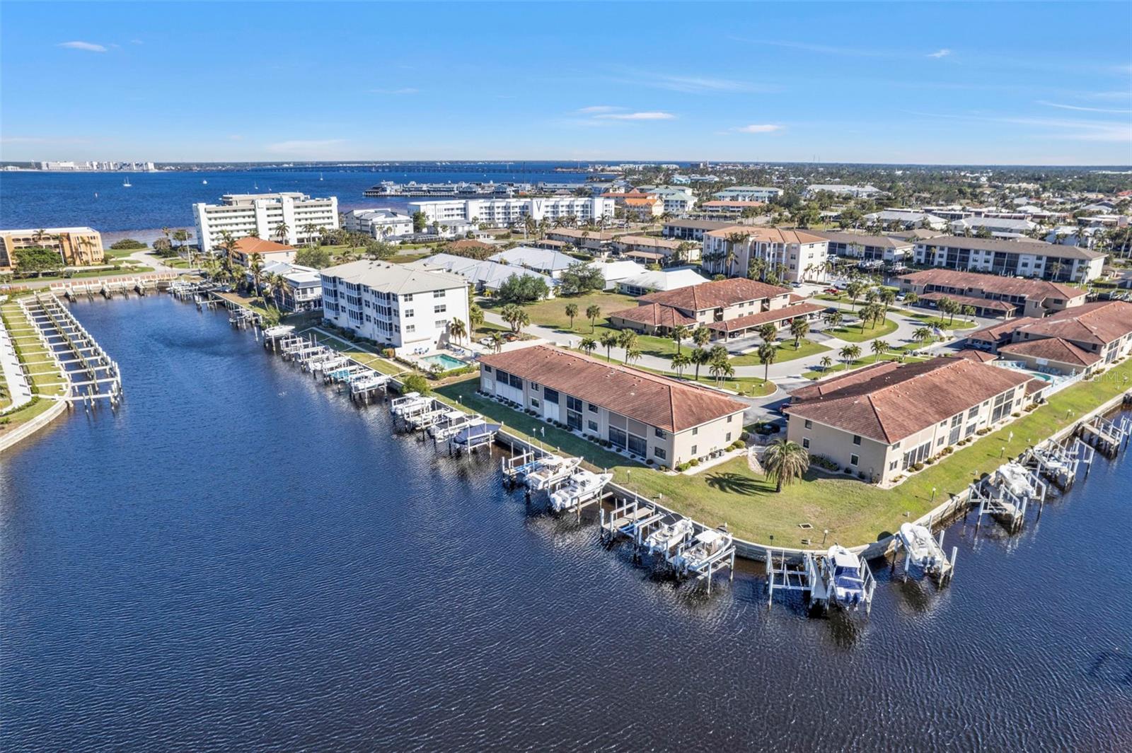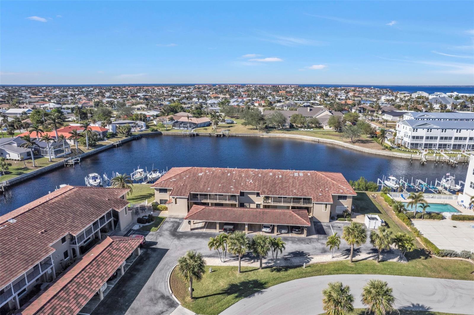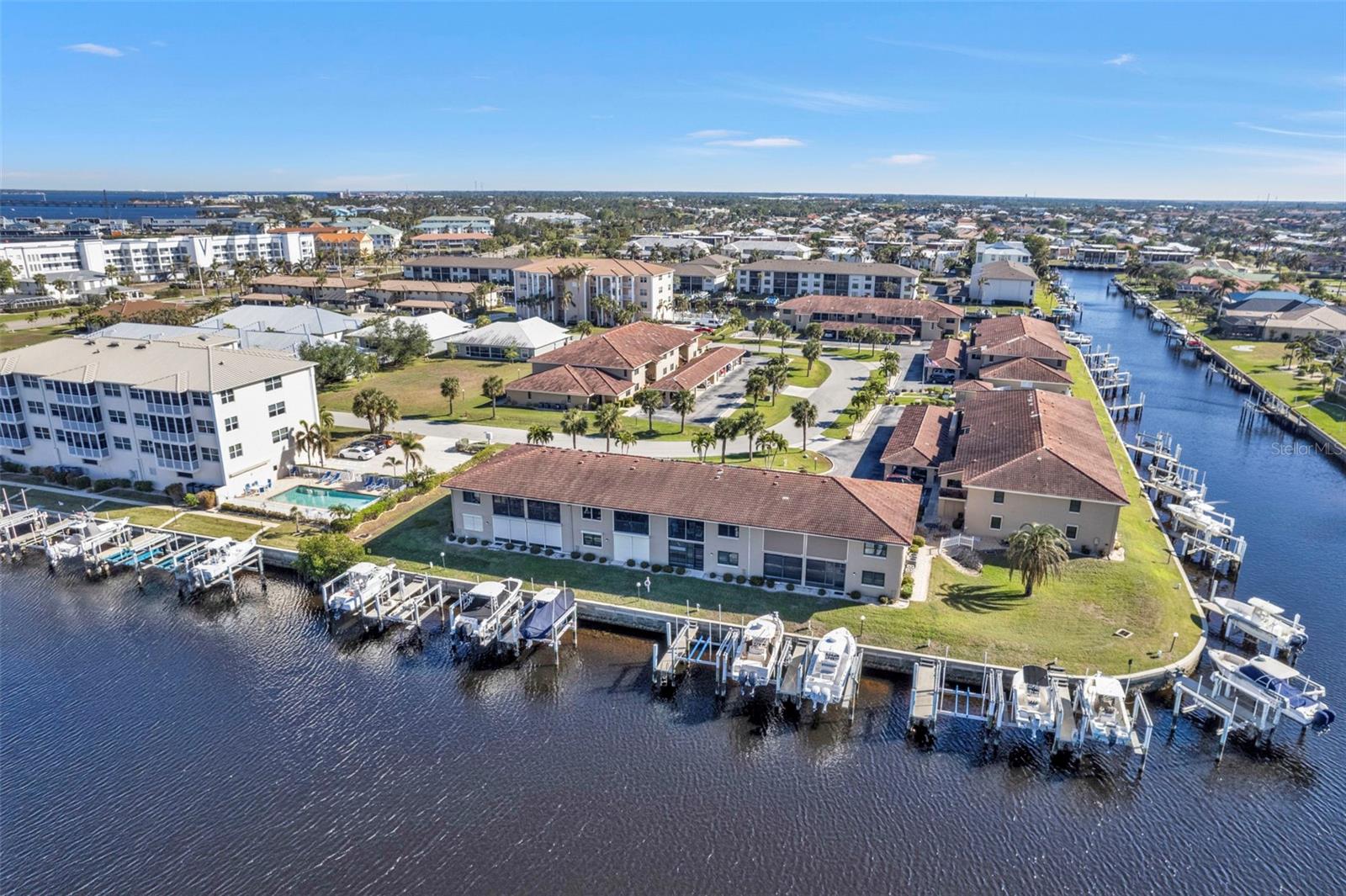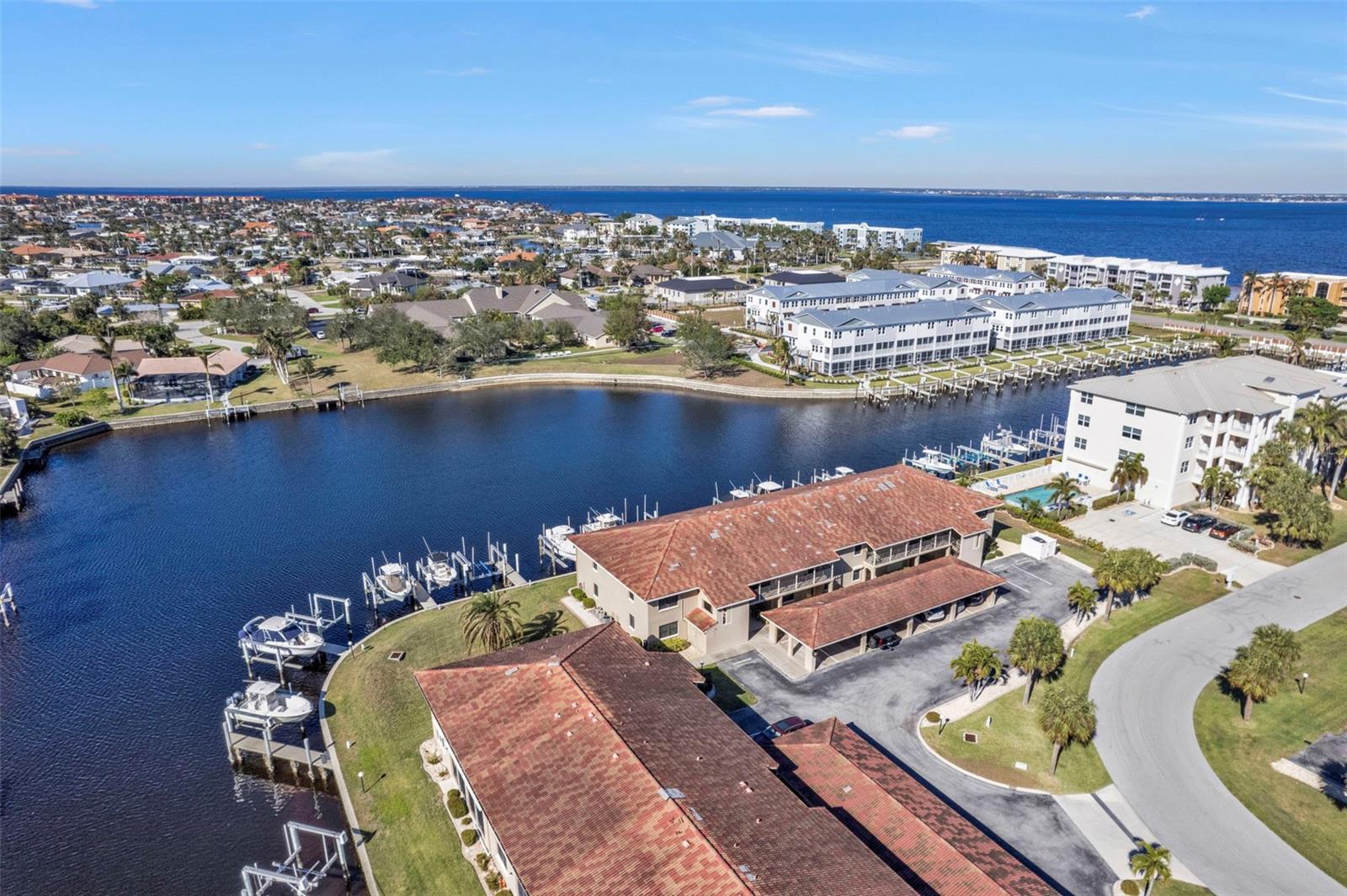 Ground level (NO STEPS), 2 bedroom, 2 bathroom split floor plan COMPLETELY UPDATED, with a DEEDED BOAT SLIP, concrete dock and 10,000 pound BOAT LIFT with remote outside your back lanai door. NO PET RESTRICTIONS FOR OWNERS. This home is setup as a SMART HOME to control your keyless front door lock and Nest thermostat remotely. All brand new LUXURY VINYL FLOORING, interior paint, cabinets, sinks, countertops, toilets, lighting, and ceiling fans. The great room is connected to the lanai that has two sliders (one from the great room and the other from the master bedroom) to access Florida lifestyle living. The master bathroom has a walk in shower. The lanai has an OVERSIZED DOUBLE DOOR FROM FLOOR TO CEILING STORAGE SPACE that is three feet deep for ample storage. The laundry room has plenty of storage and a full size washer and dryer. The condo has HURRICANE SHUTTERS for all windows and a motorized shutter for the lanai. There is a deeded CARPORT steps away from your front door for added convenience. The complex has a NEW METAL ROOF and NO ASSESSMENTS. WATER IS INCLUDED in your HOA monthly billing. There is a community area that has a sitting space with a grill to cook your favorite foods on. Sea Isles is situated in a prime location with a short walk to Fisherman's Village and downtown Punta Gorda. HOUNDS ON HENRY DOG PARK is less than a mile down the road. Plenty of walking and biking trails surrounding the area. Concrete sea walls are maintained by the City of Punta Gorda. The water out time by power boat is just a few minutes to Charlotte Harbor.